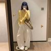 Suéter de Otoño e Invierno Amarillo Falso de Dos Piezas Chaqueta Cárdigan de Punto Traje para Mujer 2024 Nuevo Top de Mujer de Alta Gama