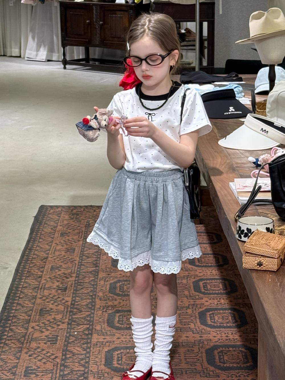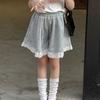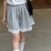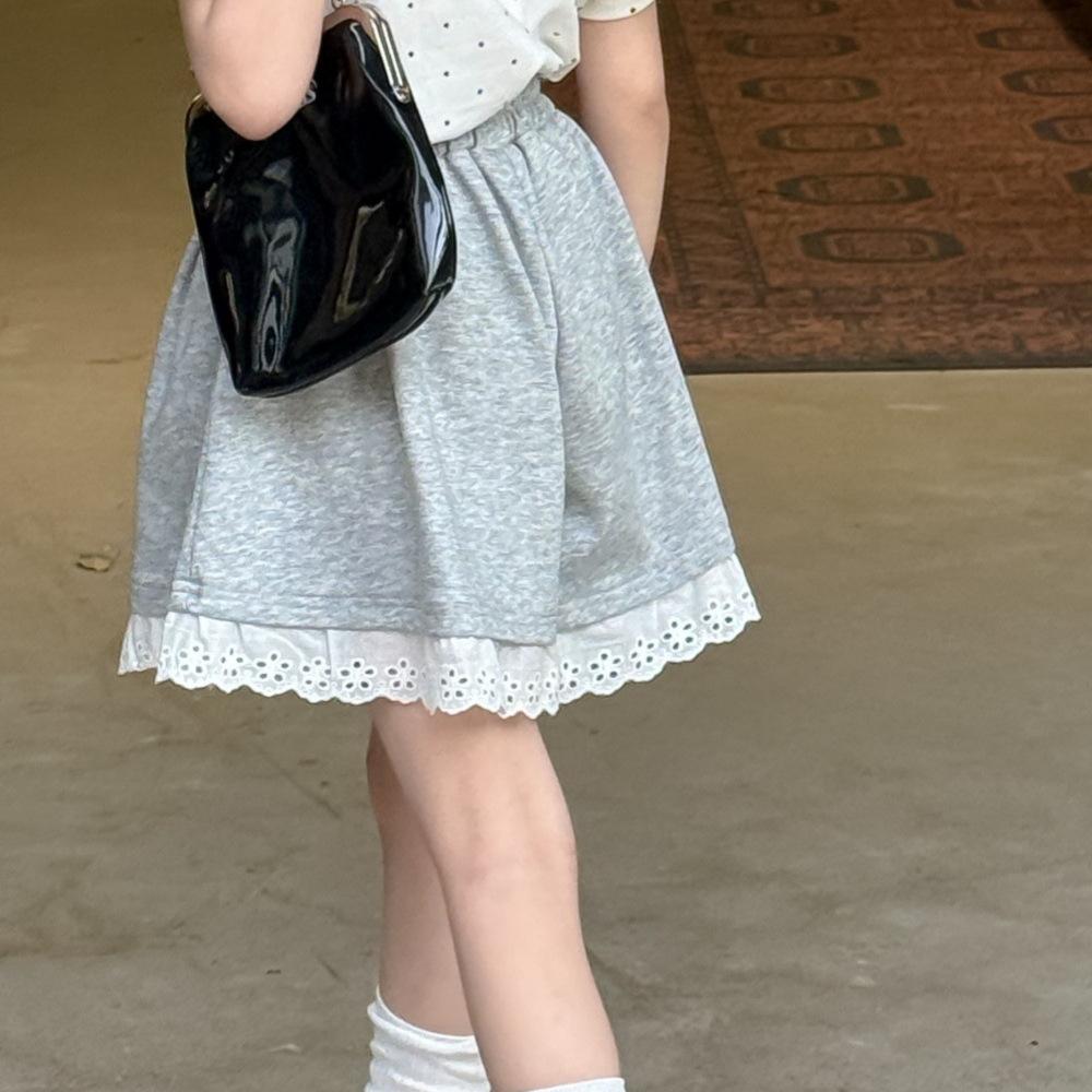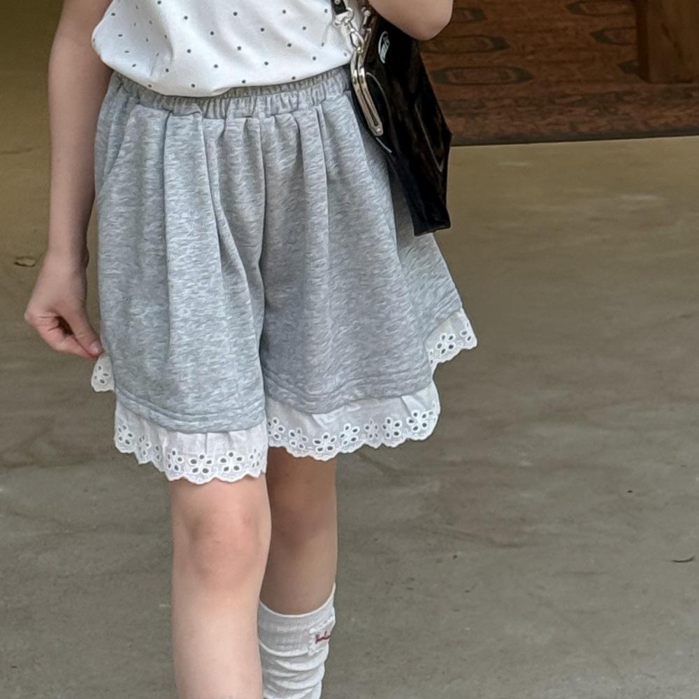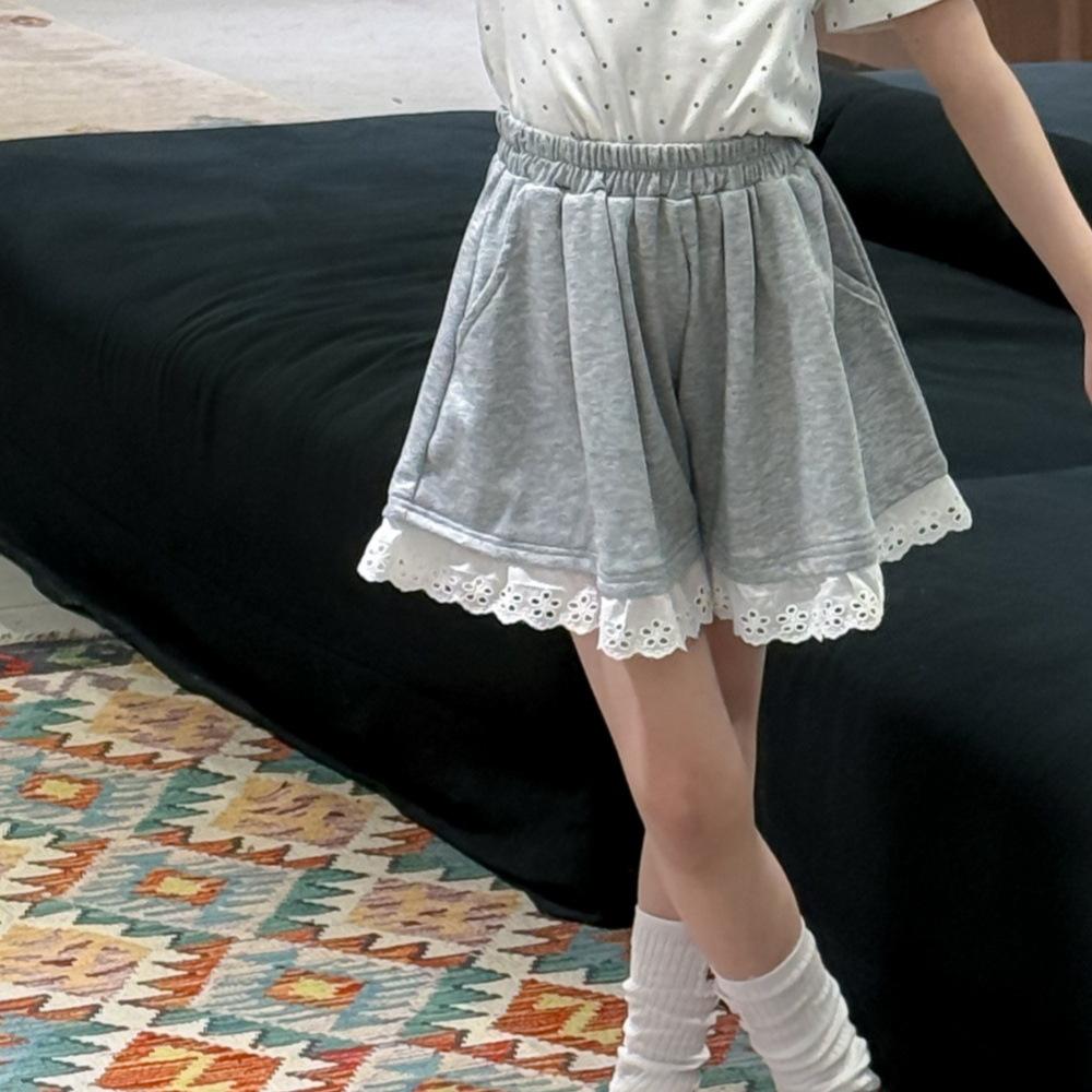 Pantalones para Niñas 2025 Shorts de Verano para Niñas Estilo Coreano Encaje Encaje Gris Culottes Niñas Dulces Cintura Alta Pantalones Sueltos