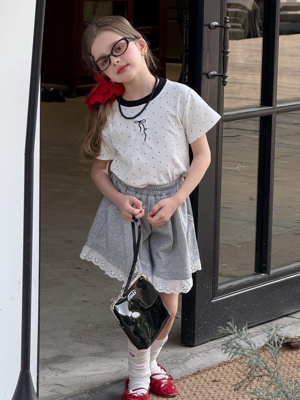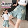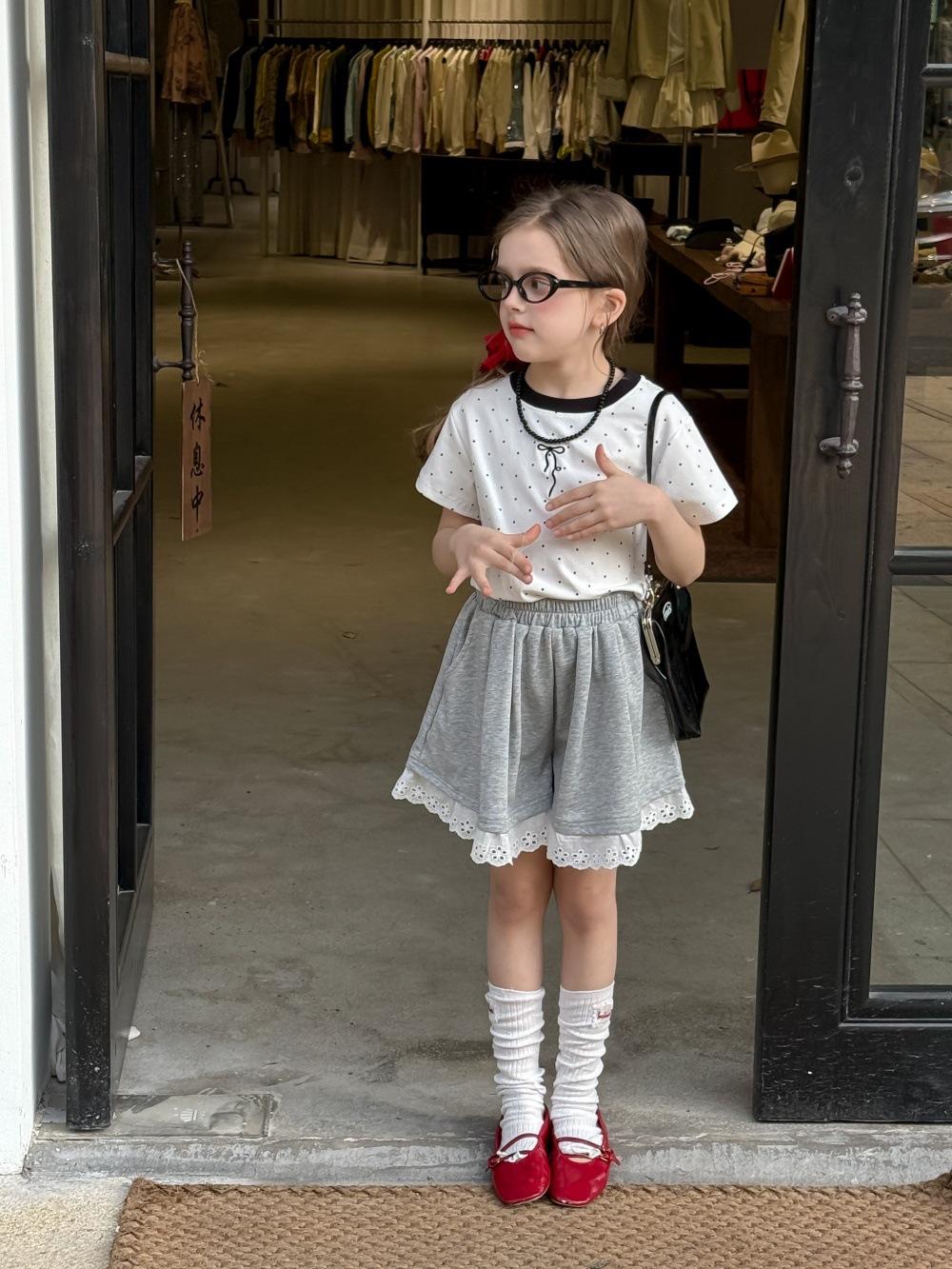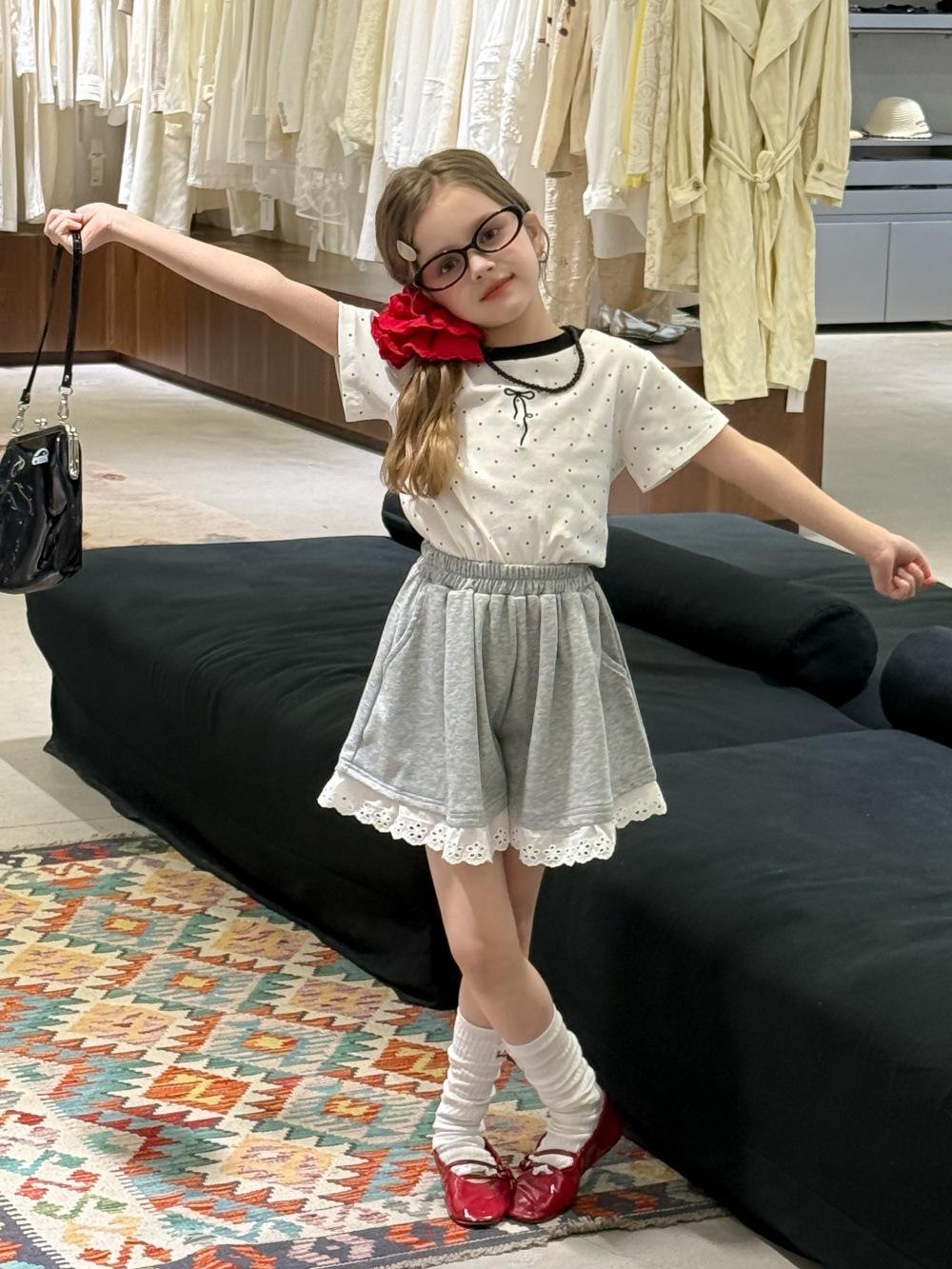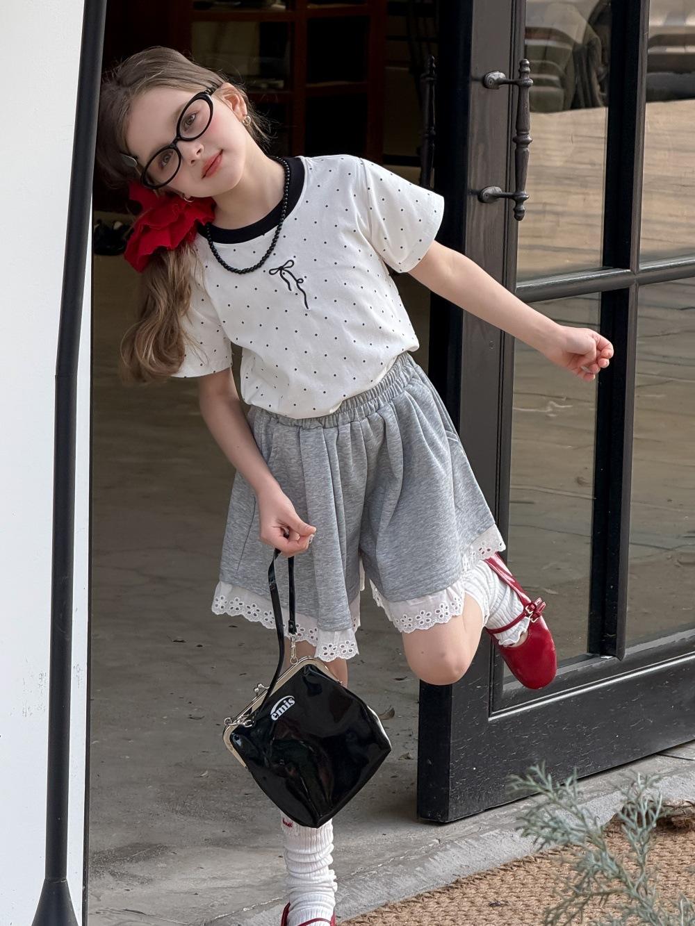 Pantalones para Niñas 2025 Shorts de Verano para Niñas Estilo Coreano Encaje Encaje Gris Culottes Niñas Dulces Cintura Alta Pantalones Sueltos