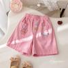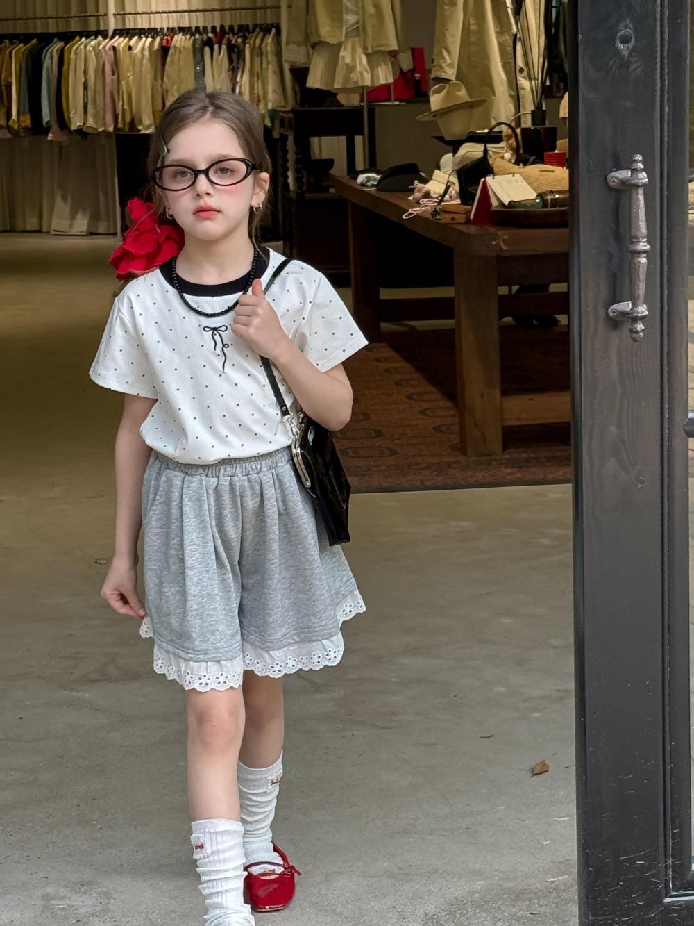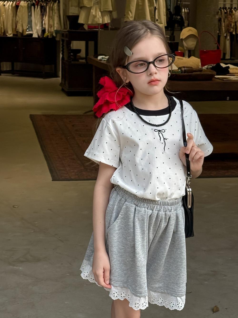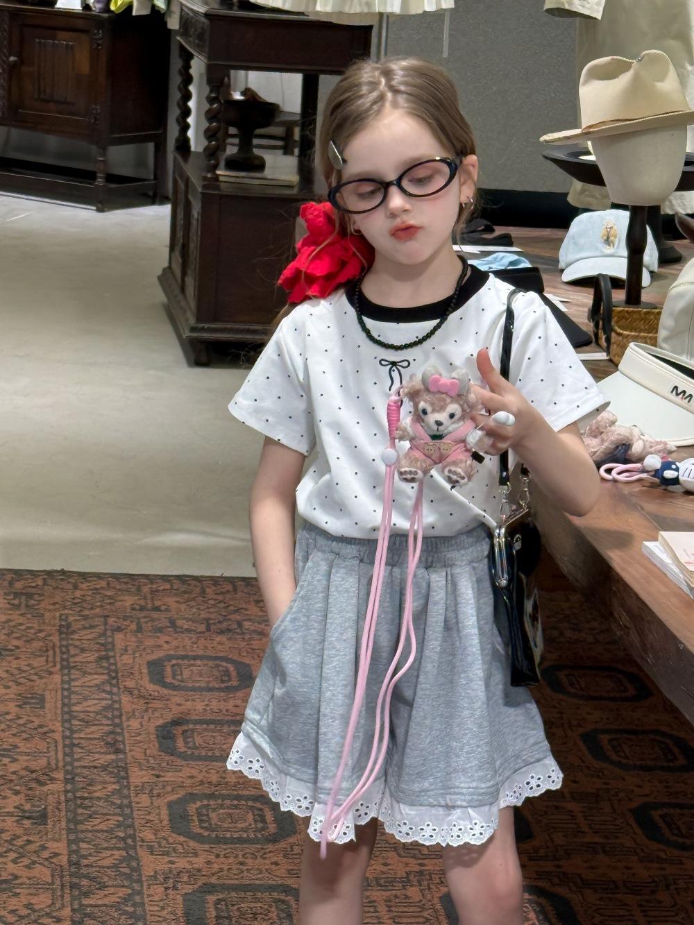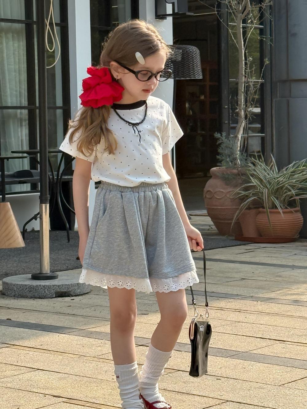 Pantalones para Niñas 2025 Shorts de Verano para Niñas Estilo Coreano Encaje Encaje Gris Culottes Niñas Dulces Cintura Alta Pantalones Sueltos