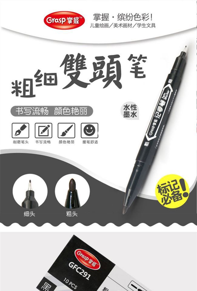 Marcador Master pequeño de doble punta a base de agua Marcador de pintura infantil Bolígrafo de gancho Marcador negro de punta fina GFC291
