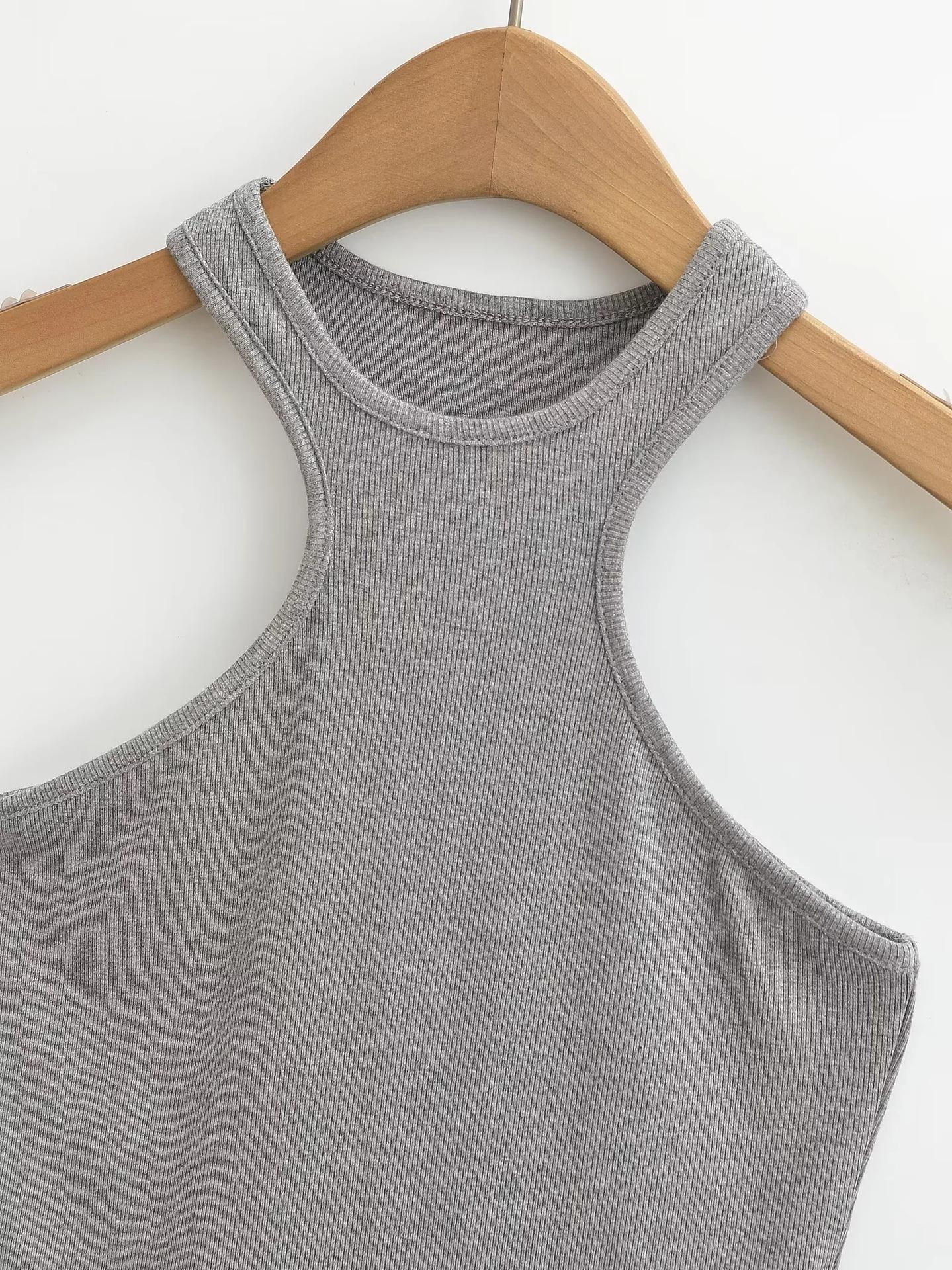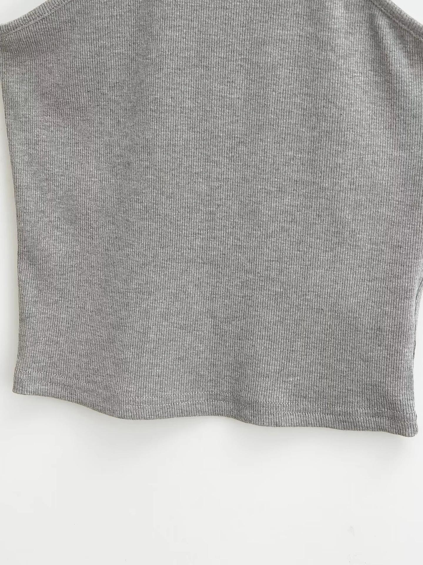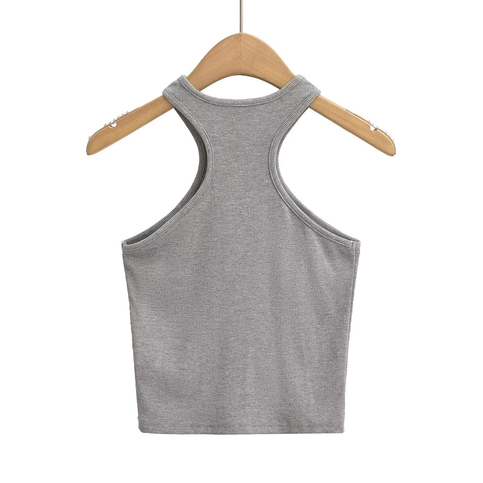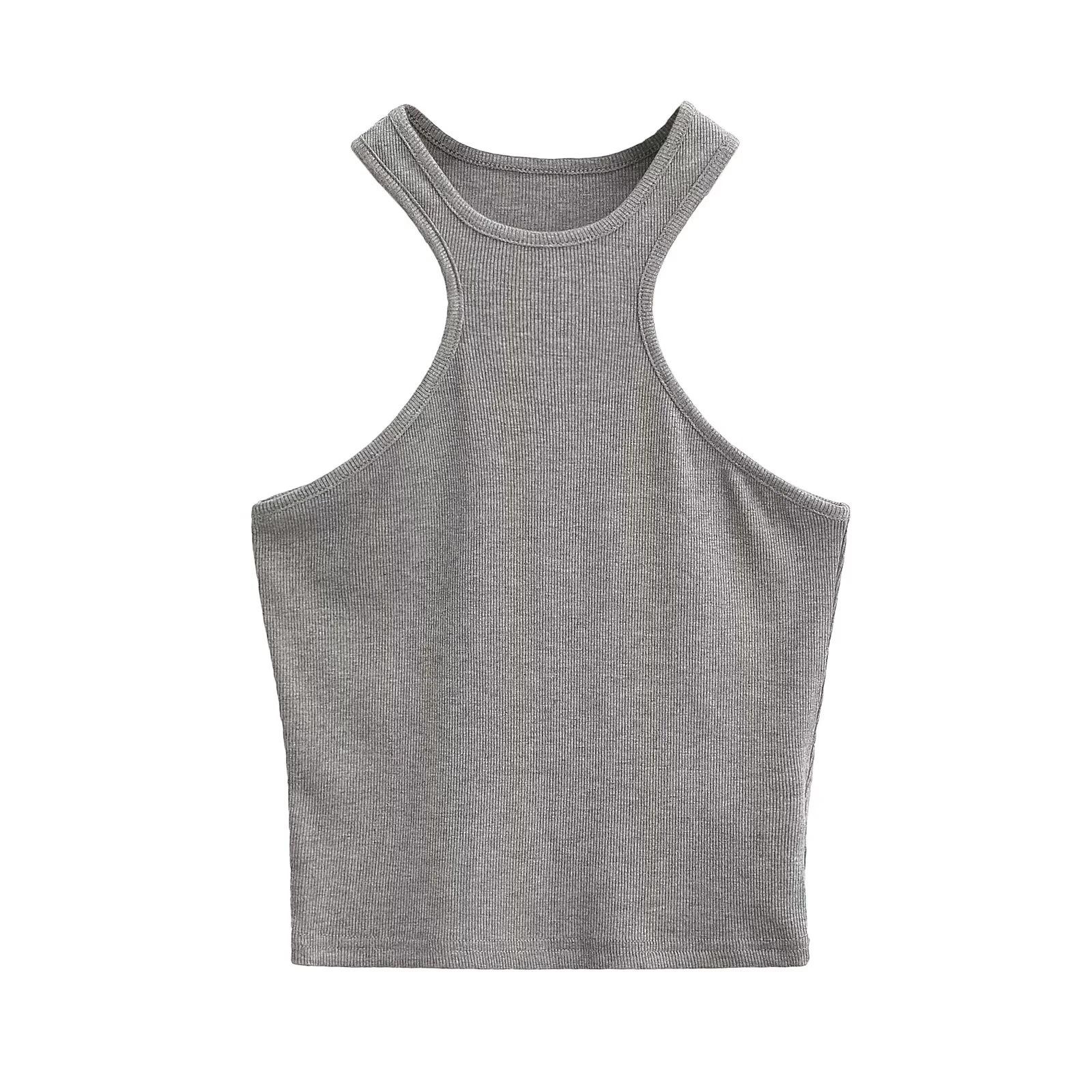 Top sexy con cuello halter y hombros descubiertos para mujer, estilo europeo y americano, verano 2024, ajustado y elástico, sin tirantes