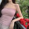 Camisola de Verano Estilo Pure Wish Spice Girl con Lazo y Almohadilla en el Pecho Ajustada sin Tirantes Top Negro Ropa Exterior para Mujer