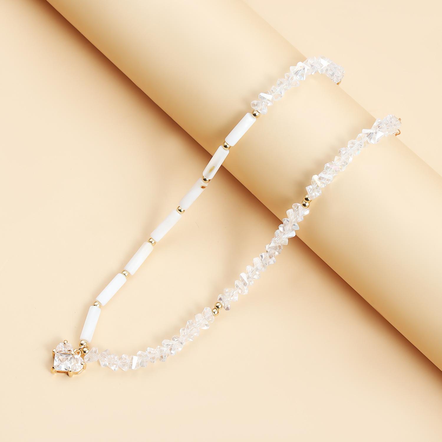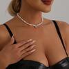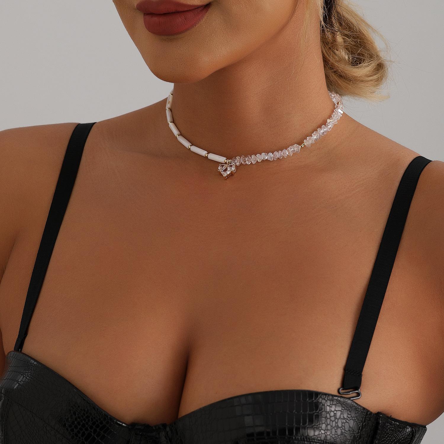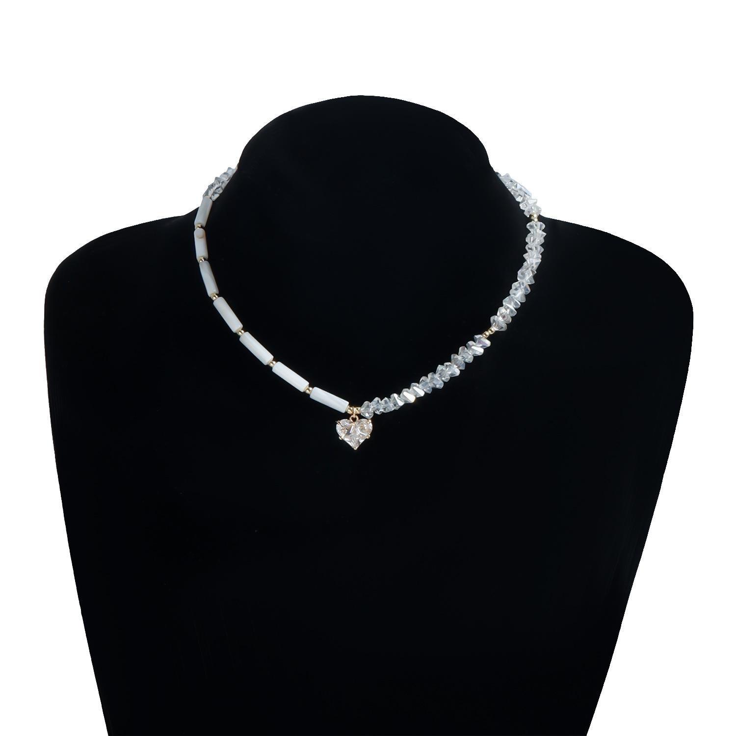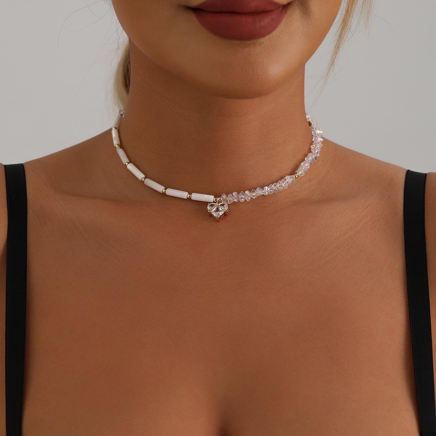 Collar con colgante de circonitas y cristal transparente de moda de lujo con cadena de clavícula y costuras de amor entre Europa y Estados Unidos.