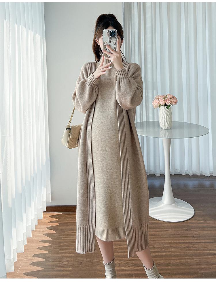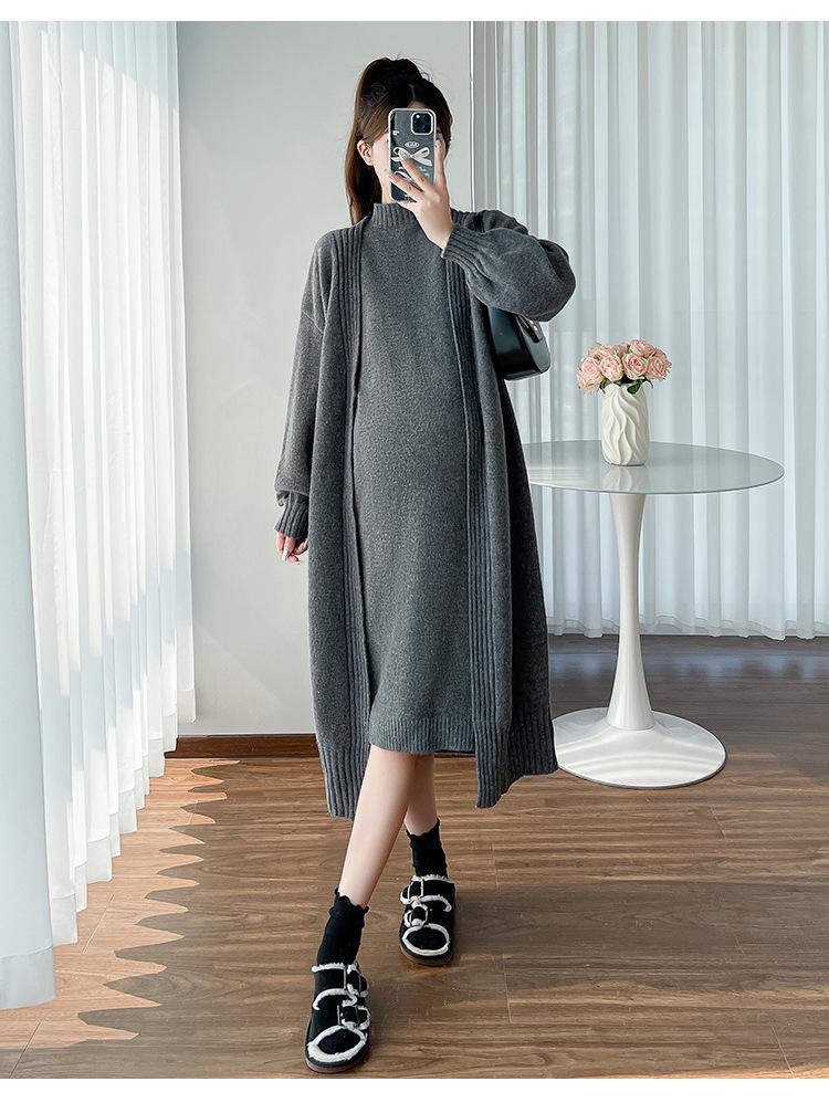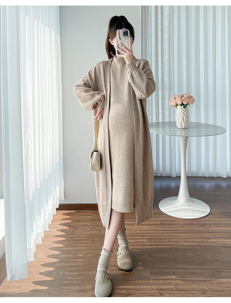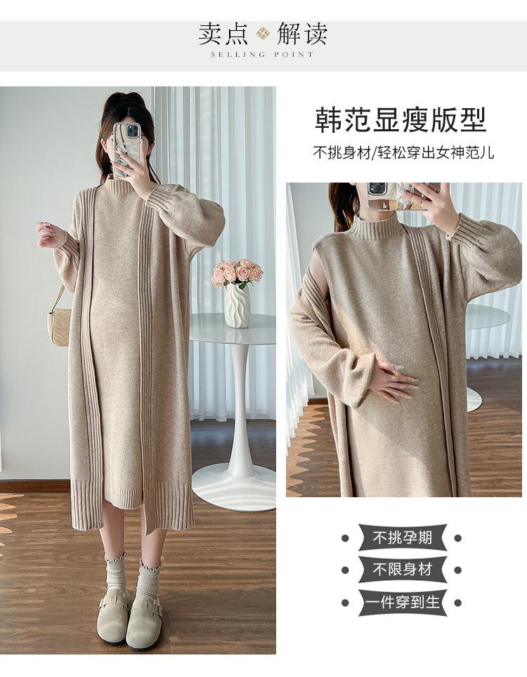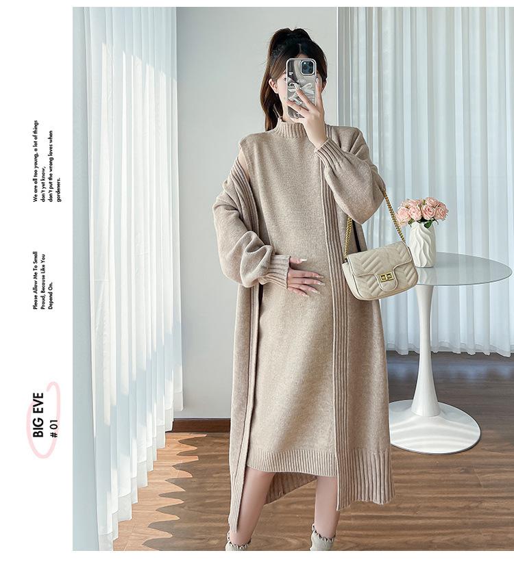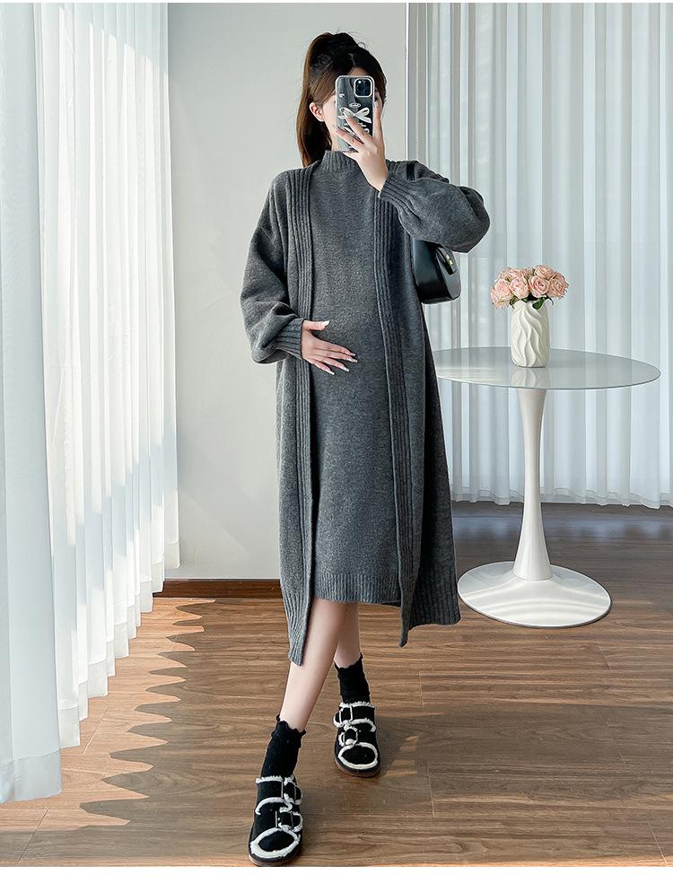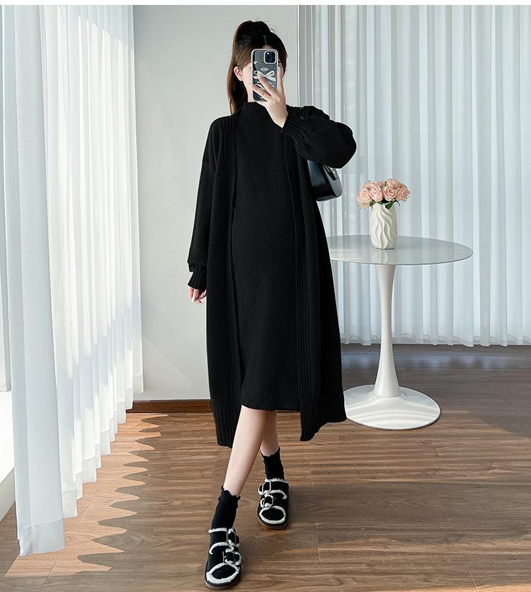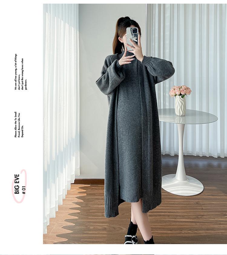 Falda de mujer embarazada otoño e invierno nuevo estilo perezoso cuello medio alto cárdigan interior de punto para mujer embarazada conjunto de traje de dos piezas para mujer embarazada