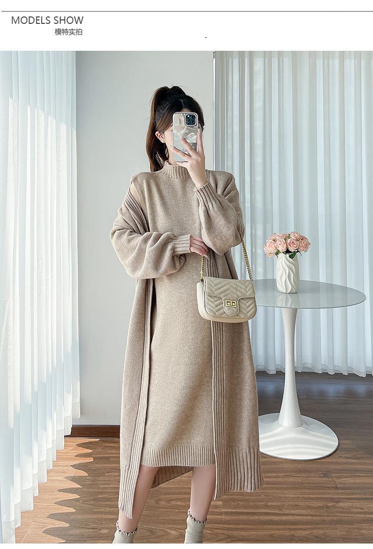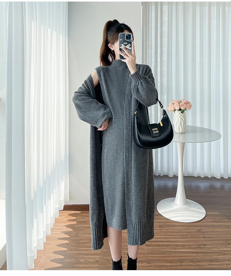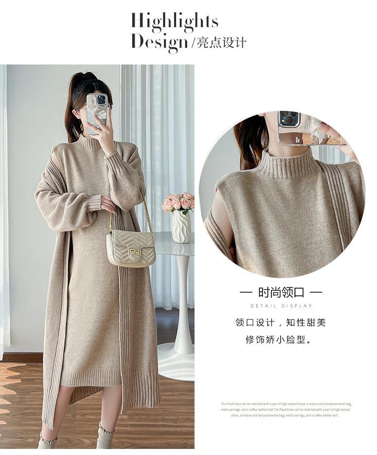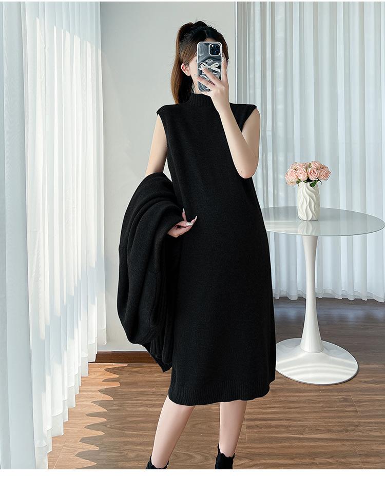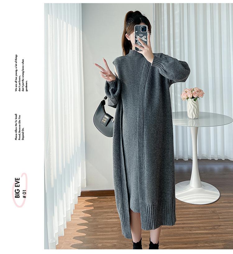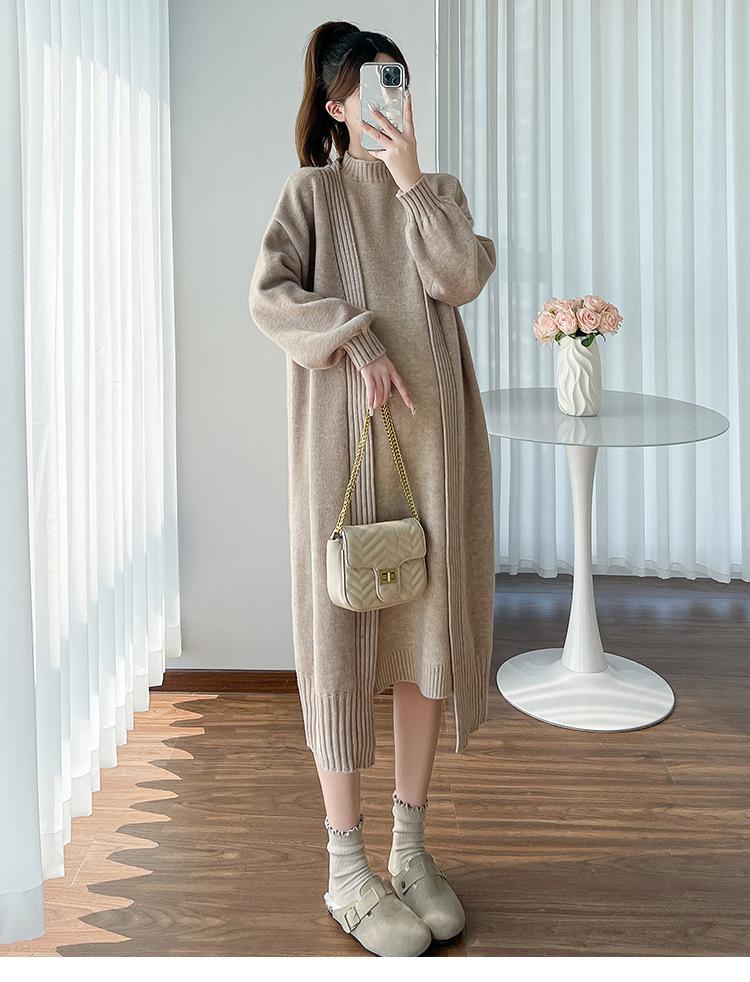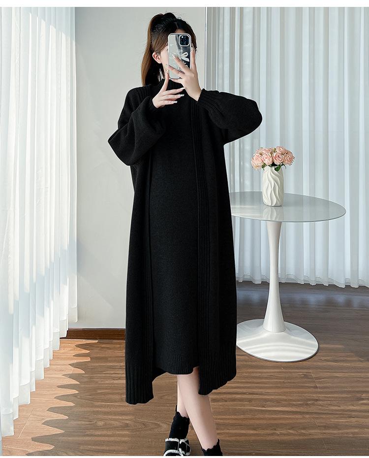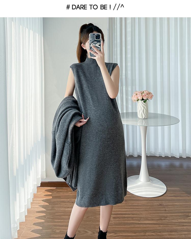 Falda de mujer embarazada otoño e invierno nuevo estilo perezoso cuello medio alto cárdigan interior de punto para mujer embarazada conjunto de traje de dos piezas para mujer embarazada