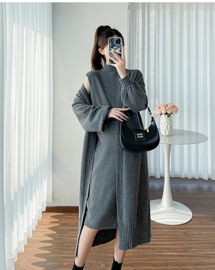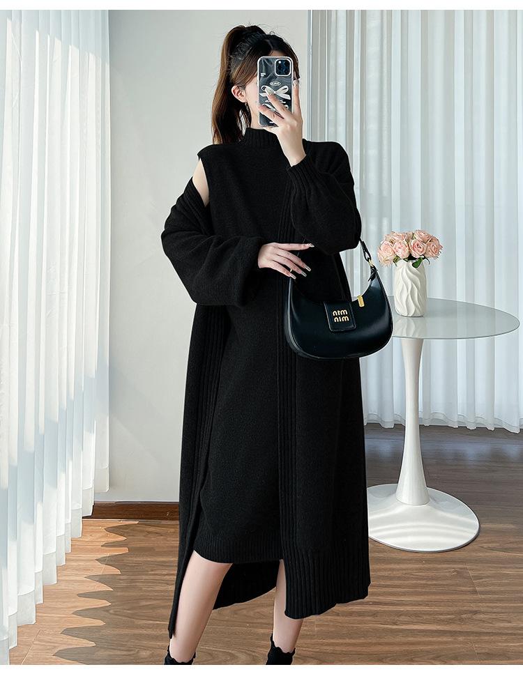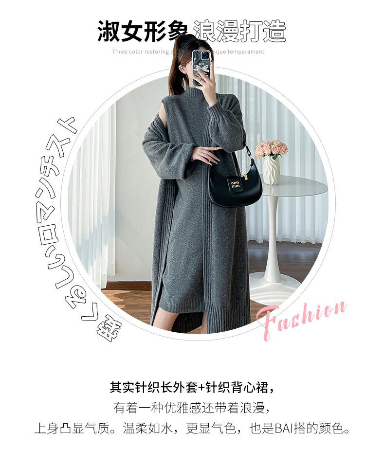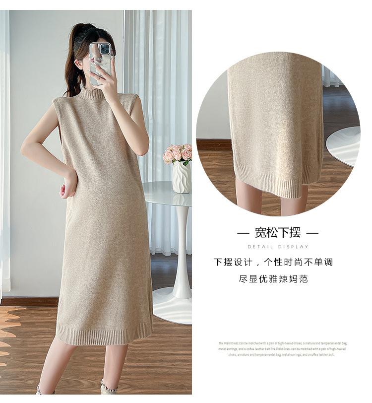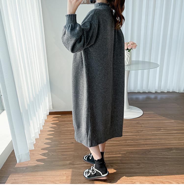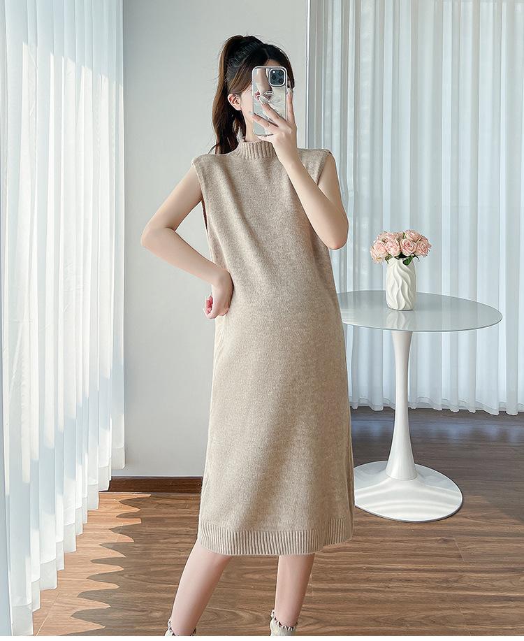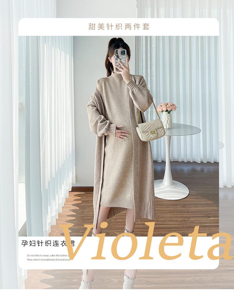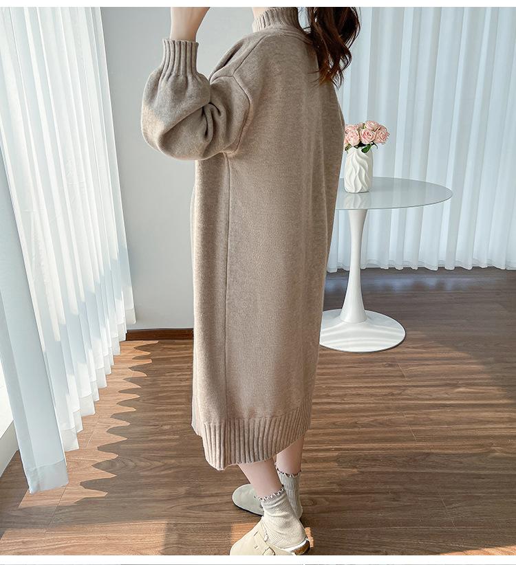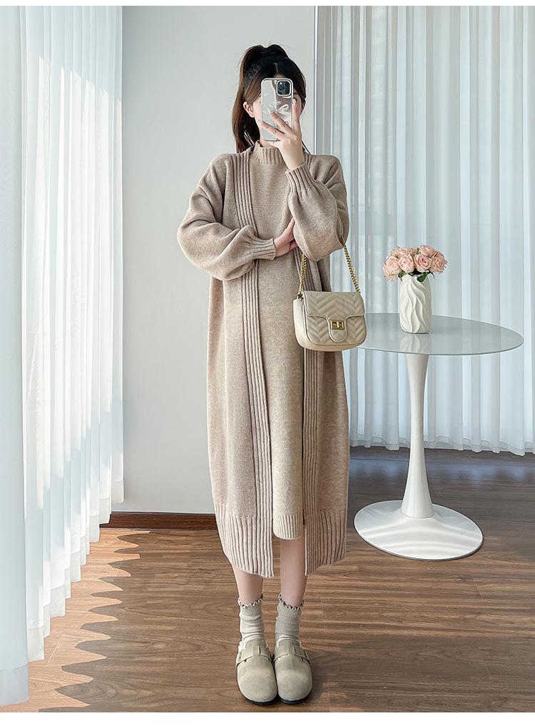 Falda de mujer embarazada otoño e invierno nuevo estilo perezoso cuello medio alto cárdigan interior de punto para mujer embarazada conjunto de traje de dos piezas para mujer embarazada