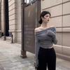 Suéter de manga larga con hombros descubiertos, sexy y puro para mujer, novedad de otoño, top de rayas con abertura elegante con hombros descubiertos para chica sexy.