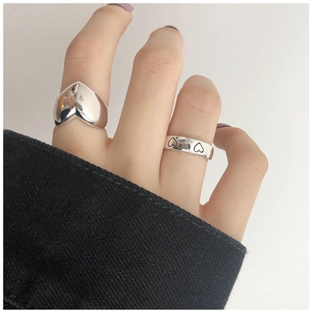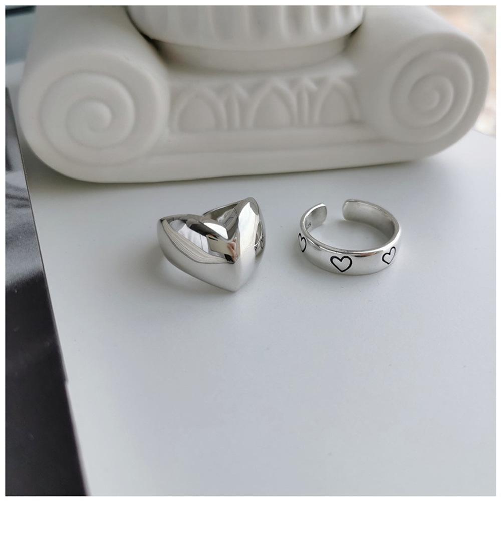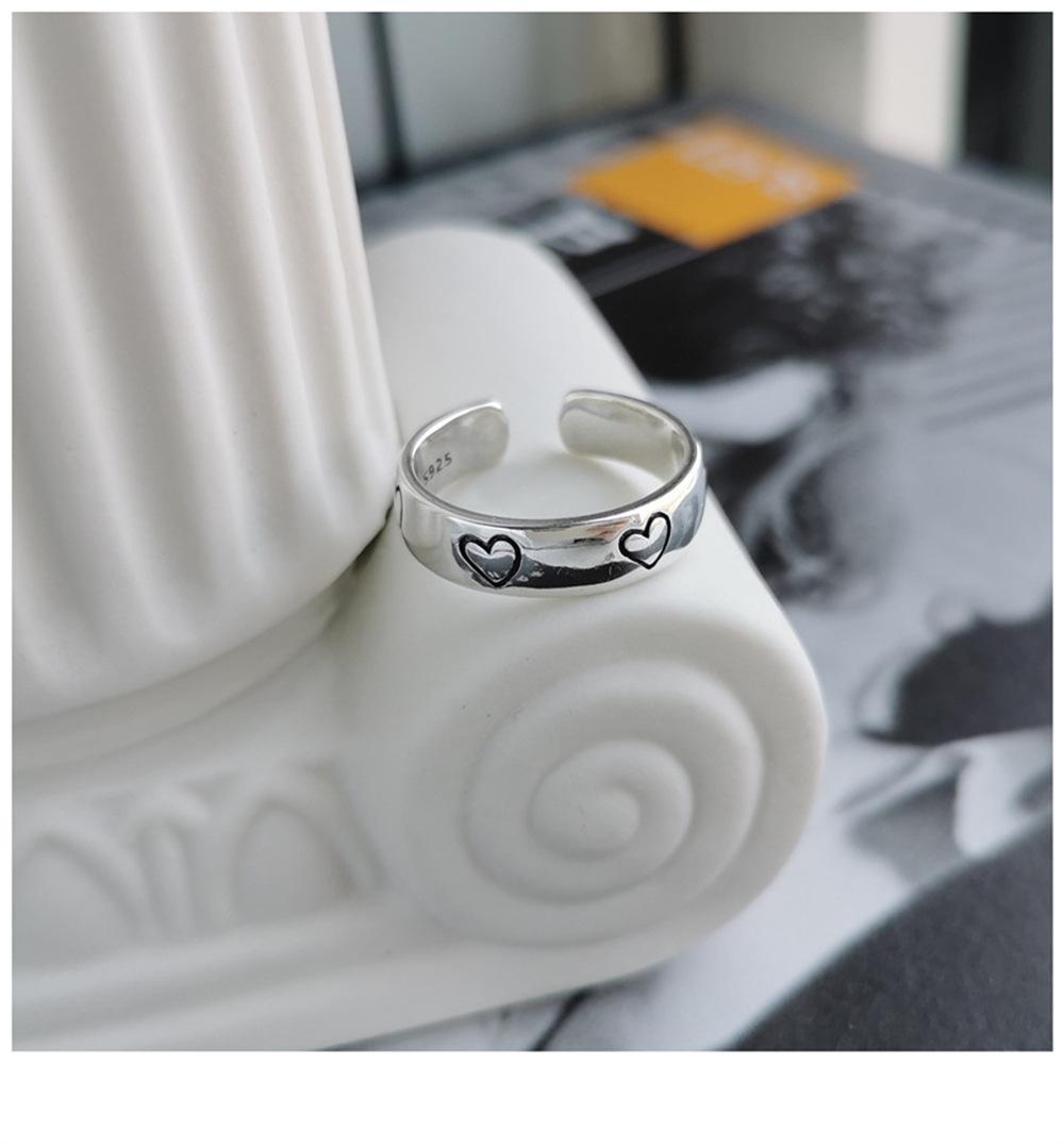 Anillo Abierto Retro de Plata 925 Combinación de Amor Moda Femenina Distintivo Hip-Hop Didi Bounty Ins Estilo Frío Anillo para el Dedo Índice