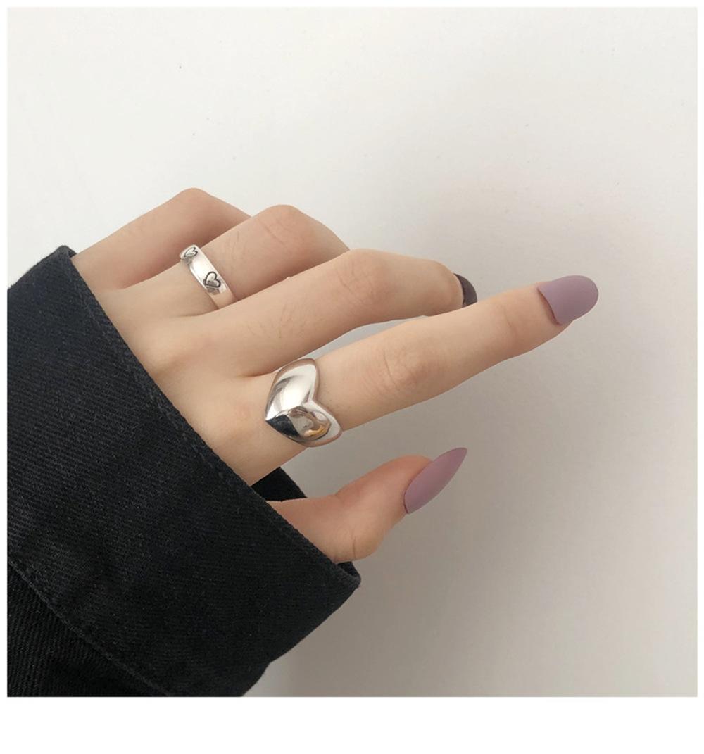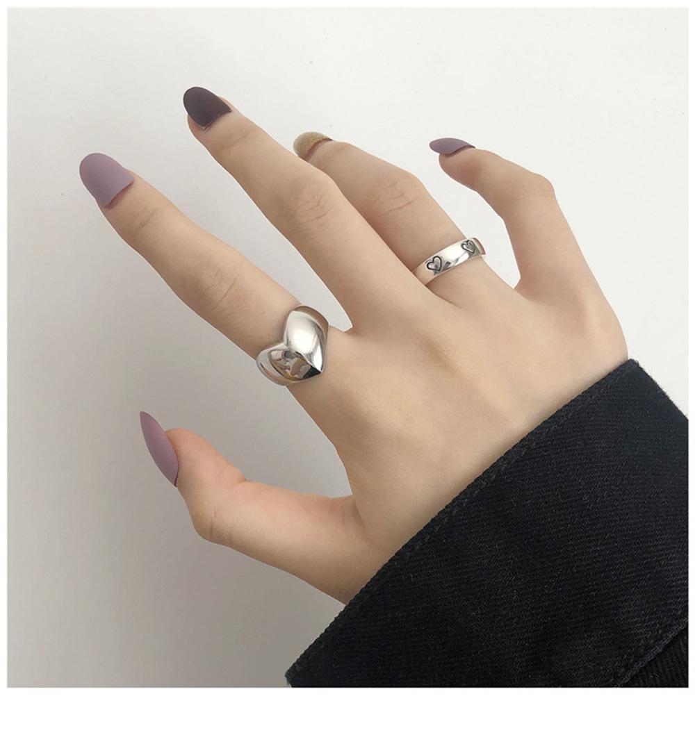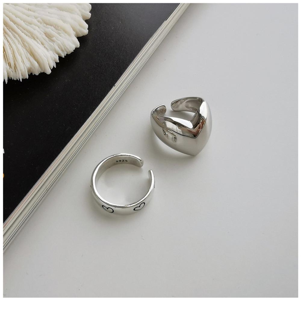 Anillo Abierto Retro de Plata 925 Combinación de Amor Moda Femenina Distintivo Hip-Hop Didi Bounty Ins Estilo Frío Anillo para el Dedo Índice