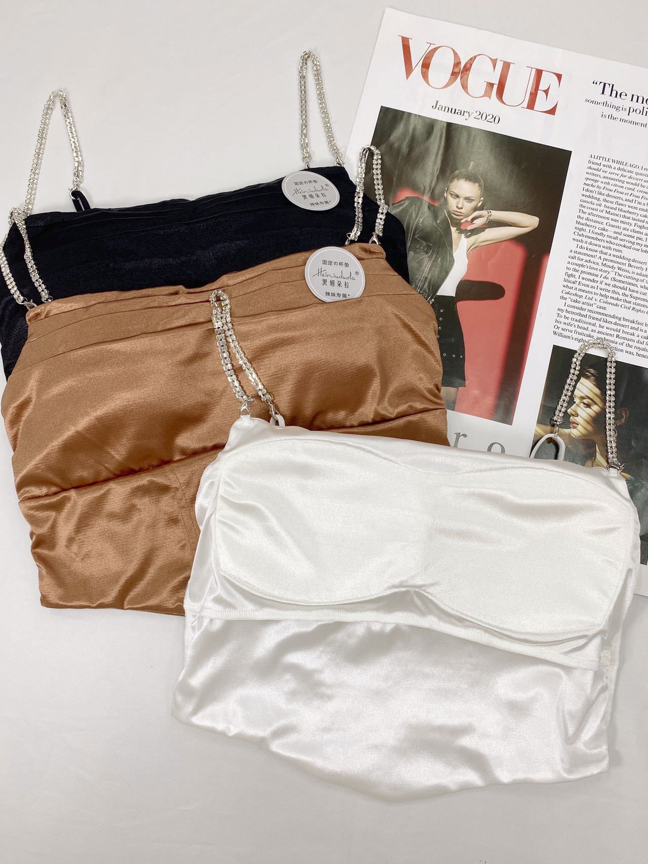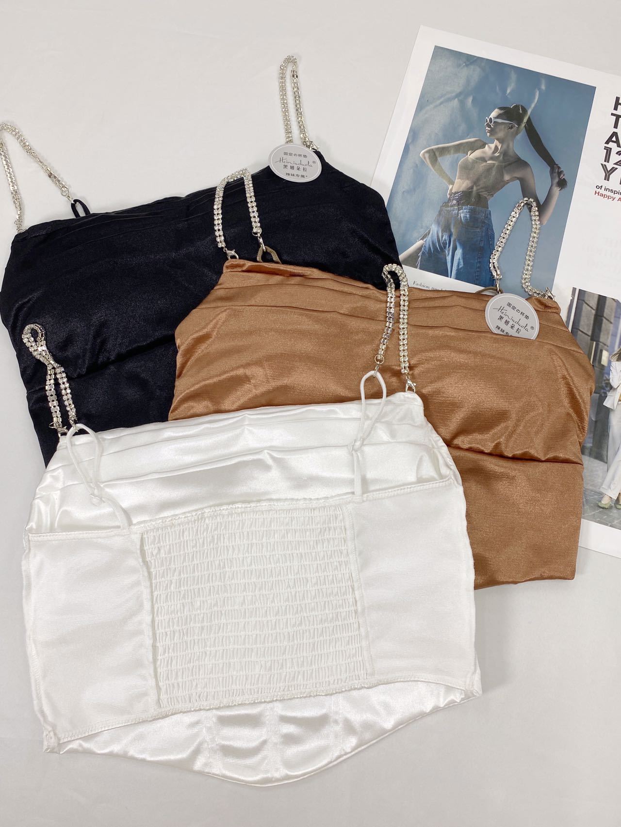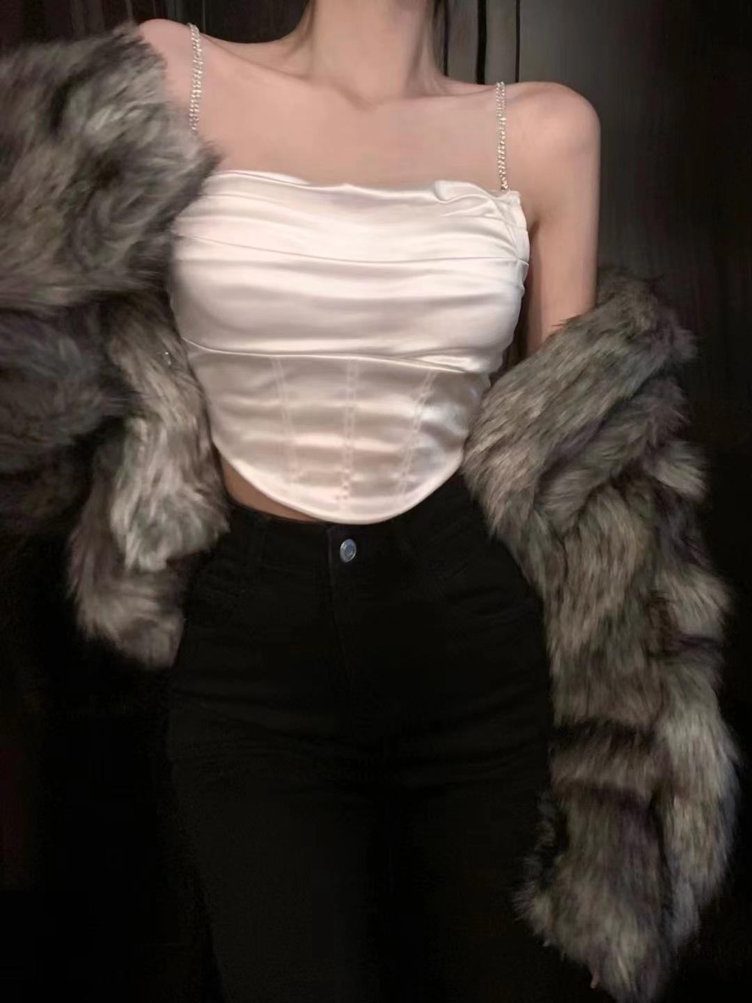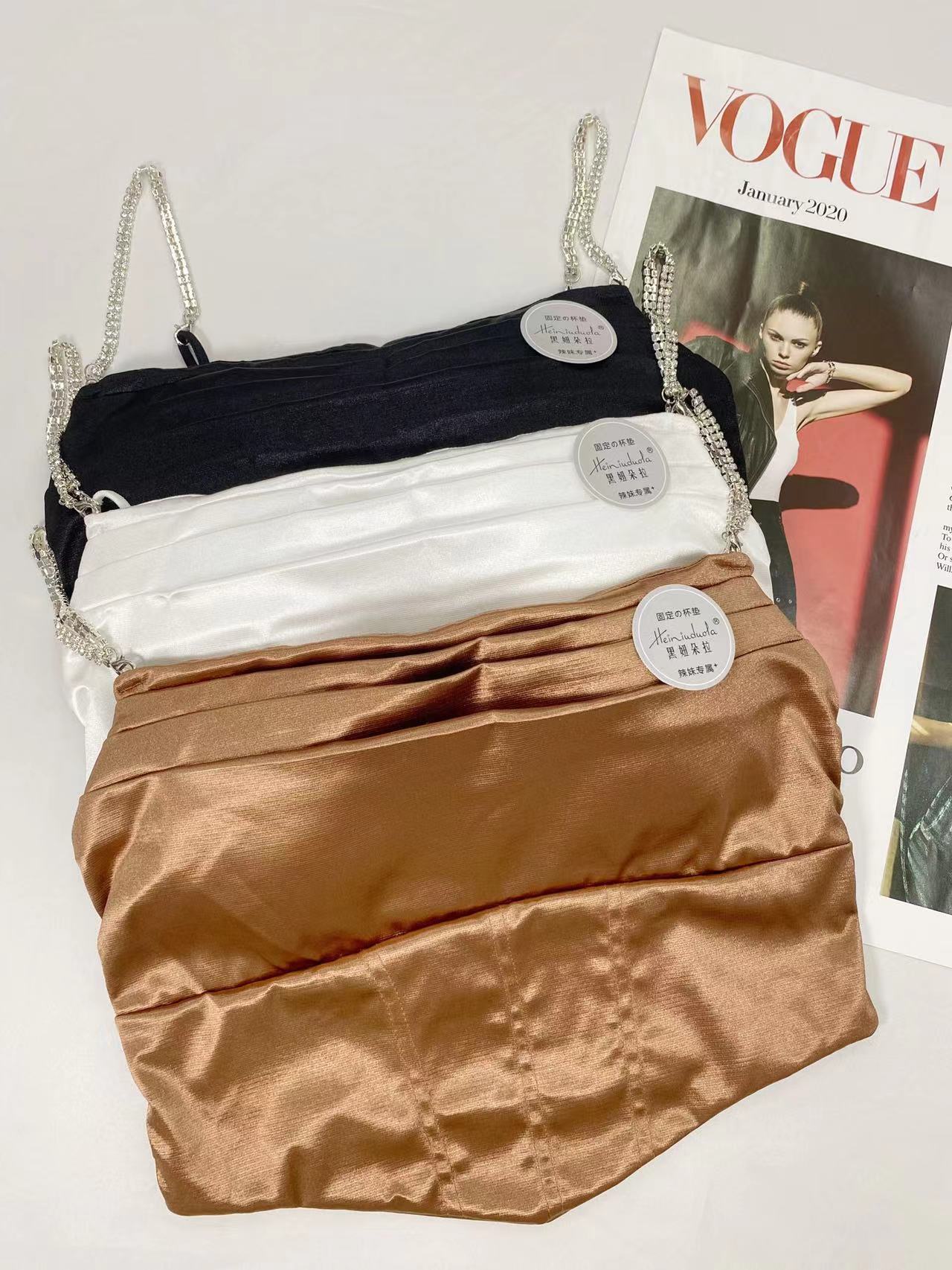 Nuevo Camisola de Cadena de Color Sólido Chaleco de Mujer con Almohadilla en el Pecho Sexy Plisado Hermosa Espalda Camiseta Básica Moda Envolvente Pecho Mujer Strapless