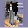 Pantalones anchos para mujer, primavera, nuevos pantalones casuales elásticos de cintura alta, rectos, versátiles, holgados y drapeados.