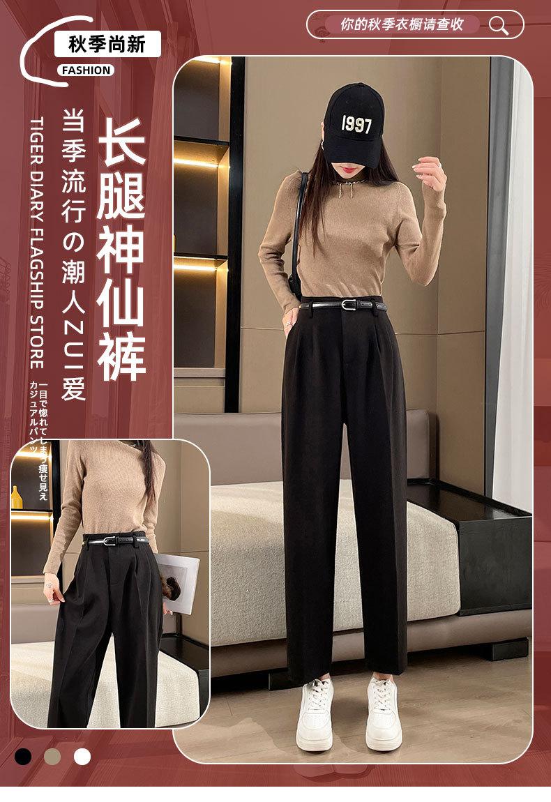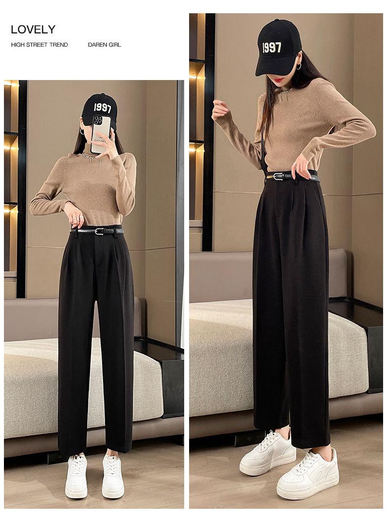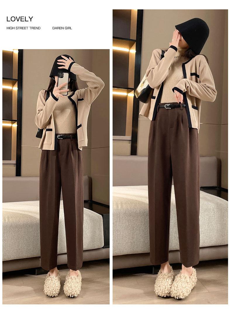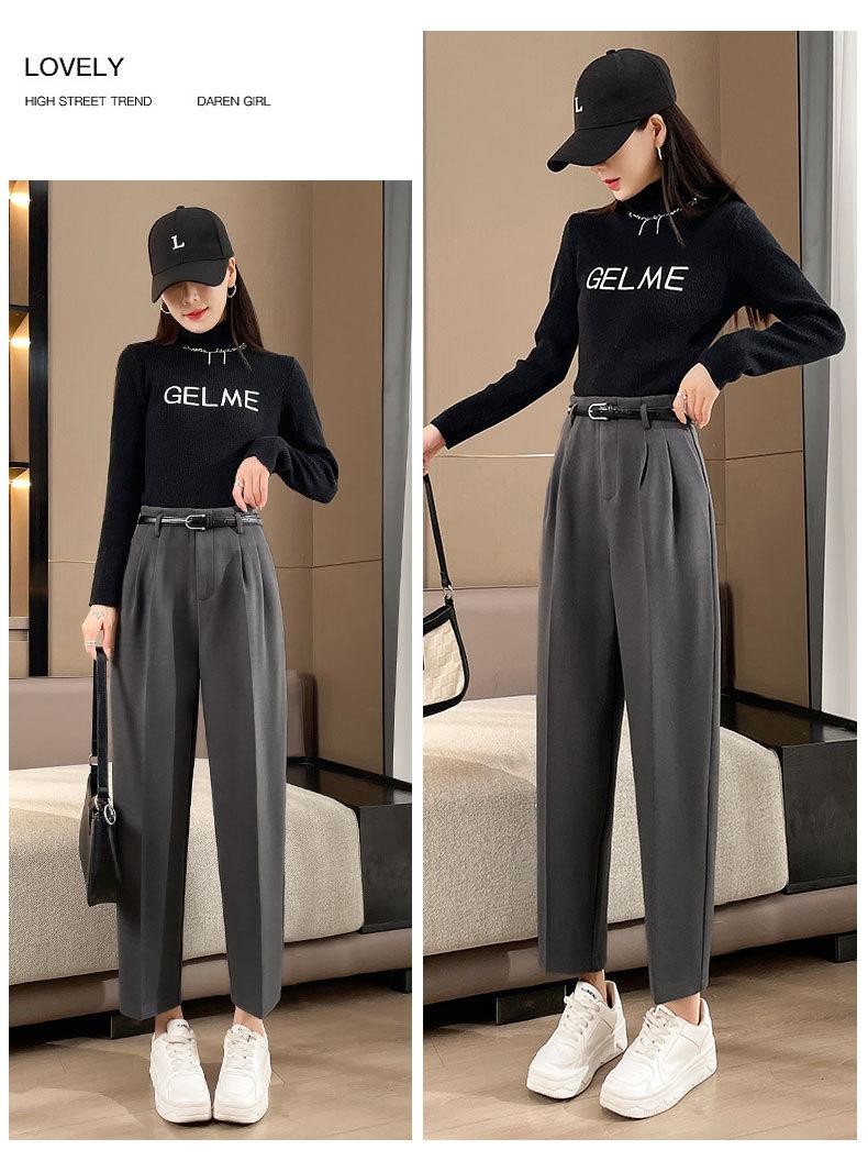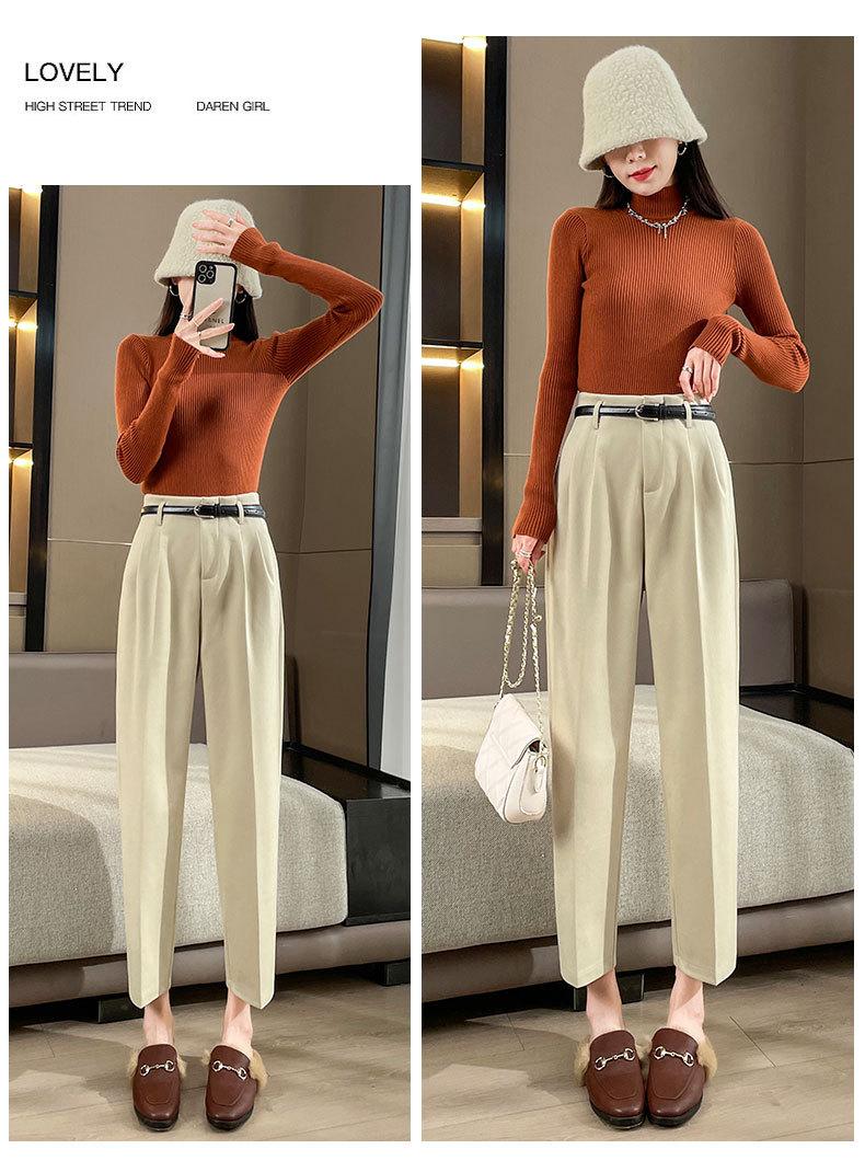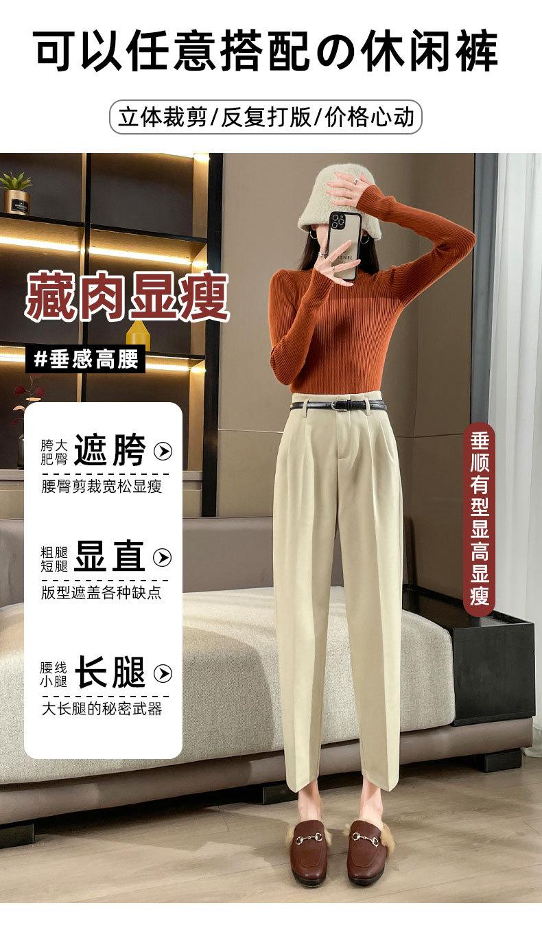 Más fáciles para combinar Exportación Look Adelgazante Pantalones Harem de Cintura Alta 2023 Nuevo Otoño Casual Drapeados Pantalones de Pierna Pequeña para Mujer