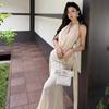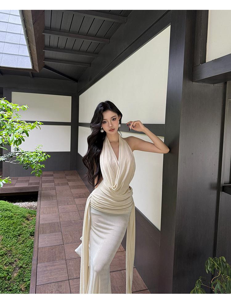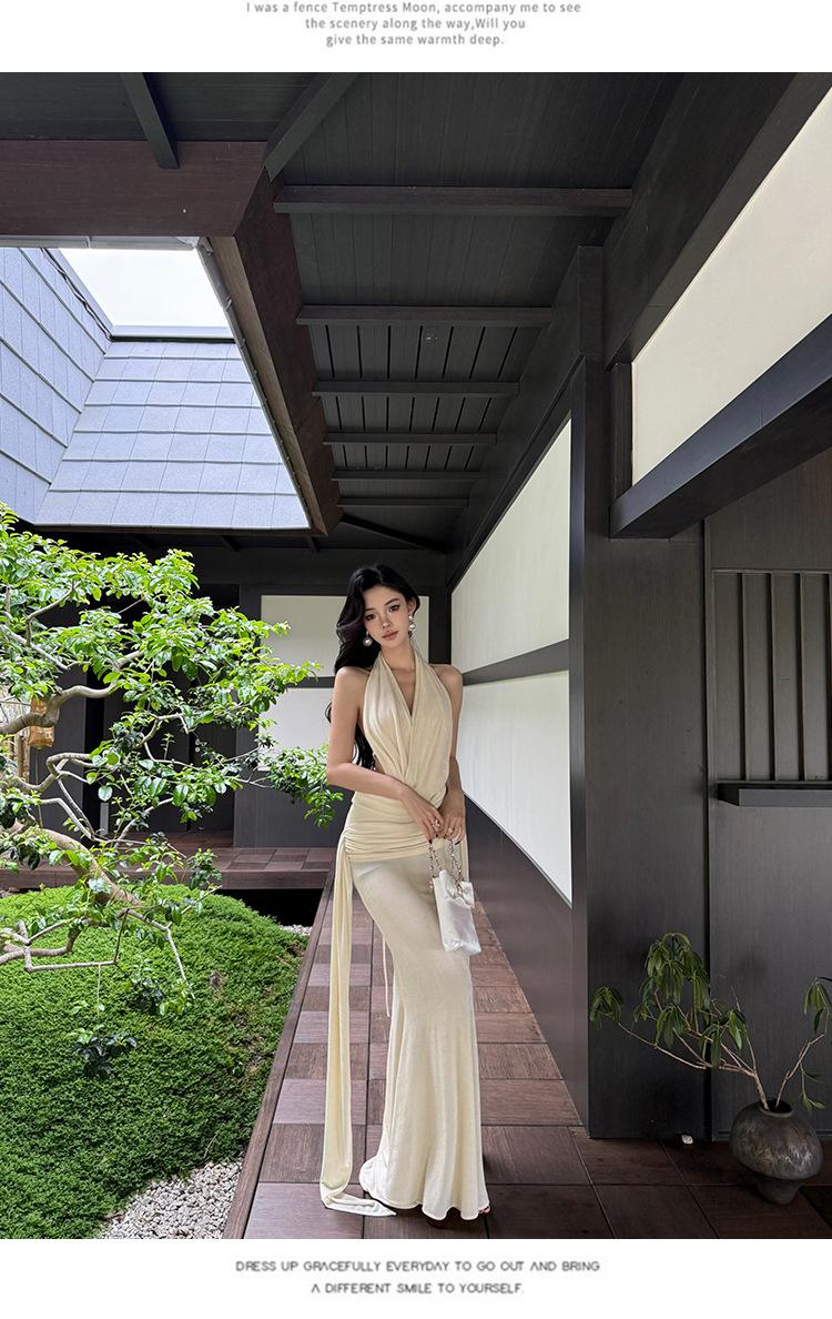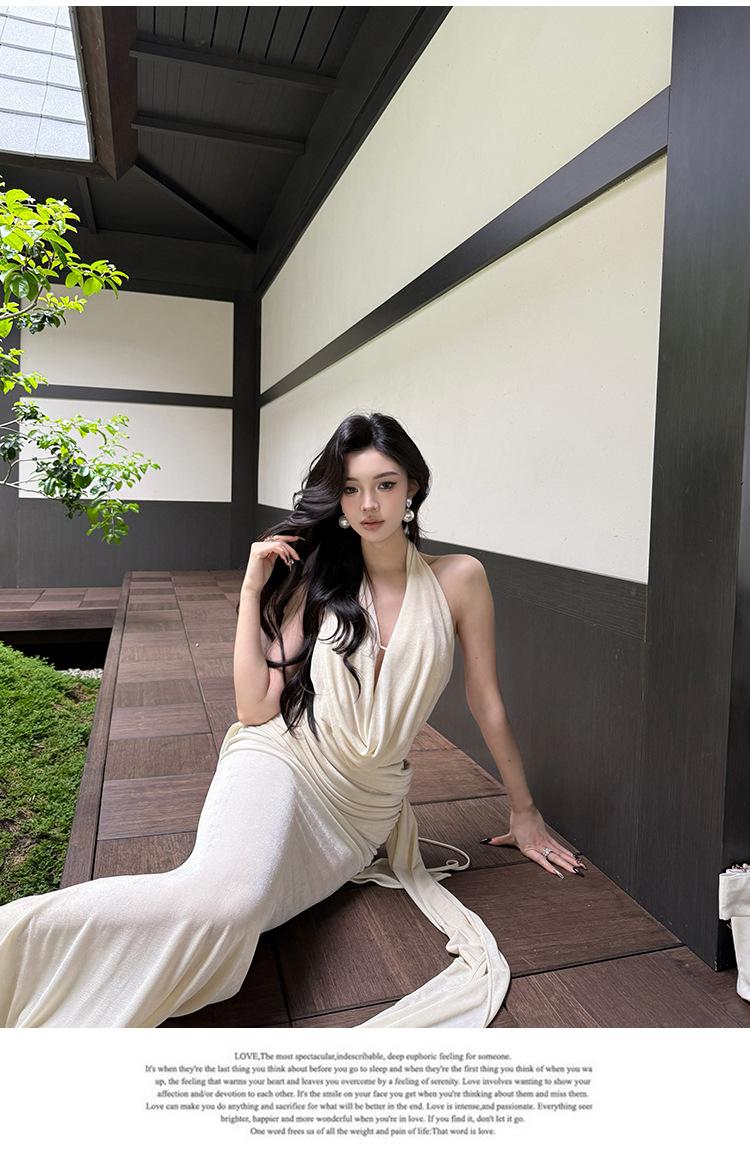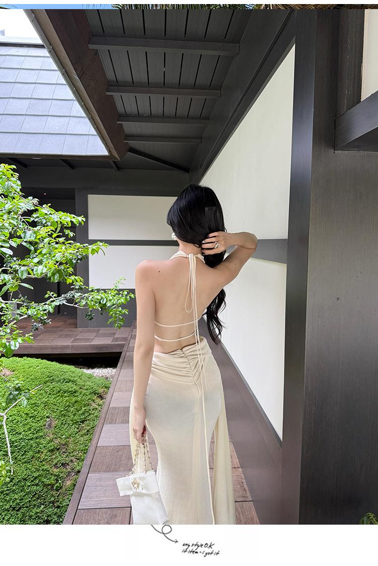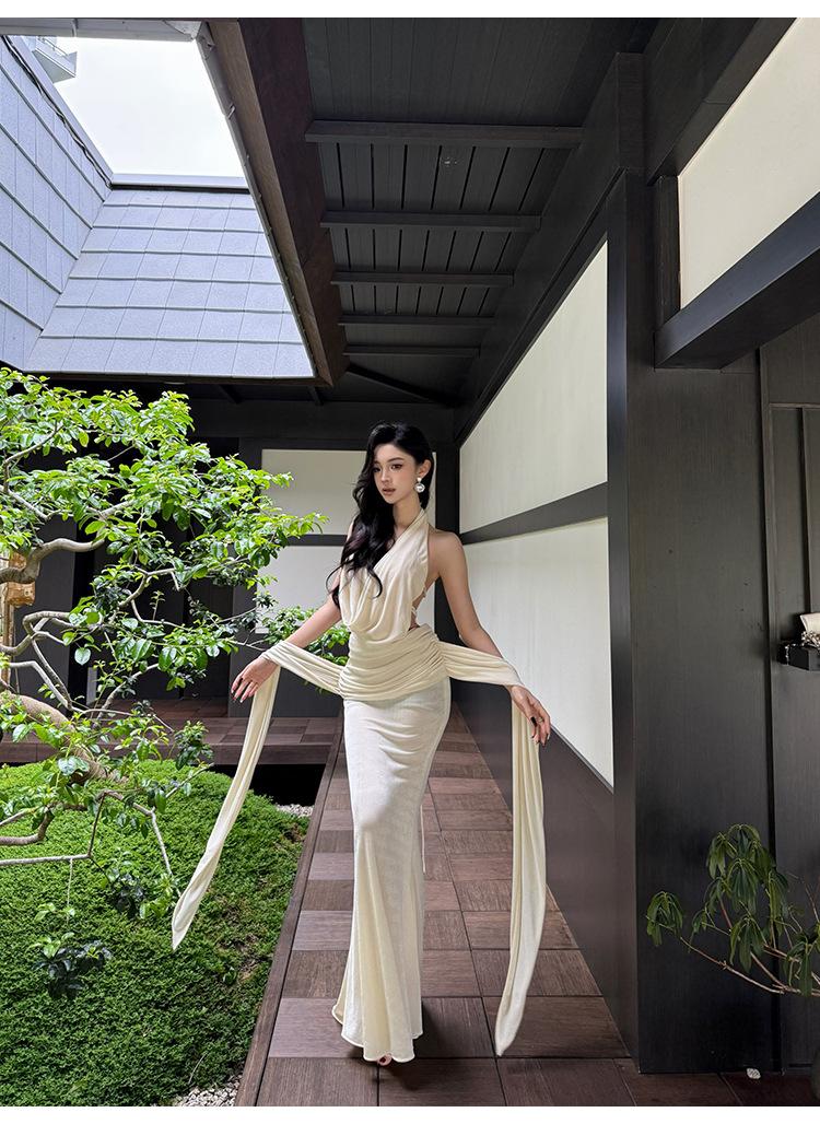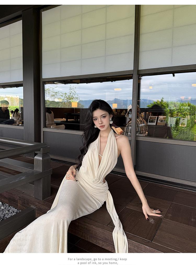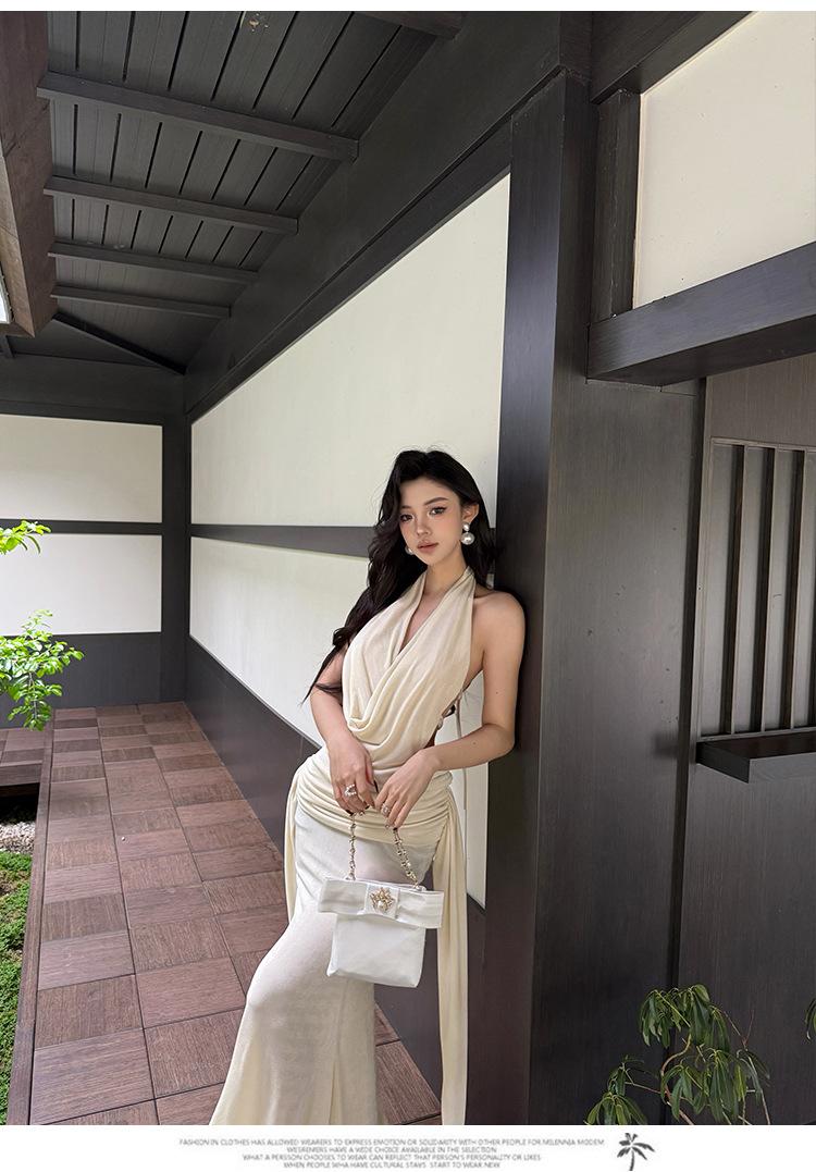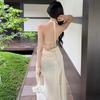 Sexy Yujie Vestido de Cuello Swing sin Espalda con Cuello Halter Diseño de Alta Gama Nicho Sin Bultos Vestido de Noche Verano Mujer