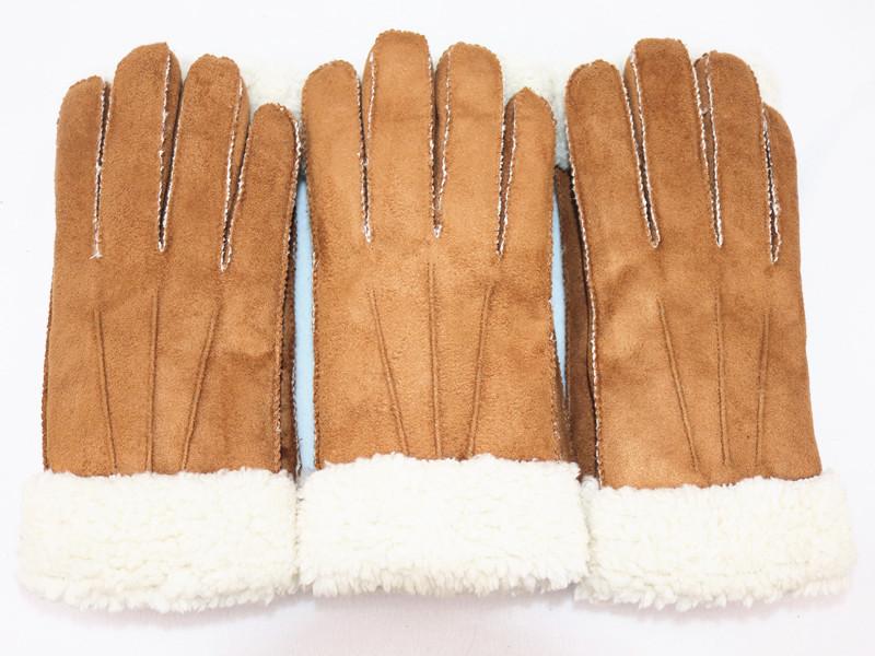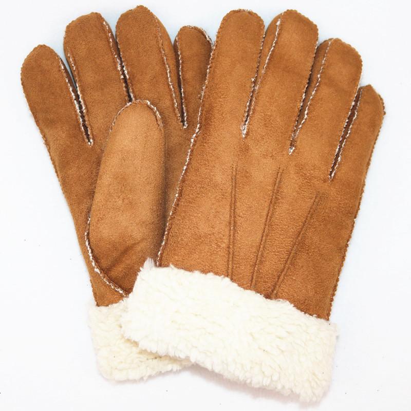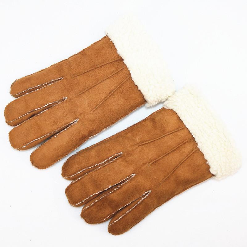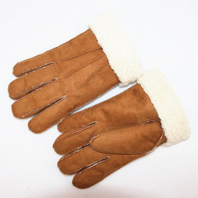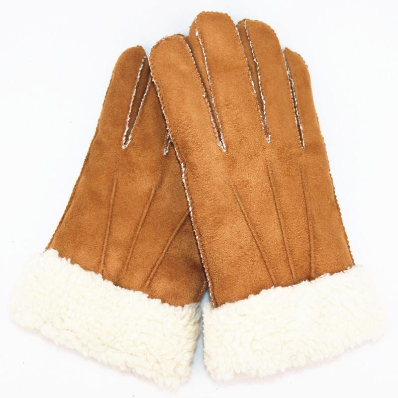 Guantes cálidos de dedo de gamuza compuesta de piel de cordero imitación cuero invierno pareja