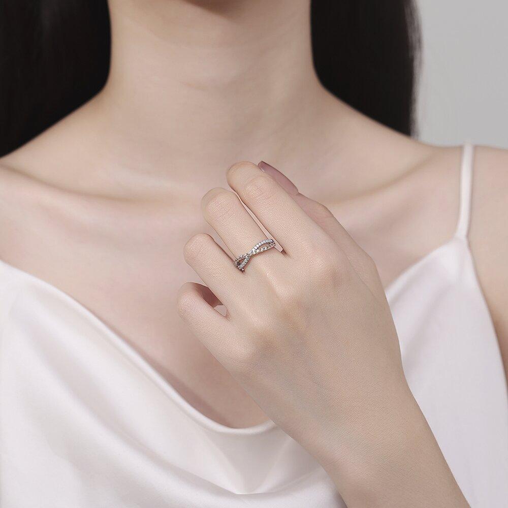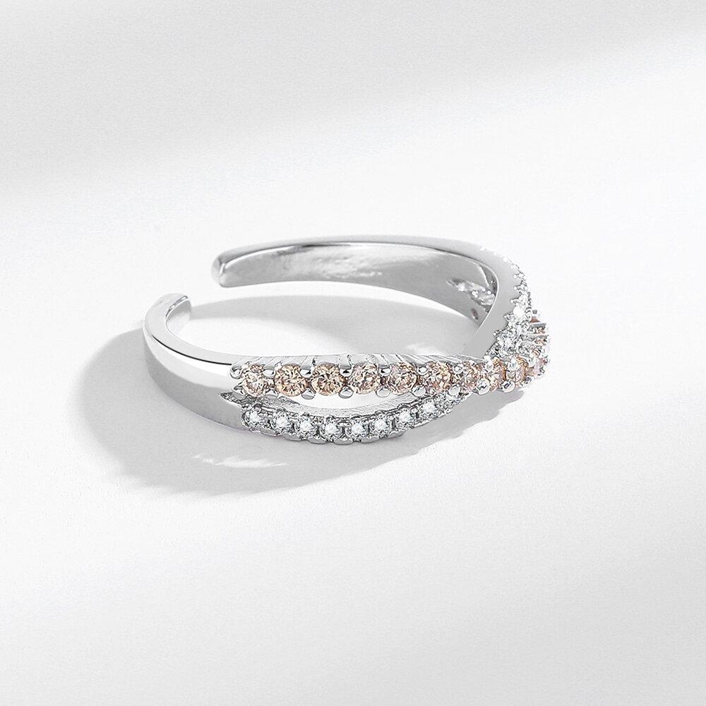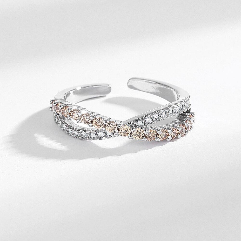 Anillo de Dedo Índice Ajustable de Apertura Cruzada de Alta Gama Más Vendido Transfronterizo Diseño Nicho para Mujer Exquisito Anillo de Circón