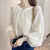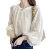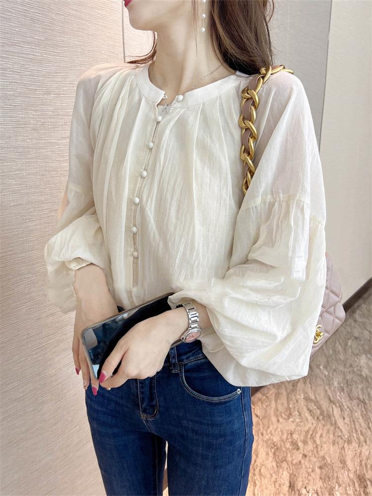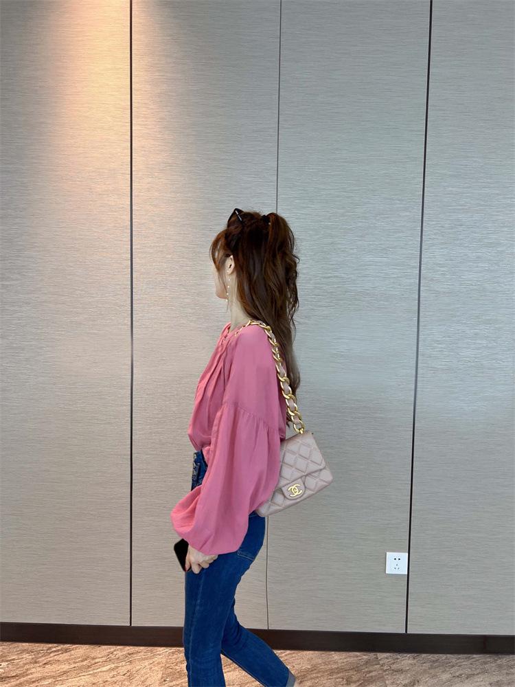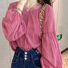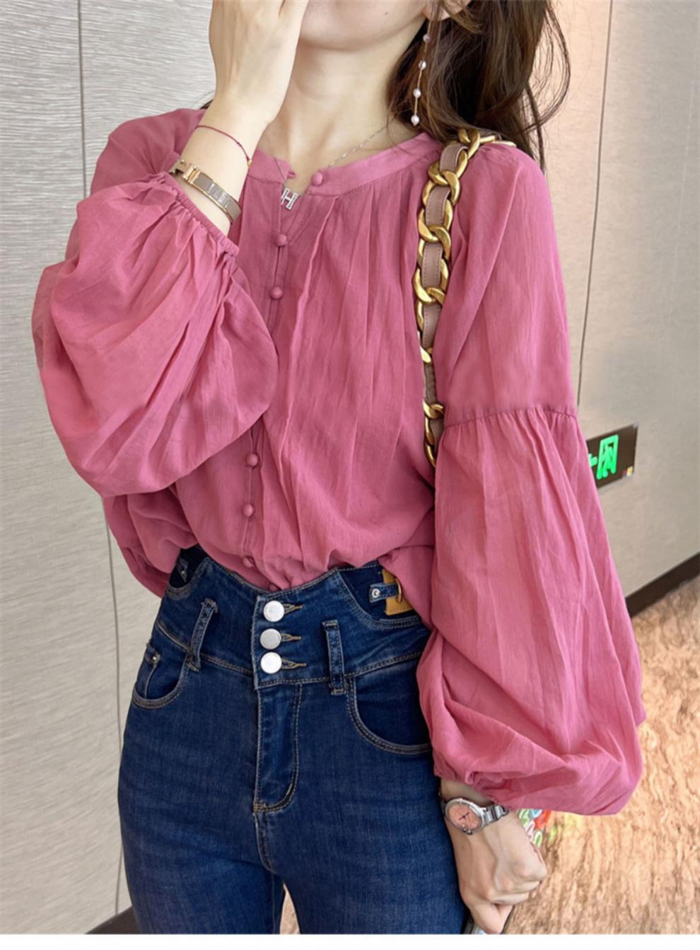 Camisa rosa con mangas farol para mujer, ropa de primavera para mujer, nuevo estilo 2024, camisa estilo occidental, blusa de gasa de diseño Sense Niche para mujer