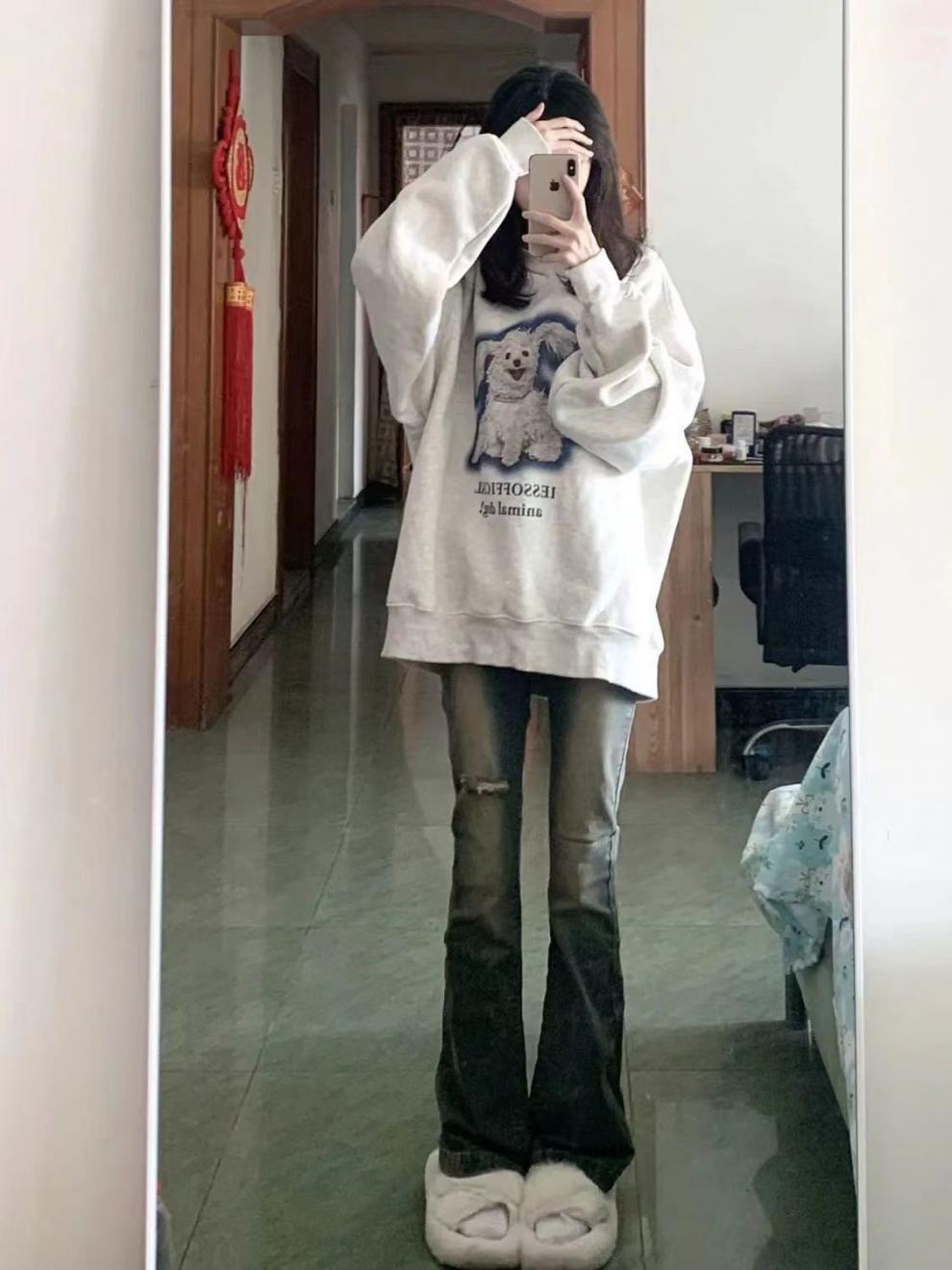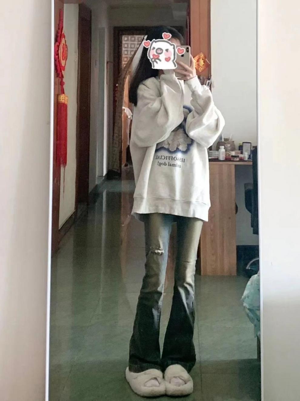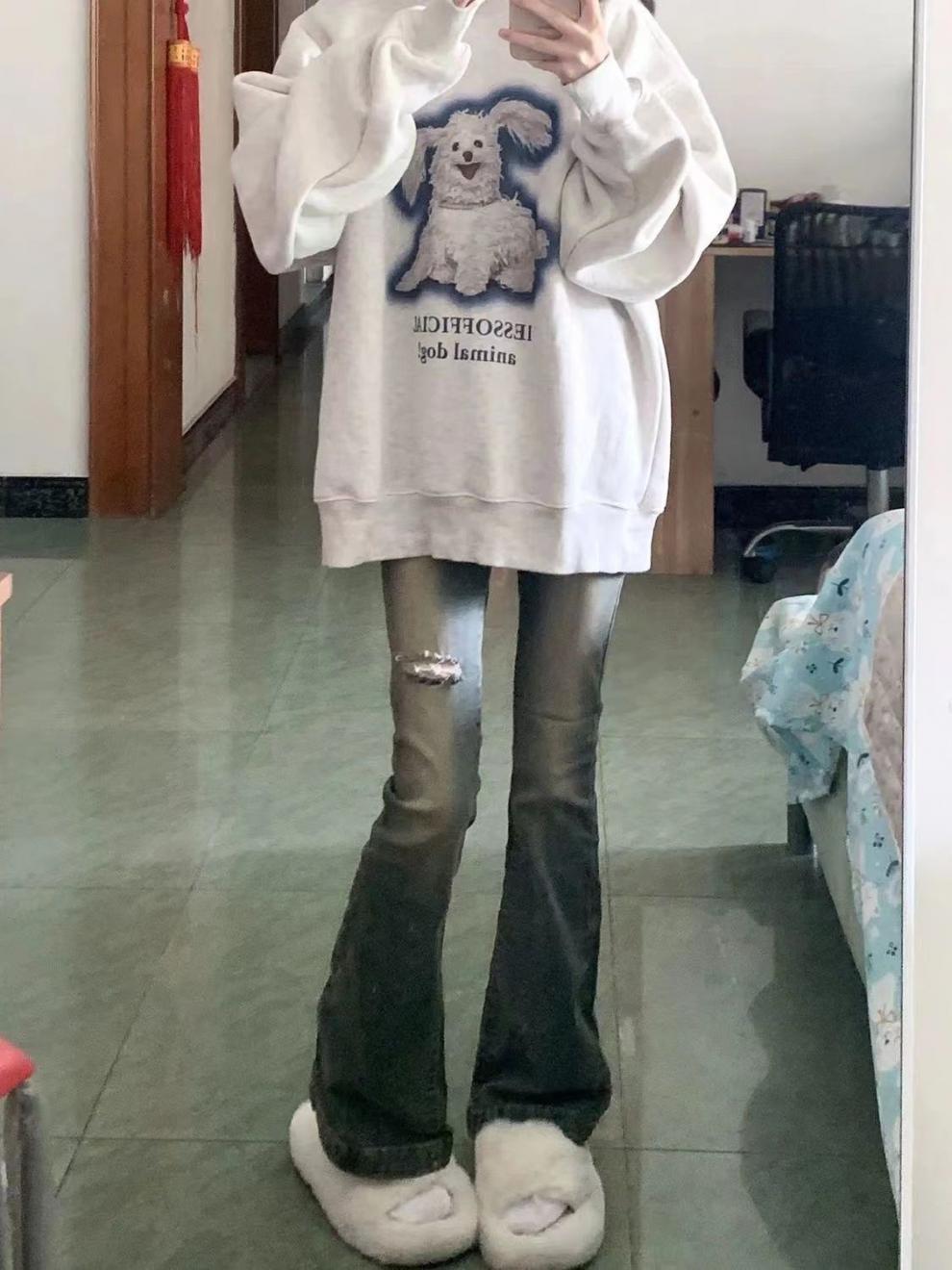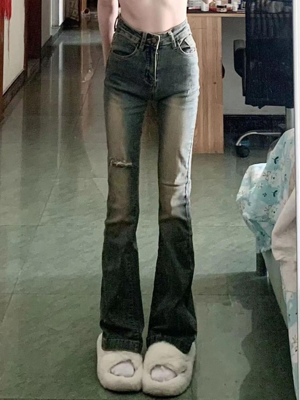 Micro-jeans retro desgastados con agujeros para mujer primavera y otoño nuevo cintura alta elástico ajuste ceñido diseño adelgazante pantalones acampanados
