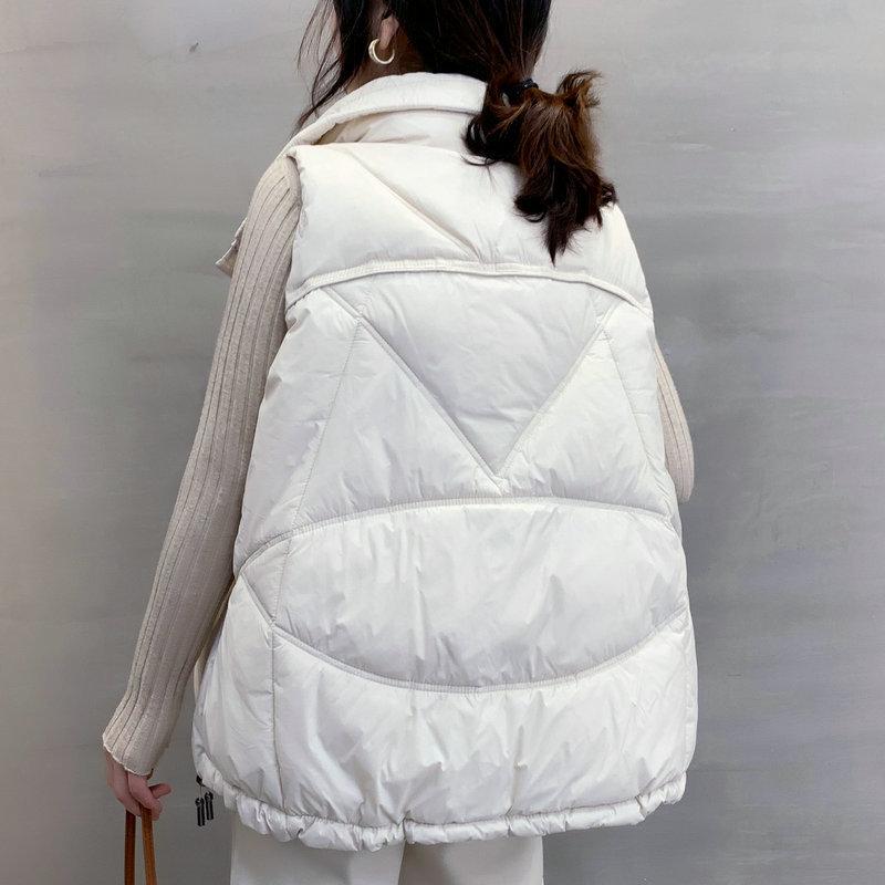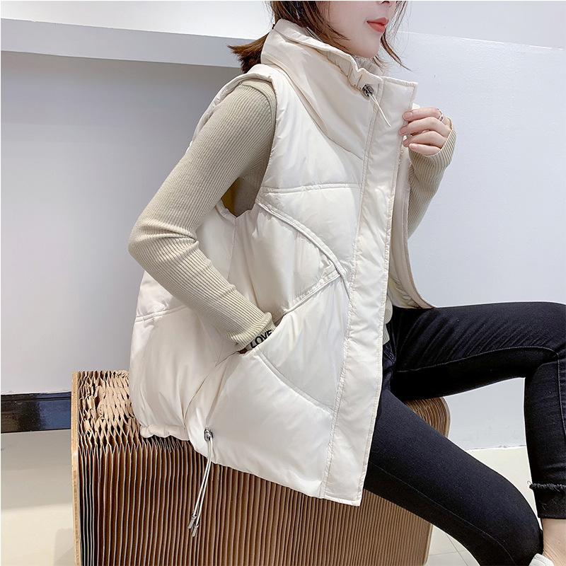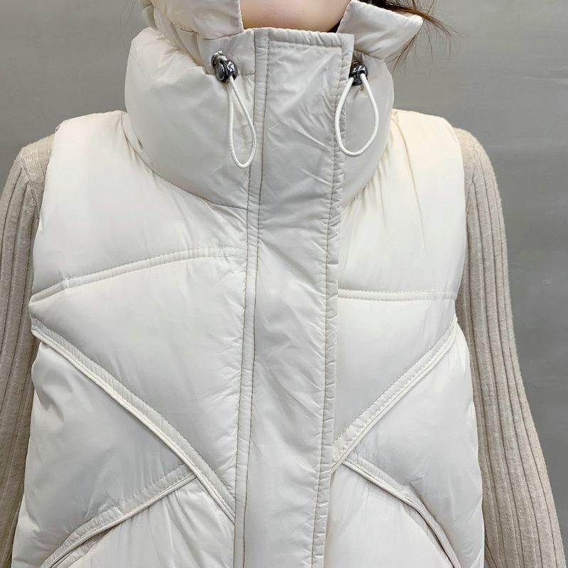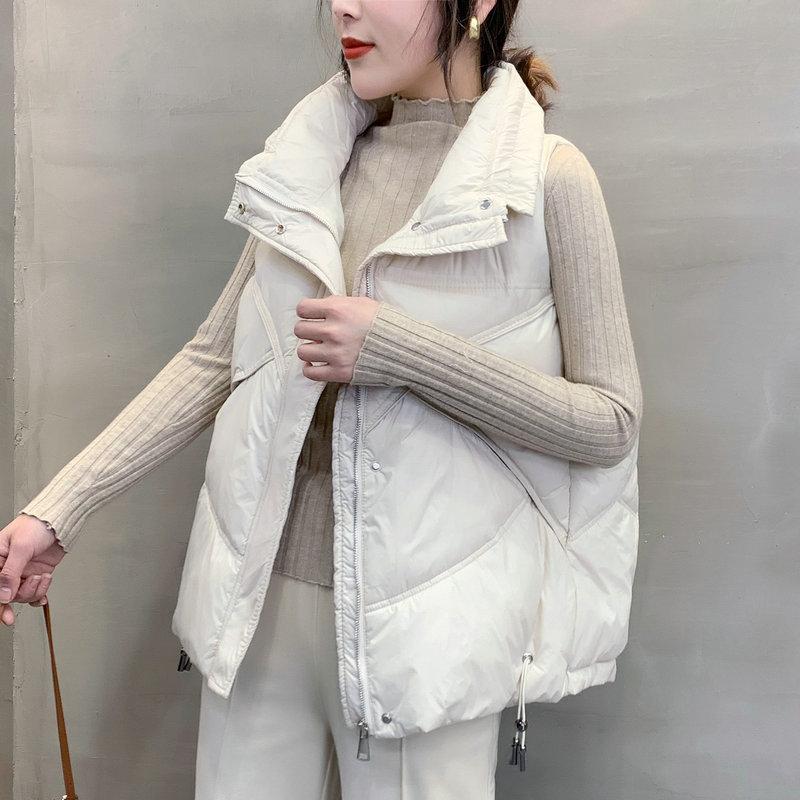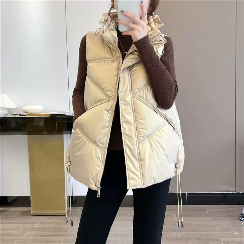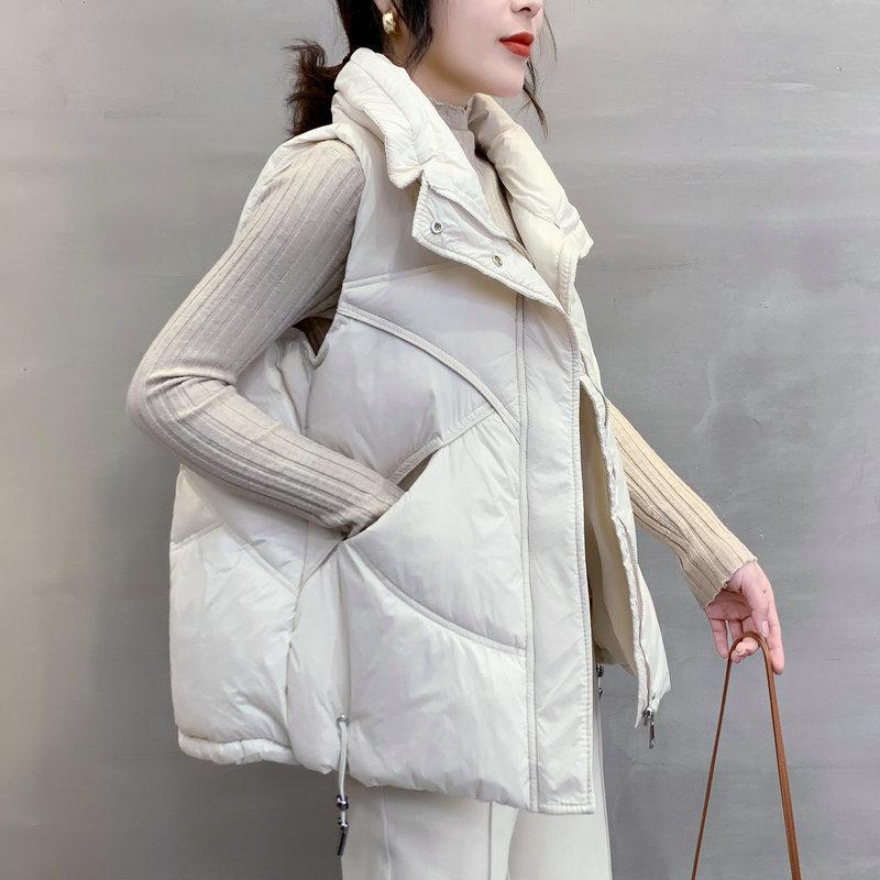 Chaqueta de plumón ligera de otoño e invierno 2023, chaleco corto holgado para mujer, chaleco de plumón de pato blanco con cordón, moda