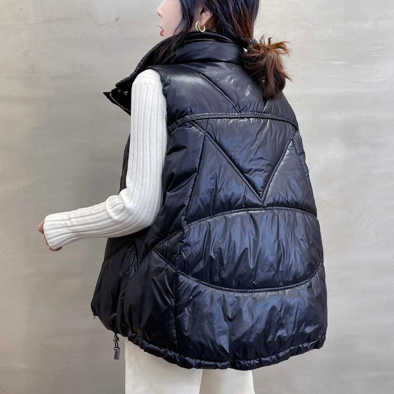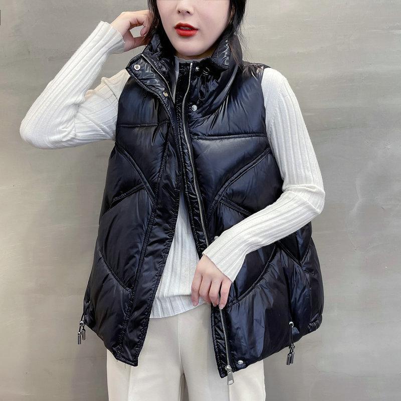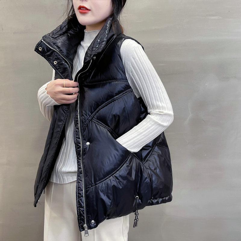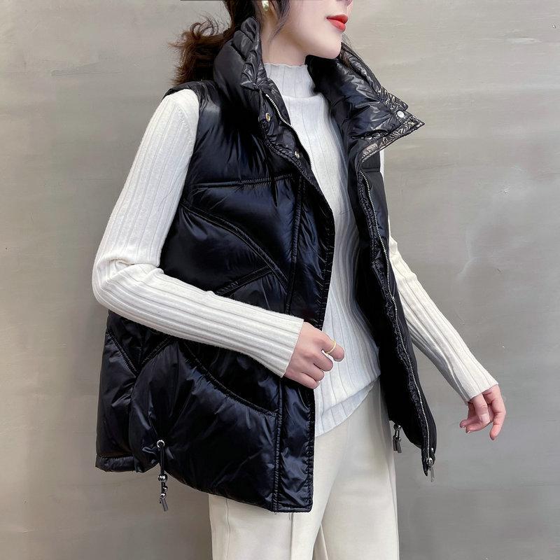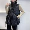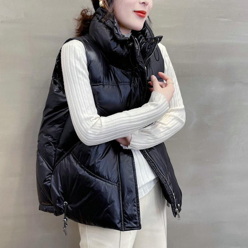 Chaqueta de plumón ligera de otoño e invierno 2023, chaleco corto holgado para mujer, chaleco de plumón de pato blanco con cordón, moda