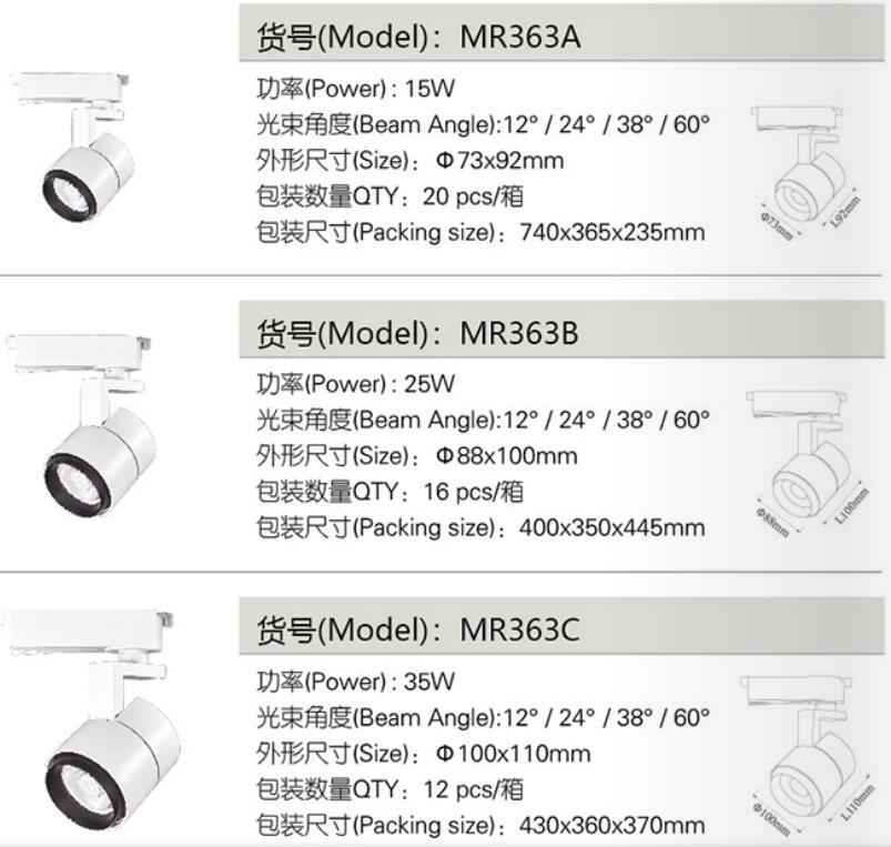 Los focos de riel se utilizan ampliamente en lugares clave de iluminación comercial como tiendas de ropa, tiendas de muebles, museos, vitrinas de joyería, hipermercados, tiendas de textiles para el hogar, tiendas de alimentos, tiendas de electrodomésticos de cocina, etc. El uso de focos de riel para iluminar las exhibiciones puede hacer que las exhibiciones sean más enfocadas y artísticas. Ahora el mundo está empezando a utilizar la serie de focos de riel COB. El papel de la iluminación comercial moderna va mucho más allá de simplemente iluminar objetos y satisfacer las necesidades de la función visual de las personas. También debe ser una garantía para crear espacio, generar atmósfera y buscar una imagen visual perfecta. Los focos de riel COB no solo ahorran energía y son respetuosos con el medio ambiente, sino que también tienen una iluminación uniforme sin áreas oscuras, y el tamaño se adapta a las necesidades de iluminación de varias áreas diferentes. Interpretan plenamente los elementos modernos indispensables en la vida de alta calidad.