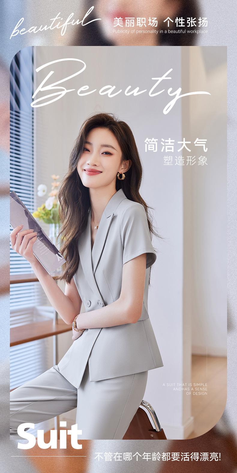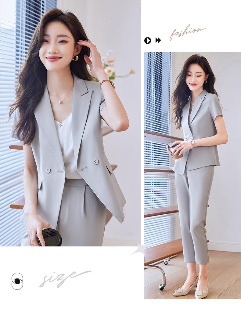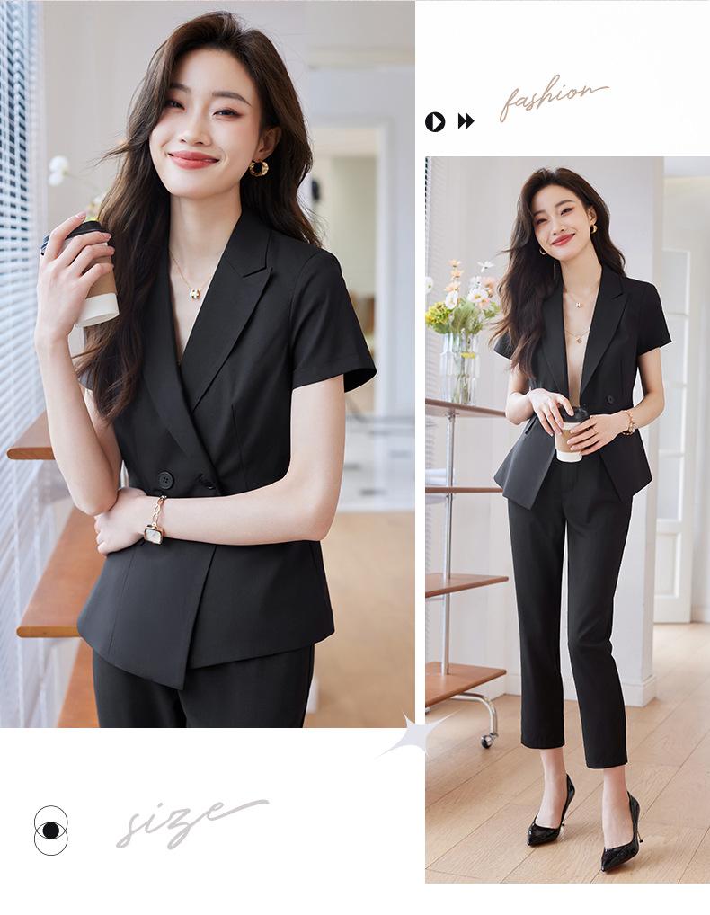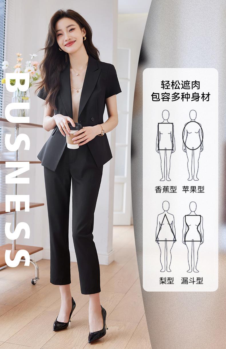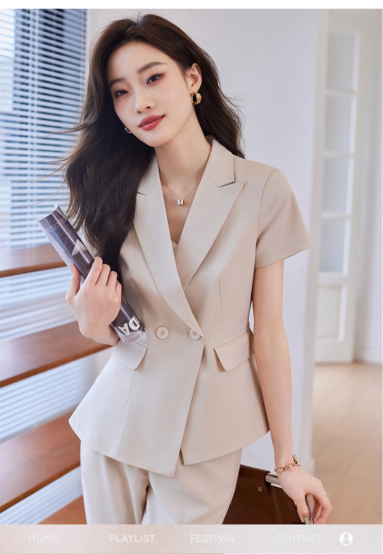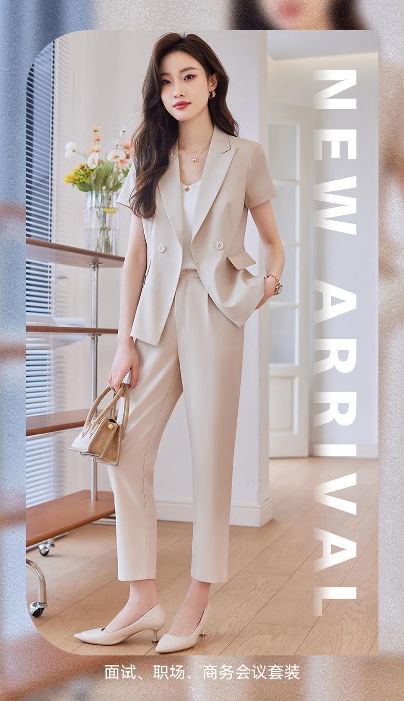 Traje de verano de manga corta para mujer, chaqueta y pantalones de dos piezas, profesional, sencillo, elegante, para ir al trabajo, 2023
