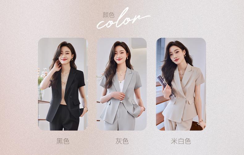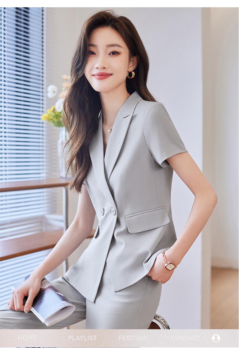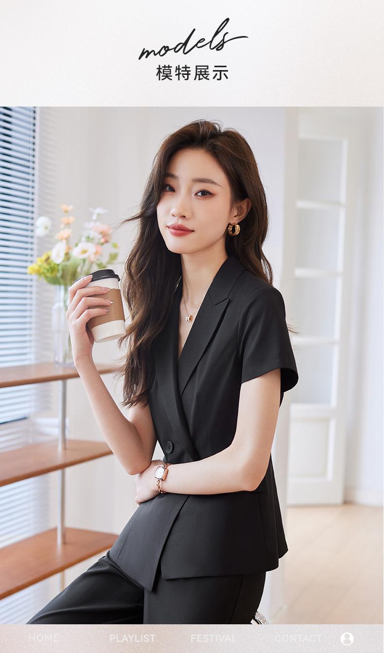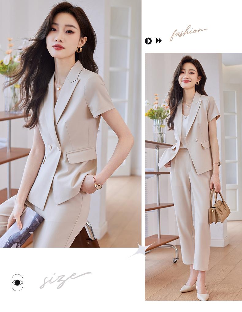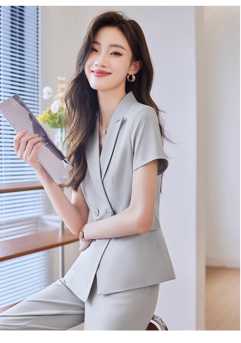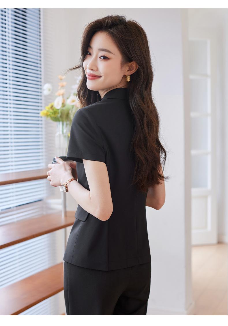 Traje de verano de manga corta para mujer, chaqueta y pantalones de dos piezas, profesional, sencillo, elegante, para ir al trabajo, 2023