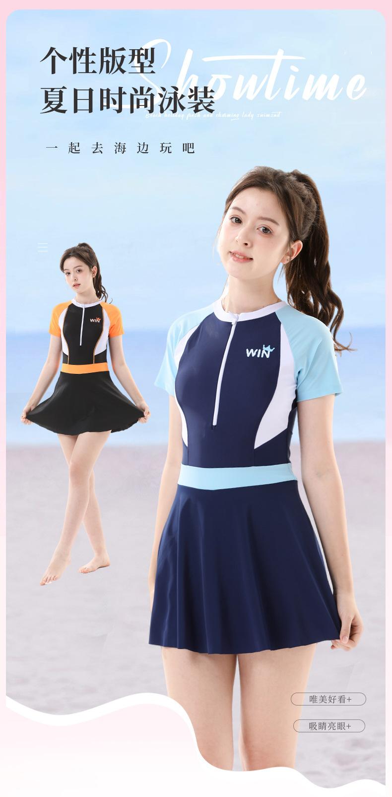 Traje de Baño Aproximado Estilo Falda para Baño en Aguas Termales, Deportivo Conservador Adelgazante Cubre Vientre Profesional Piscina Una Pieza para Mujer 2025