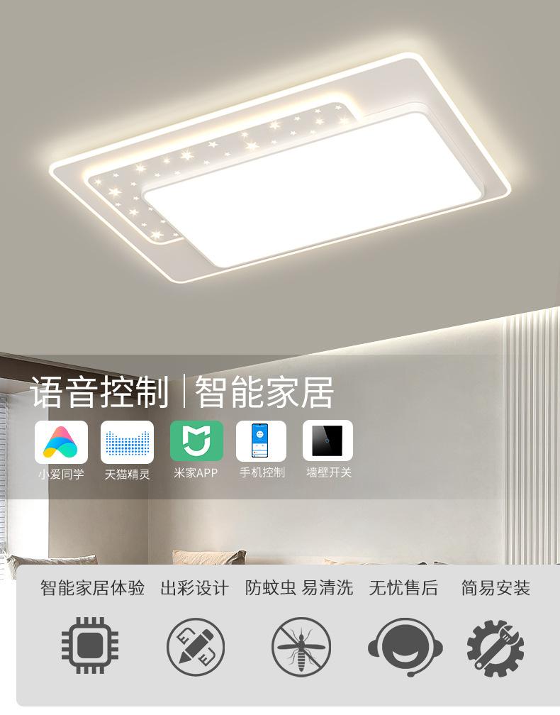 Lámpara de sala de estar, lámpara de techo, Guangdong Zhongshan, moderna, simple, nueva lámpara principal, paquete para toda la casa, combinación de lámpara inteligente