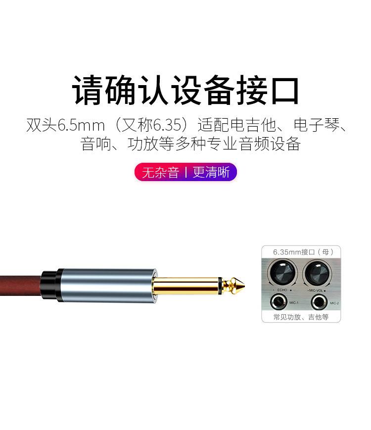 Cable de 6.5mm 1.5m Mezclador Amplificador Audio Altavoz Guitarra Eléctrica Cable de Audio 6.35 a 6.35 Interfaz Blindada