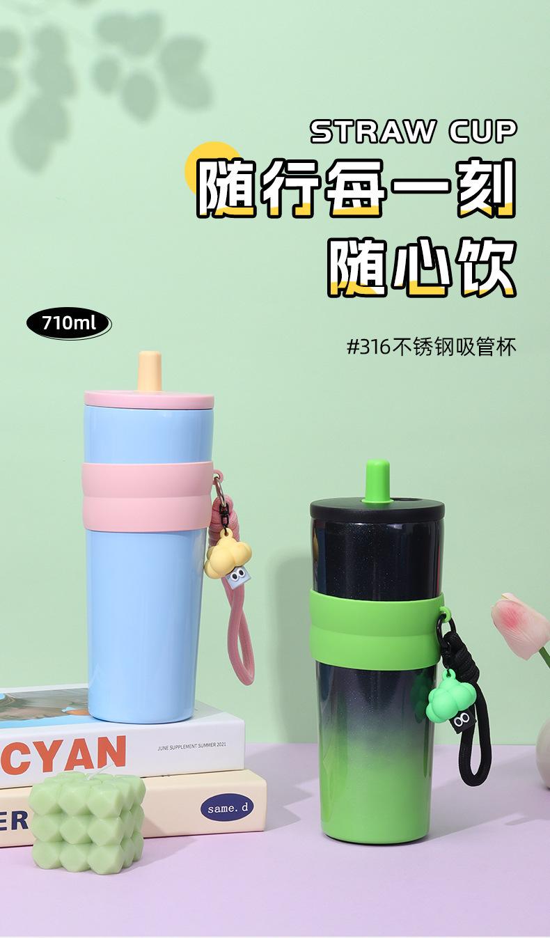 2025 Nuevo Vaso Termo Transfronterizo 316 Vaso Portátil para Coche Portátil Portátil de Gran Capacidad Vaso para Café con Popote