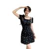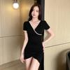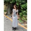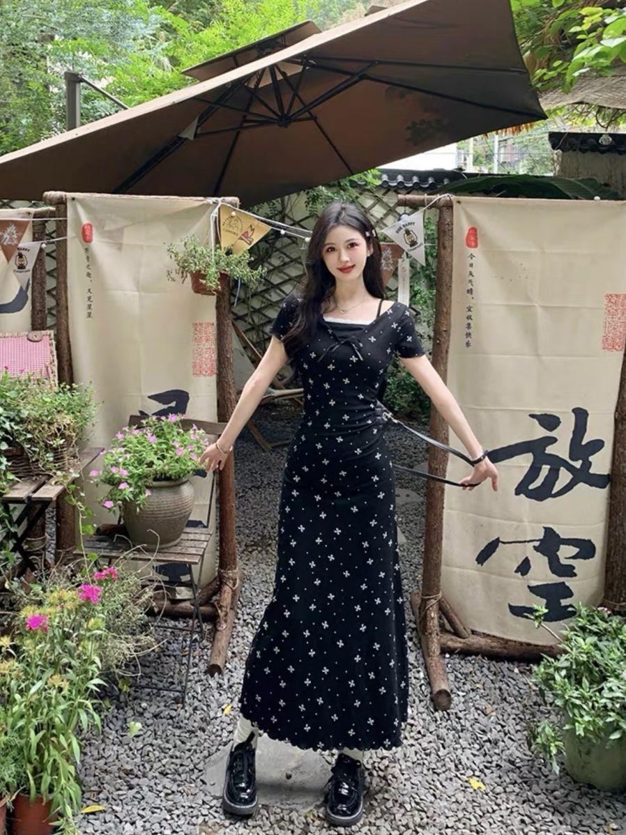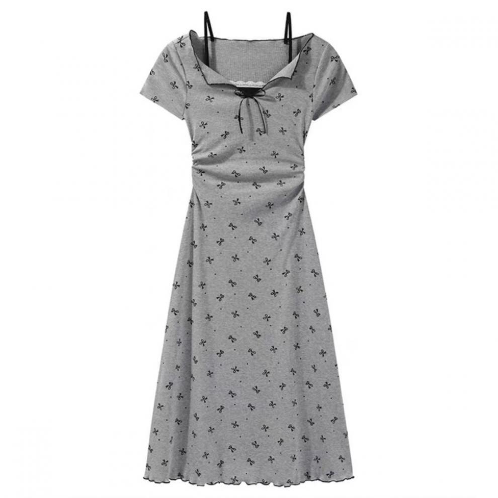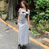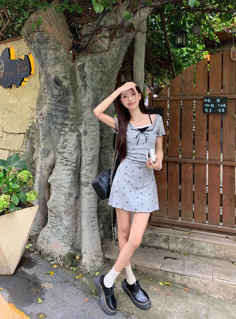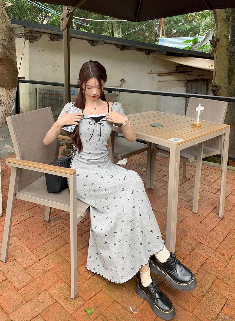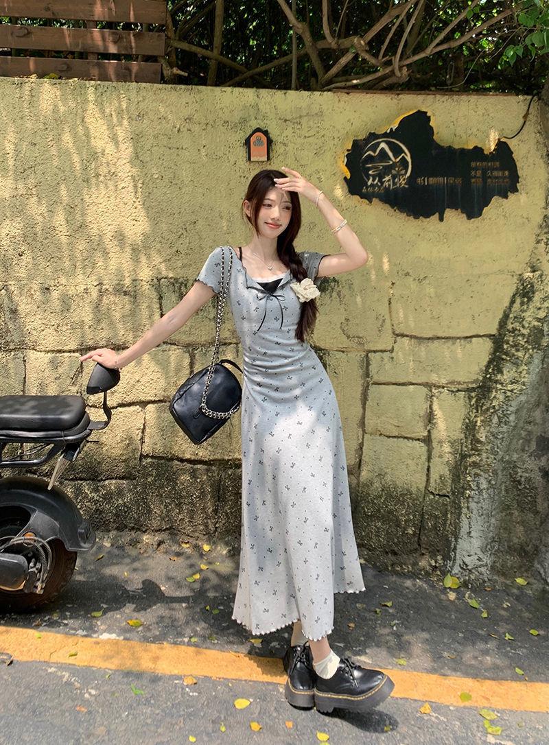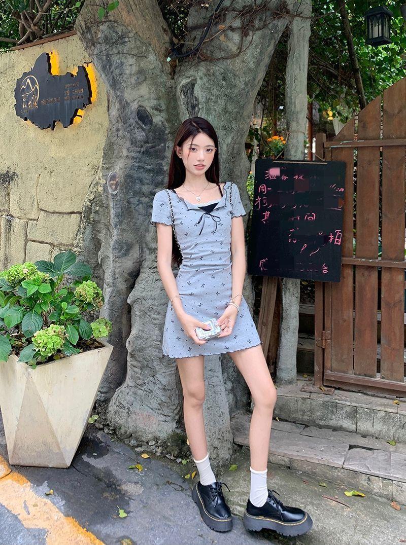 Vestido Puro de Manga Corta Estampado de Alta Gama para Mujer Verano Elegante Encaje Cintura Ajustada Falda de Cadera