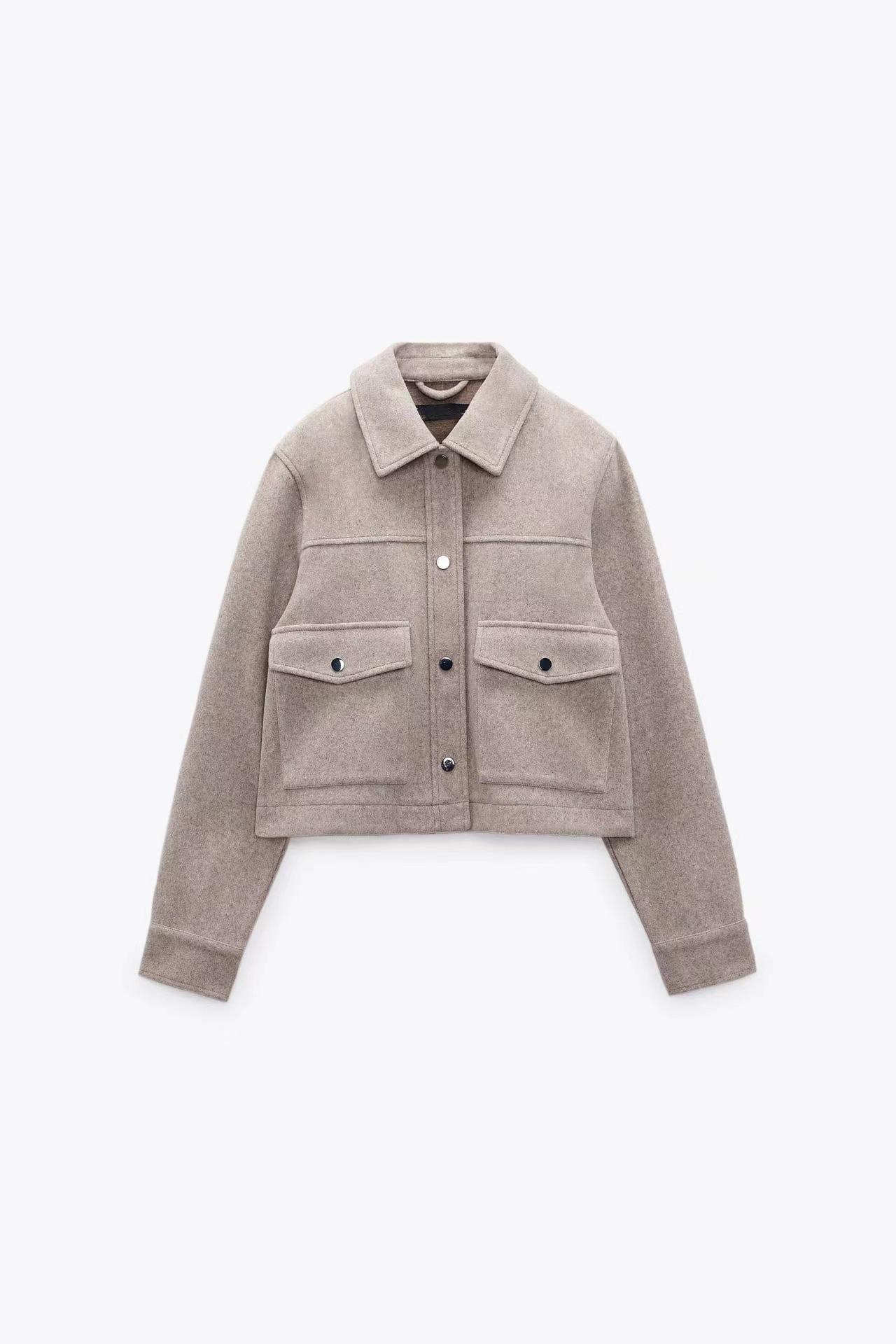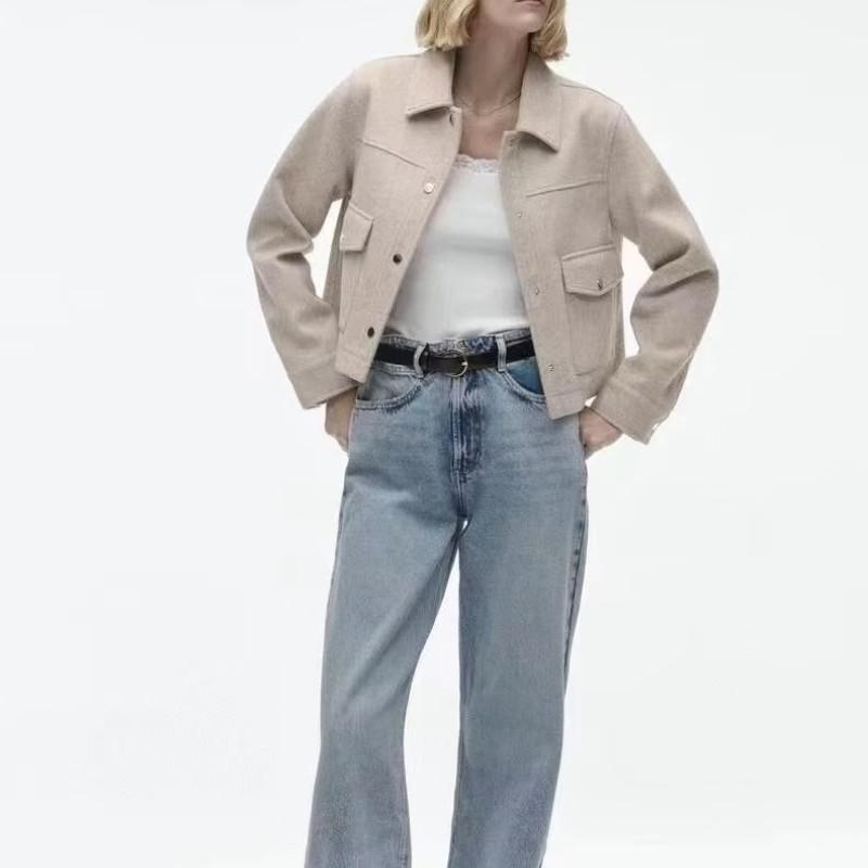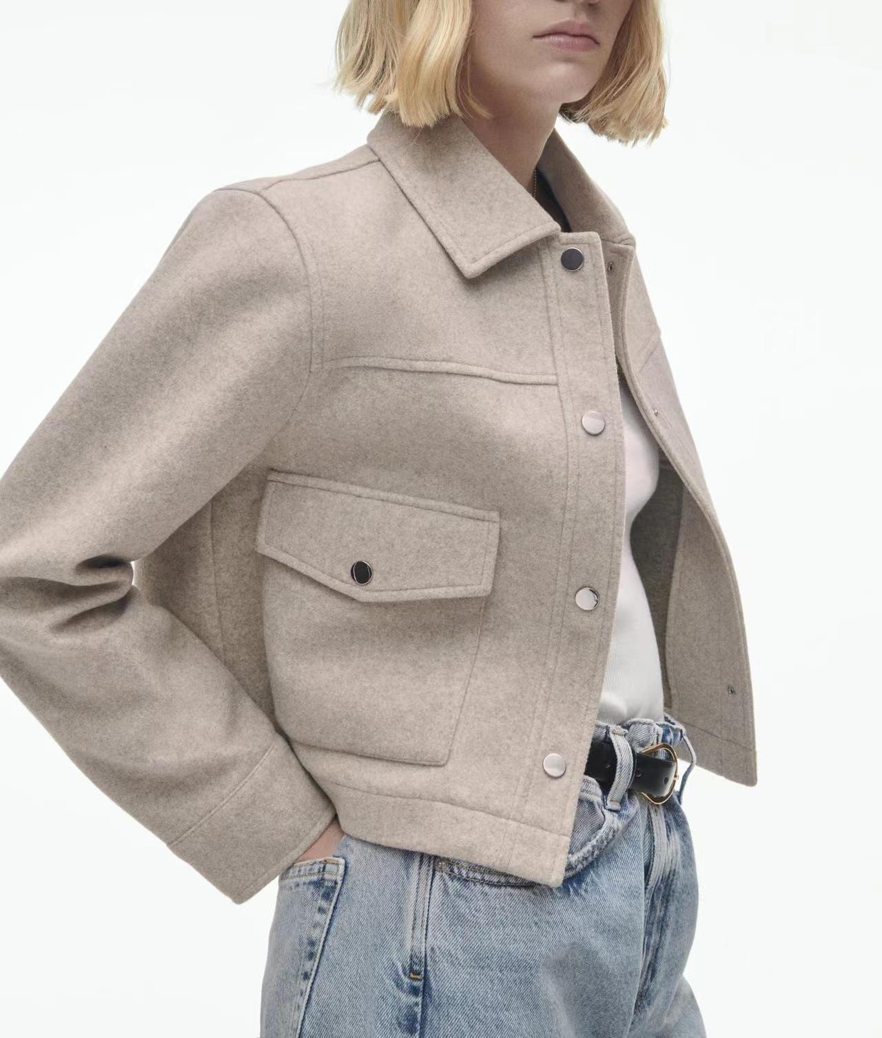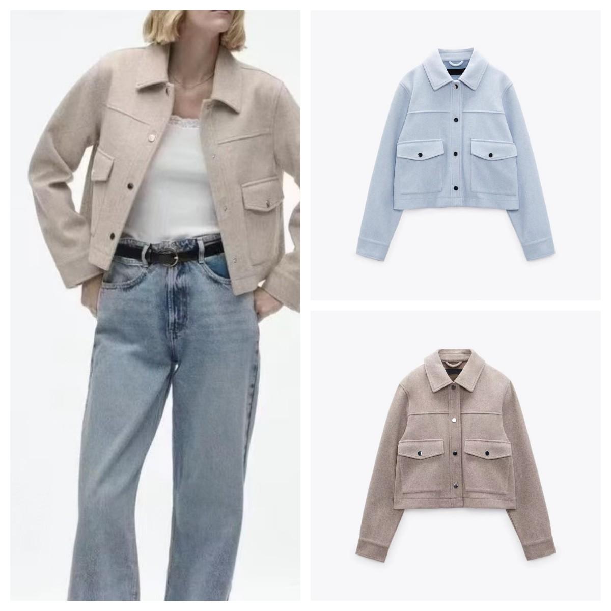Chaqueta informal suave de manga larga con solapa versátil y top corto pequeño de otoño 2023 3046026