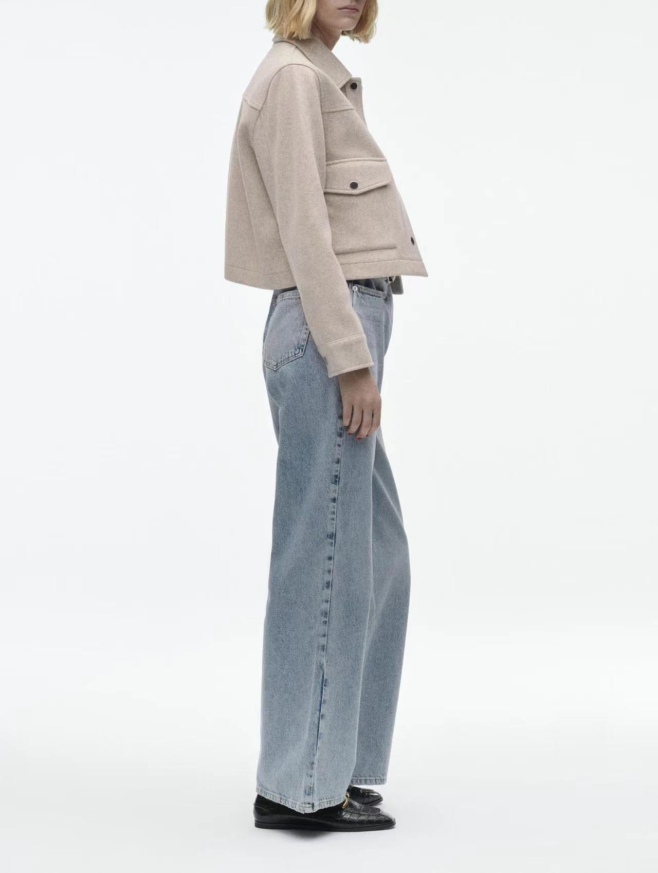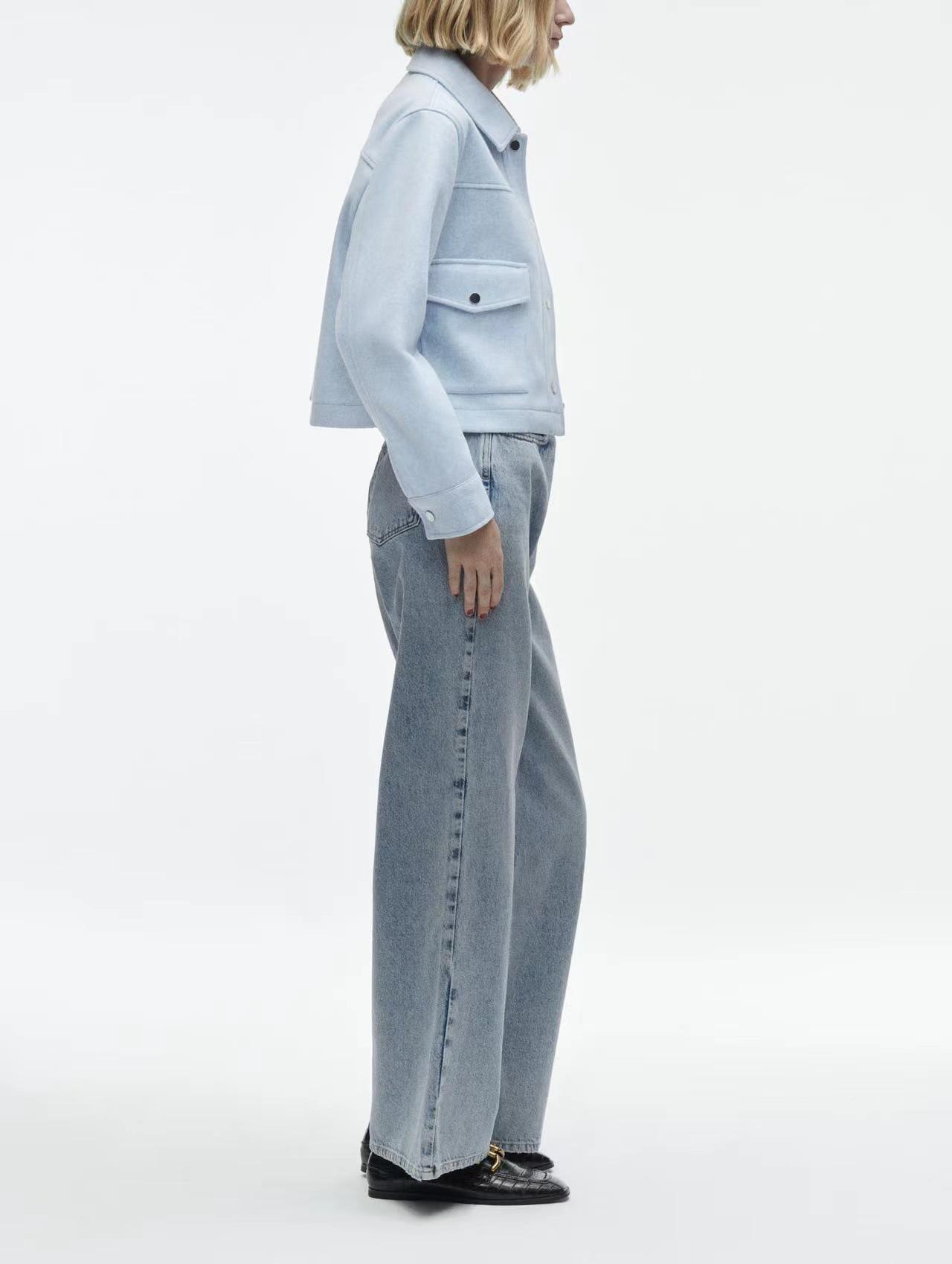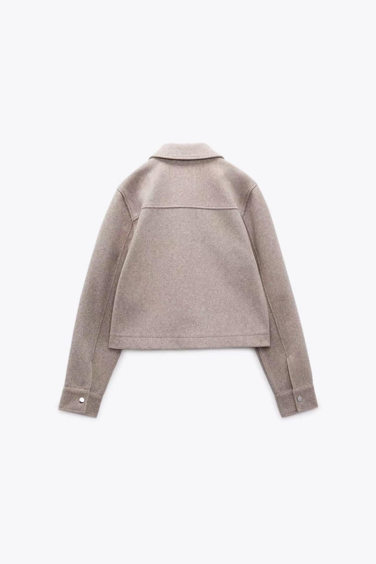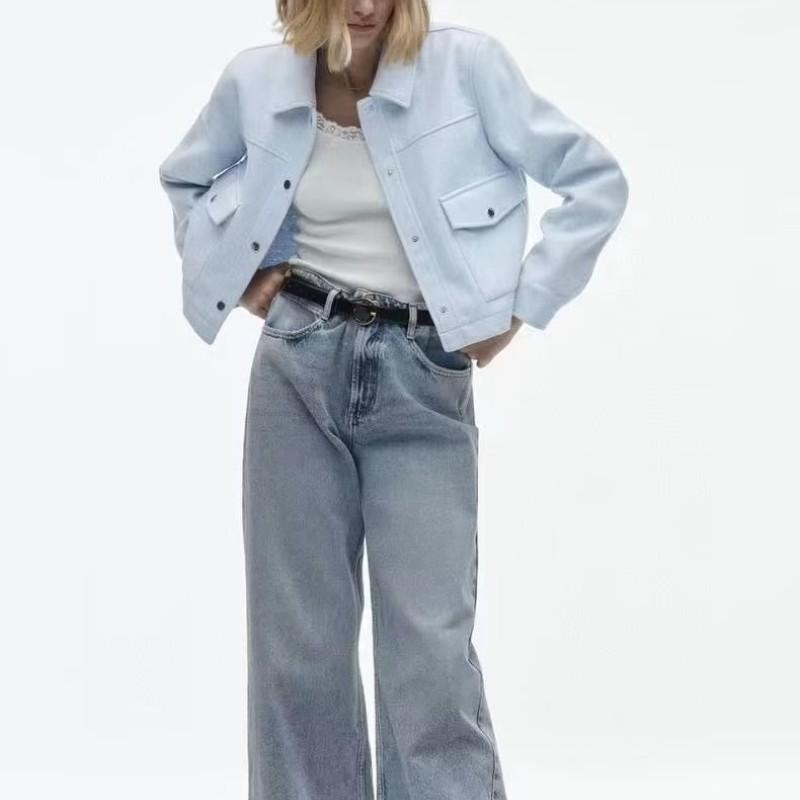 Chaqueta informal suave de manga larga con solapa versátil y top corto pequeño de otoño 2023 3046026