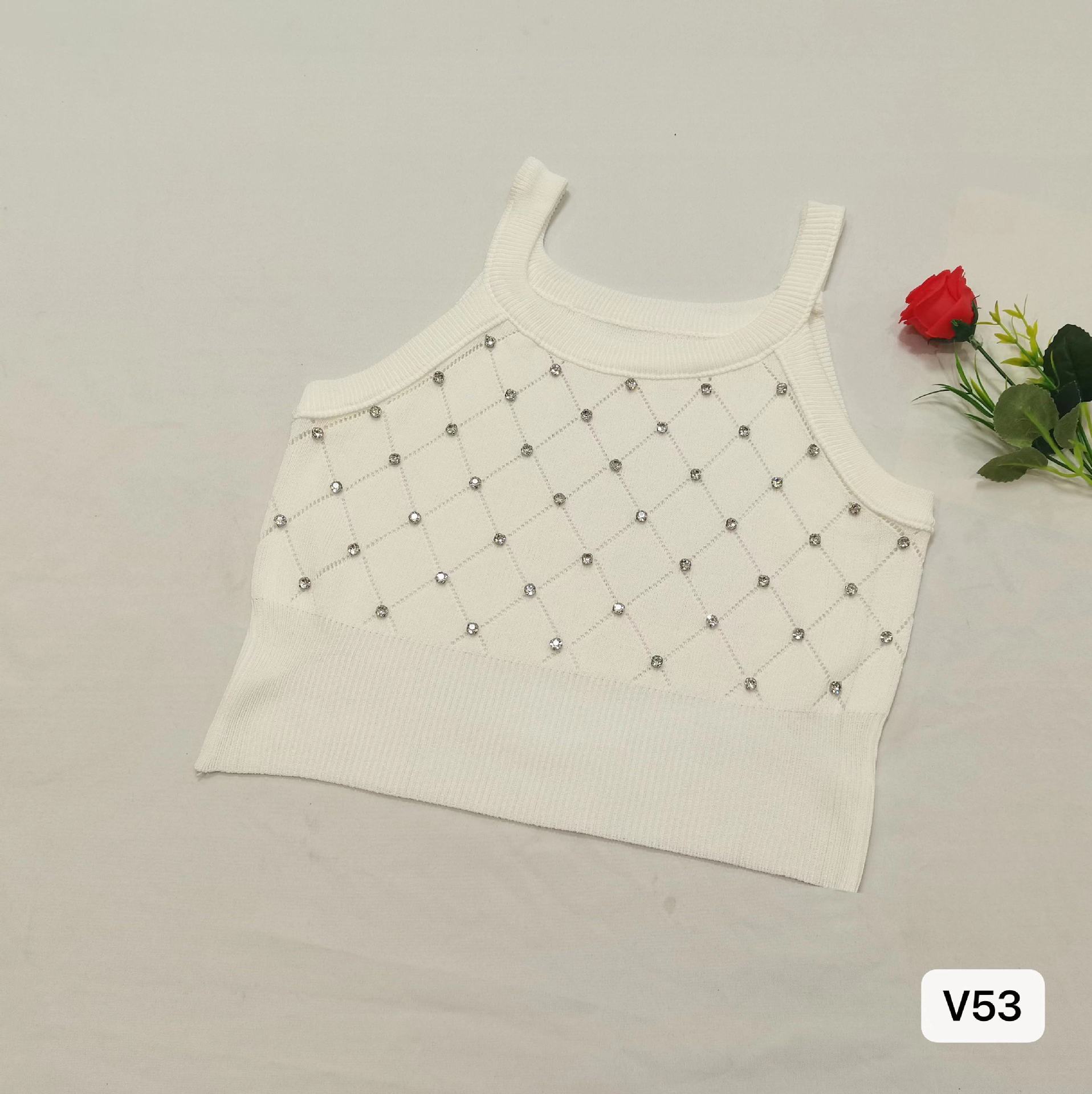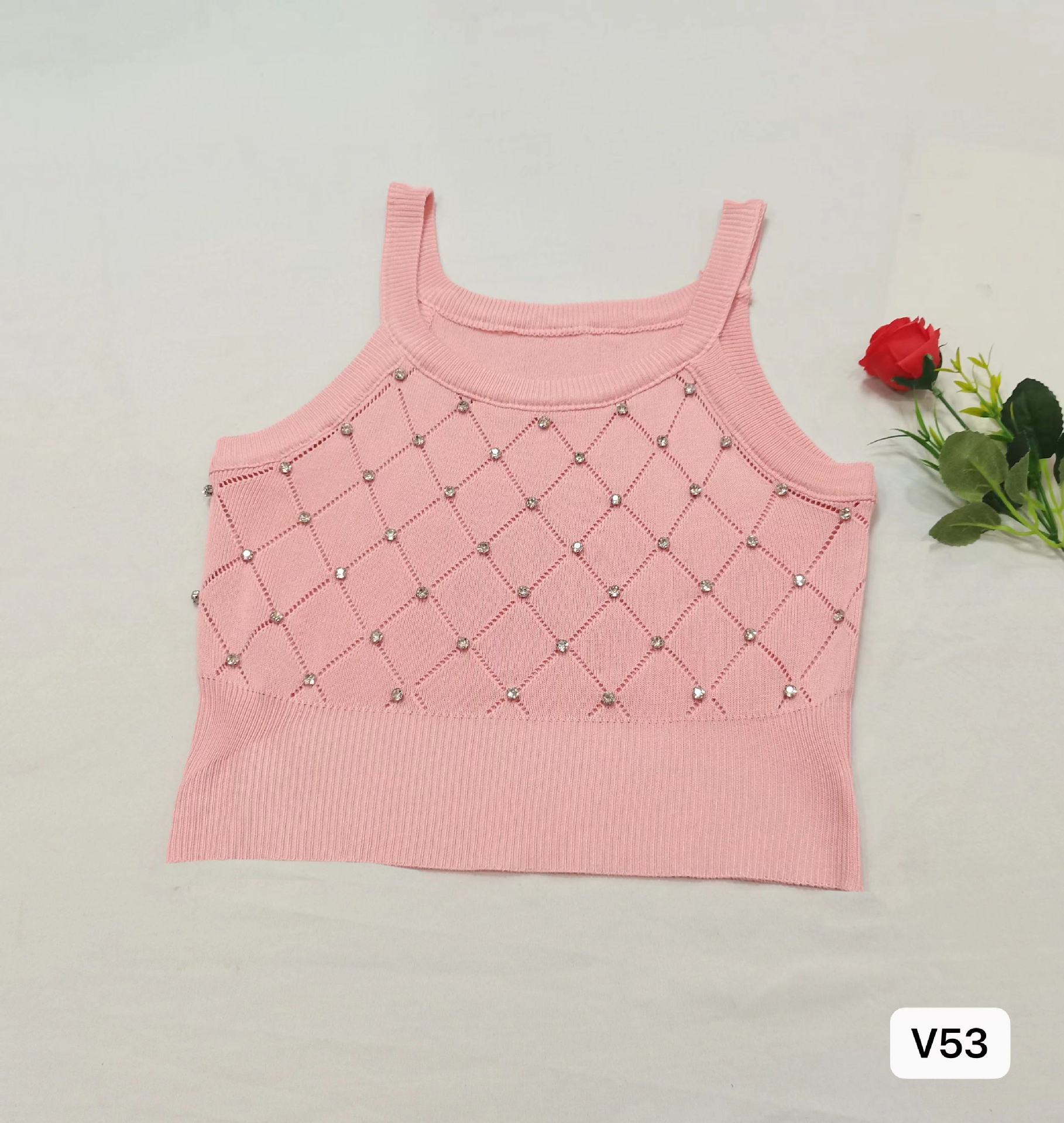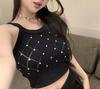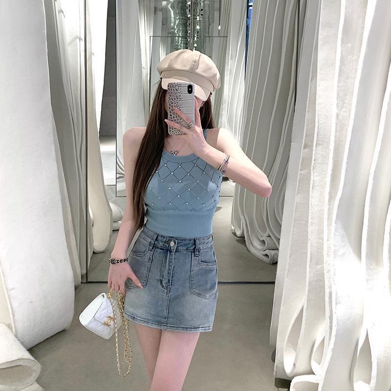Camiseta de punto sin mangas con diseño de Sweet Spice Girl, diseño de uñas rómbicas y diamantes, chaleco interior corto ajustado de verano para mujer