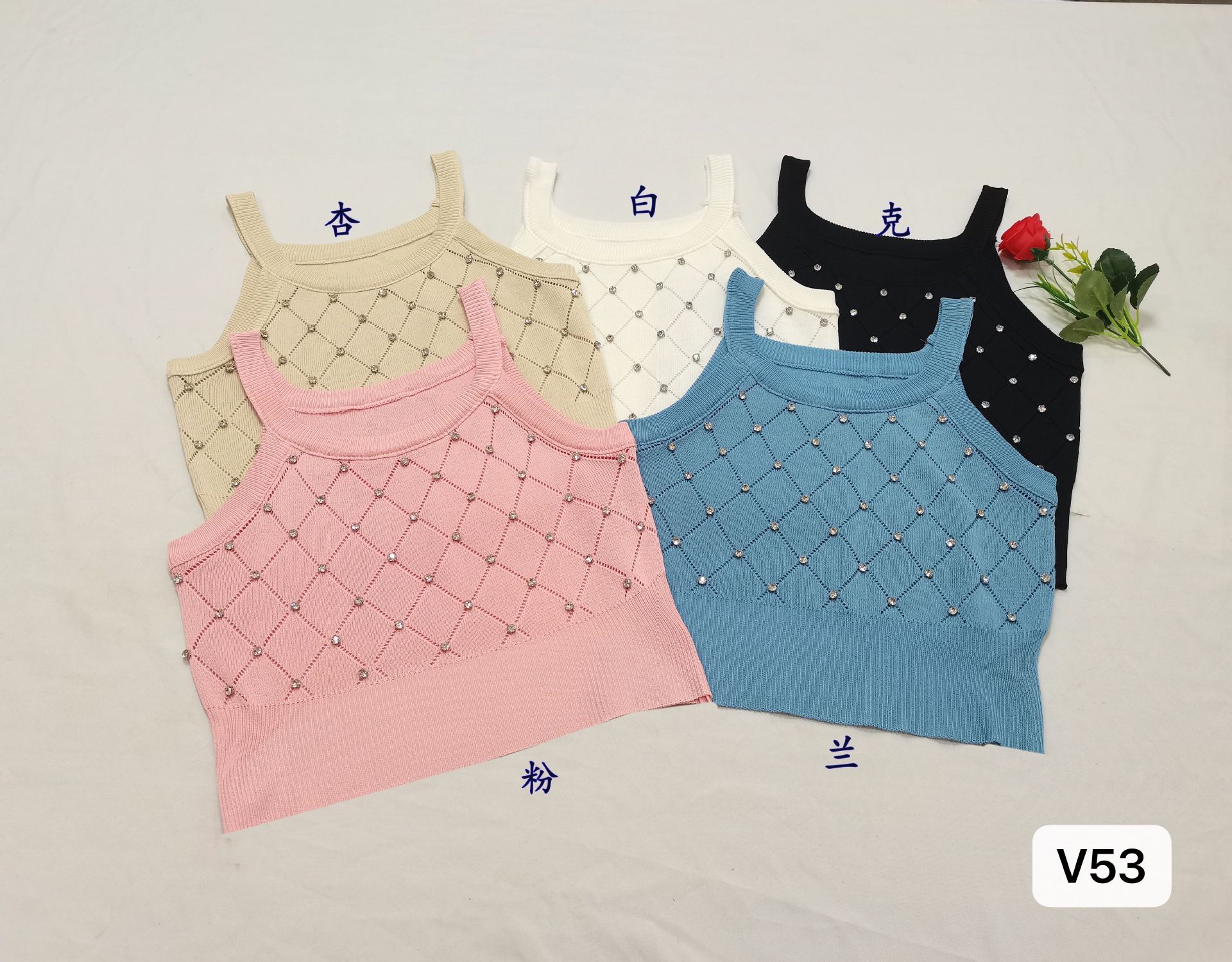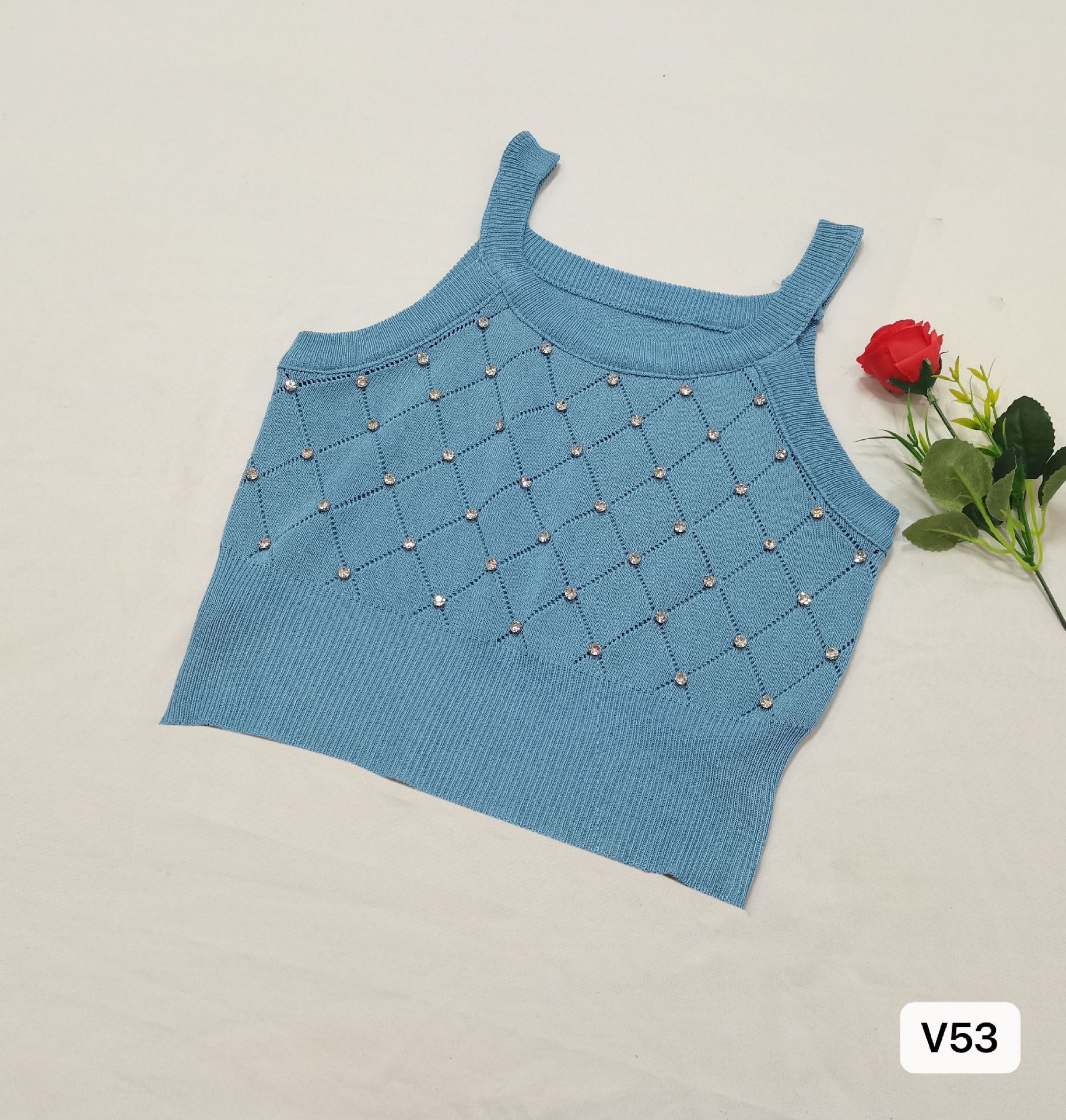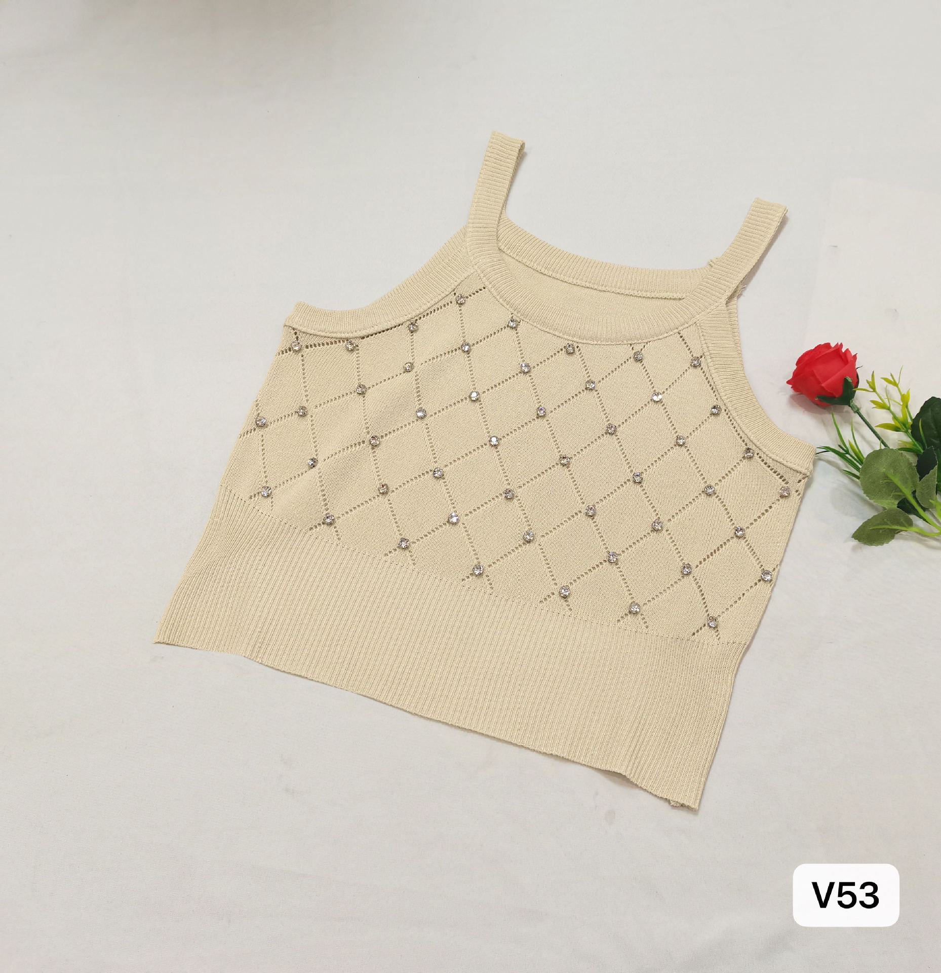 Camiseta de punto sin mangas con diseño de Sweet Spice Girl, diseño de uñas rómbicas y diamantes, chaleco interior corto ajustado de verano para mujer
