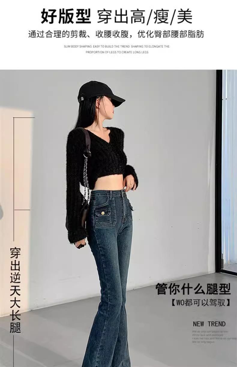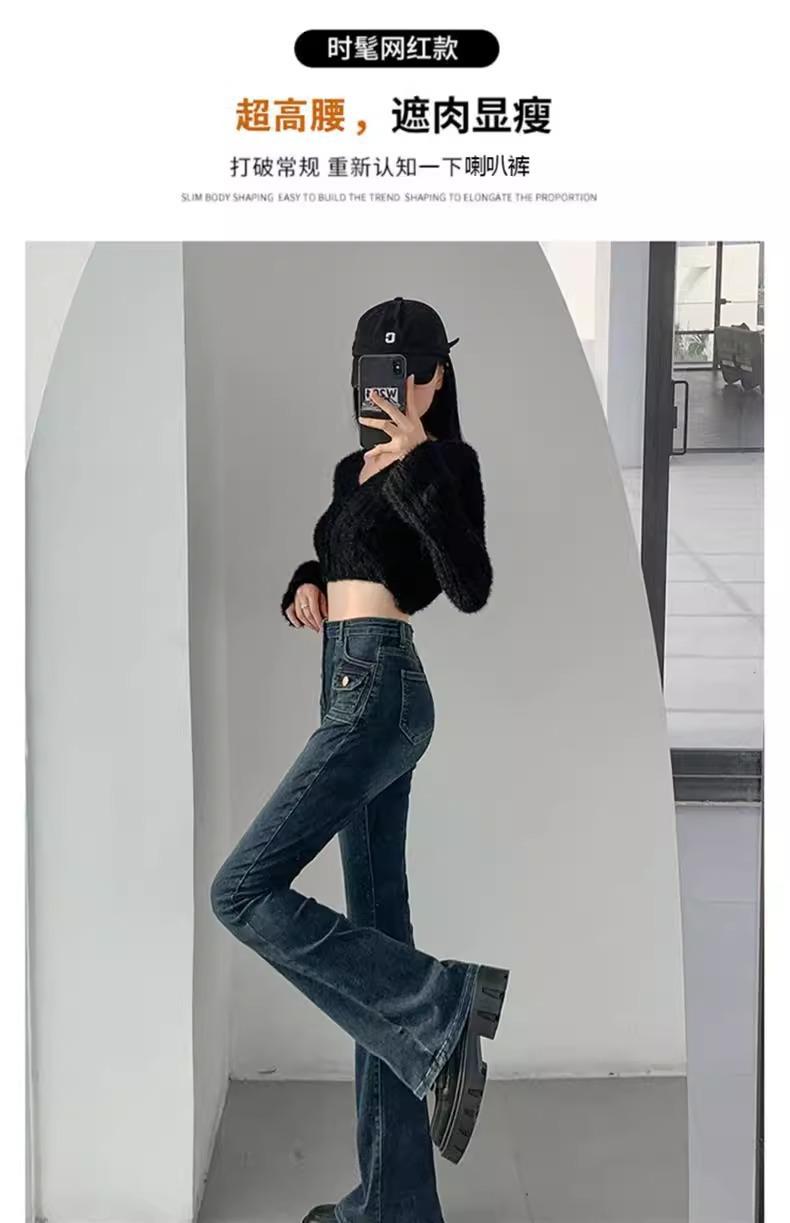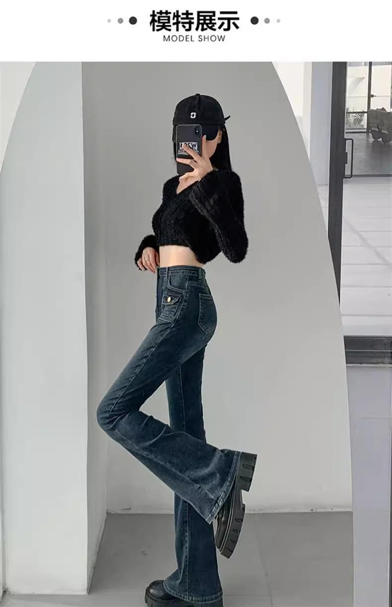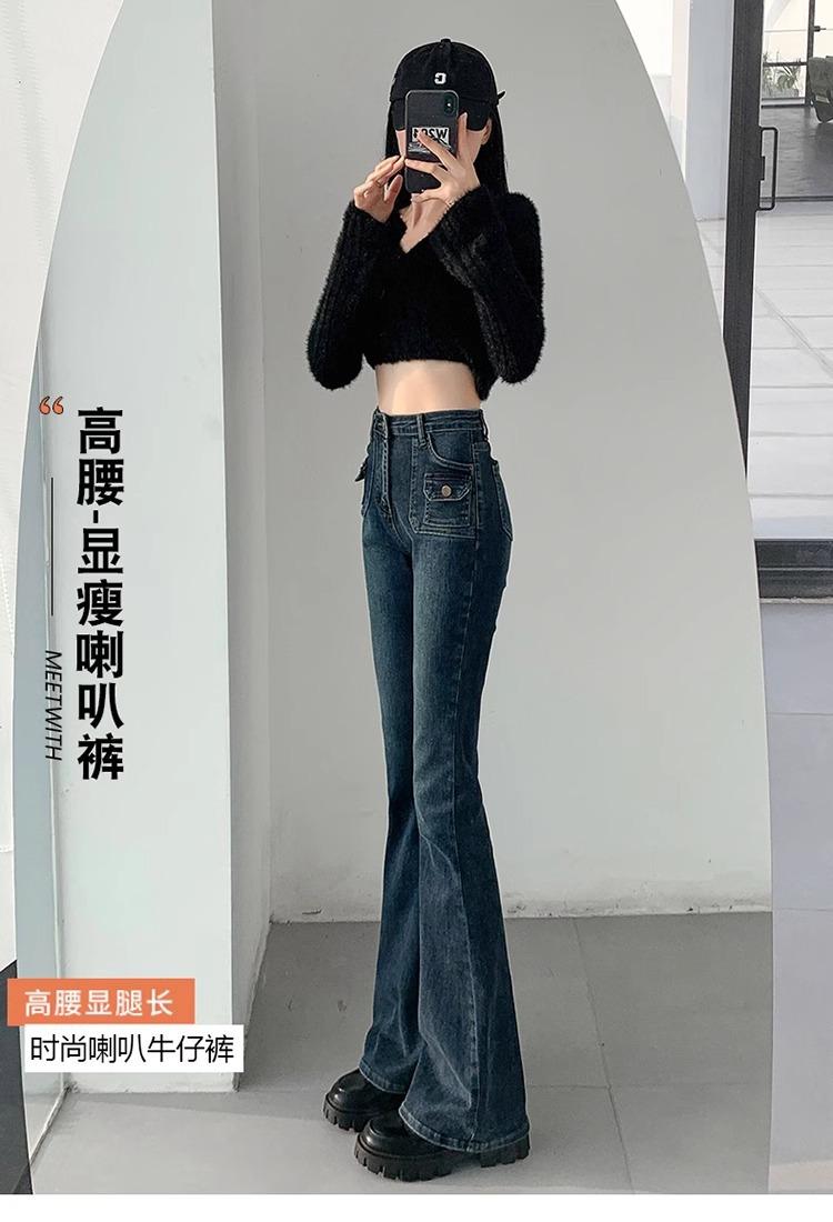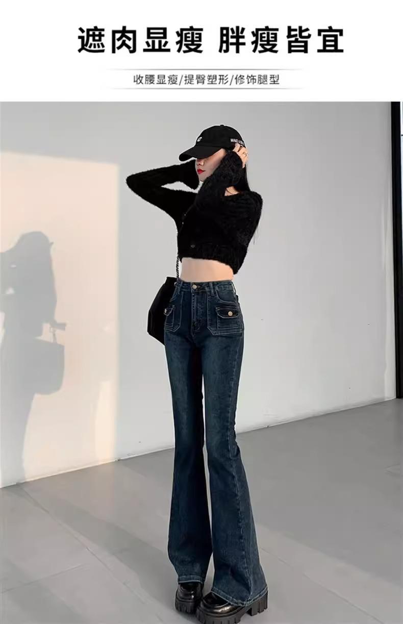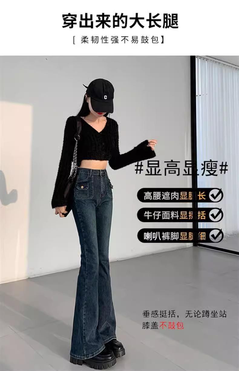 Pantalones vaqueros retro americanos para mujer, primavera y otoño, combinables, nuevos, de cintura alta, adelgazantes, elásticos, ajustados, con diseño de herradura acampanada.