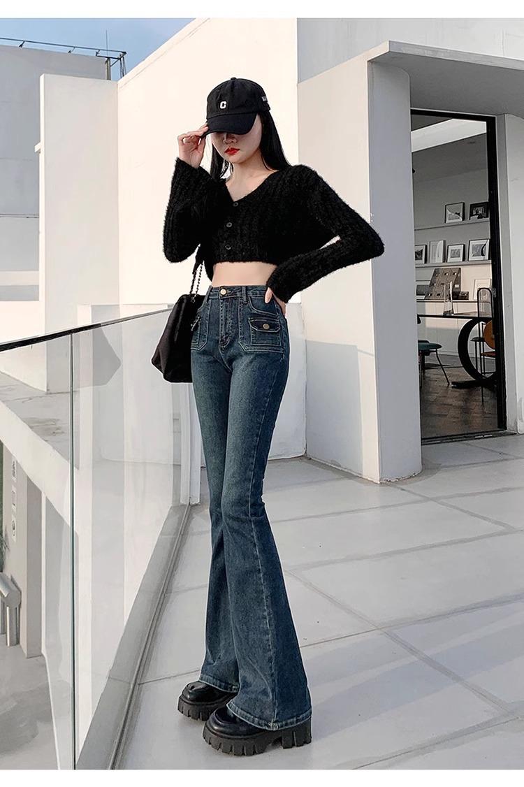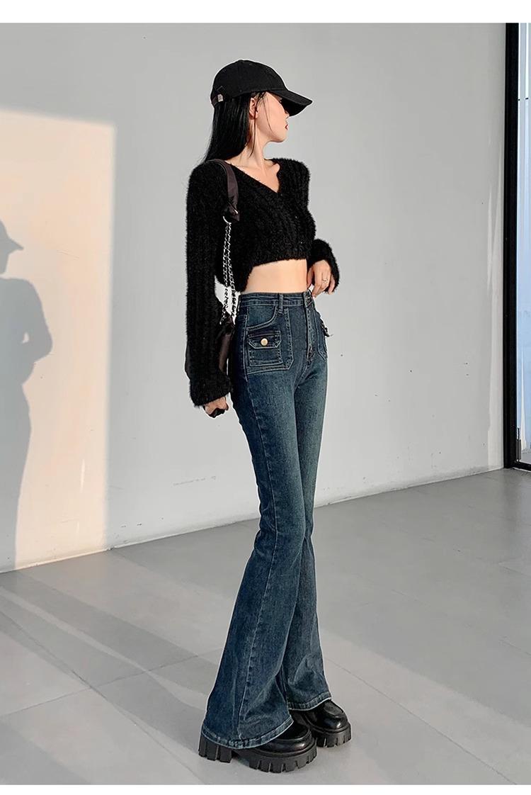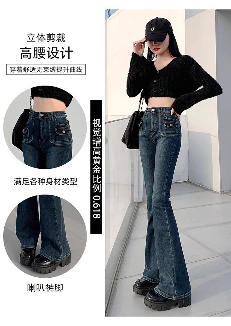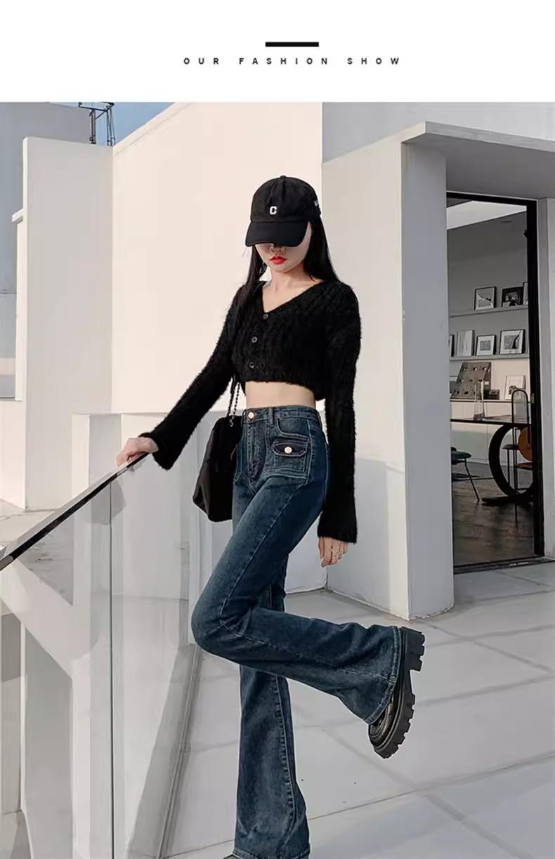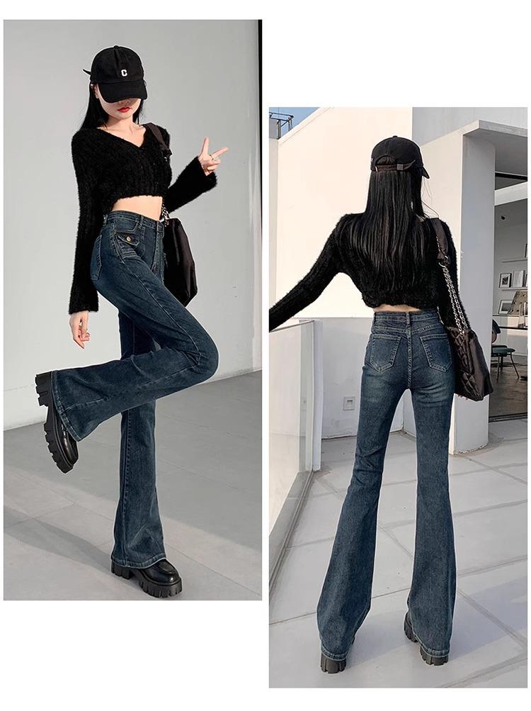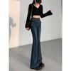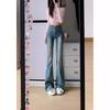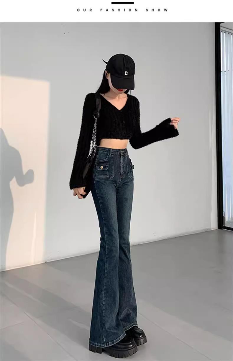 Pantalones vaqueros retro americanos para mujer, primavera y otoño, combinables, nuevos, de cintura alta, adelgazantes, elásticos, ajustados, con diseño de herradura acampanada.