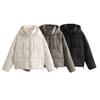 Otoño 2023 nueva moda europea y americana transfronteriza para mujer color sólido suelto con bolsillo acolchado algodón cuello alto chaqueta de algodón chaqueta