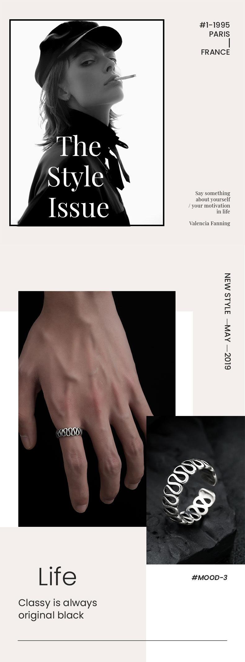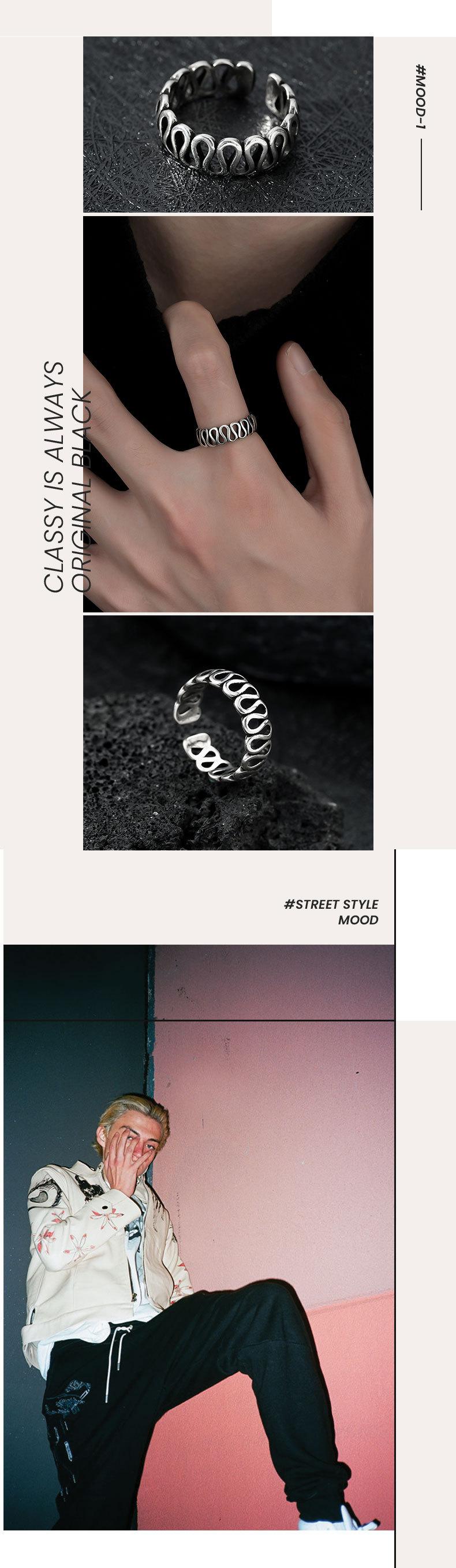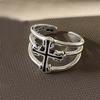 Anillo de cadena hueca para hombre, diseño retro antiguo, con apertura ajustable, anillo curvo para mujer, joyería de moda de alta calidad que combina con todo.