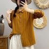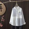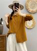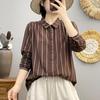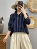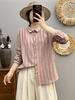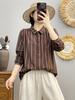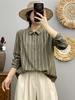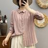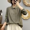 Camisa de manga larga de algodón de doble capa a rayas, holgada, combinable y artística, para mujer, otoño 2024