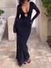 Vestido ajustado de cintura baja sexy con escote en V profundo de malla de manga larga de primavera y verano transfronterizo de estilo europeo y americano 2025