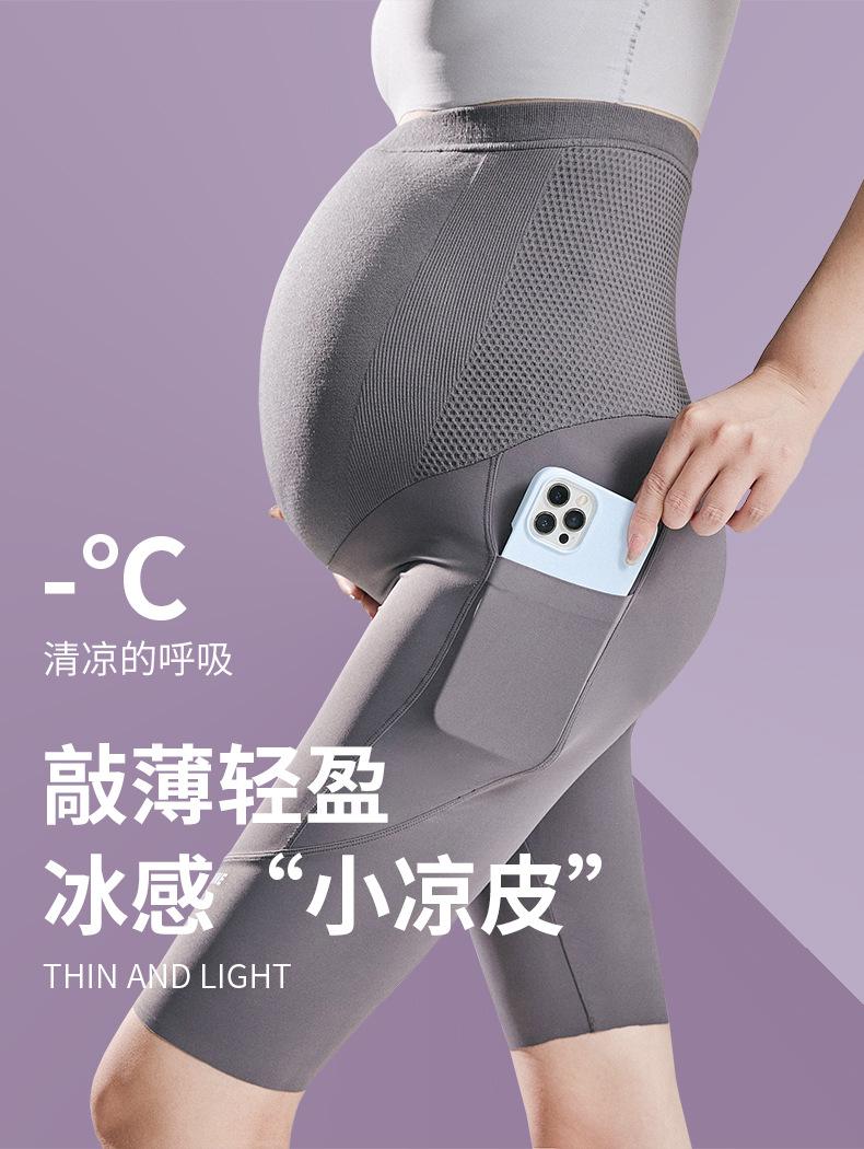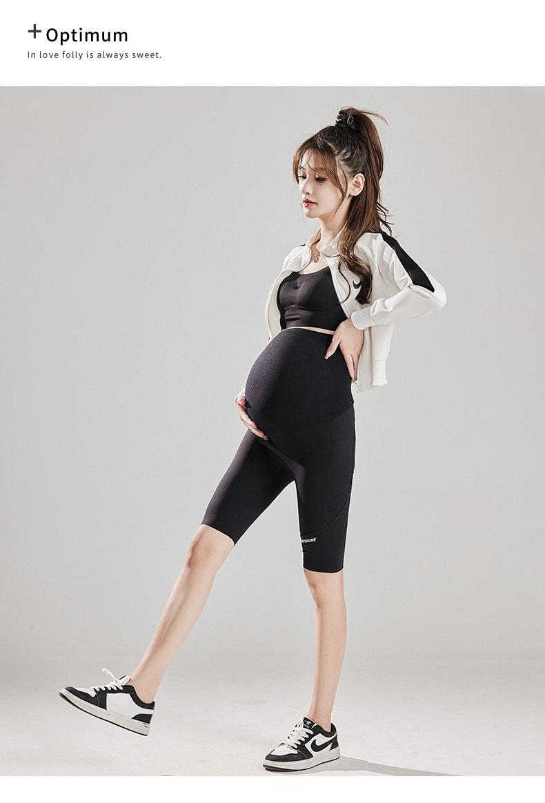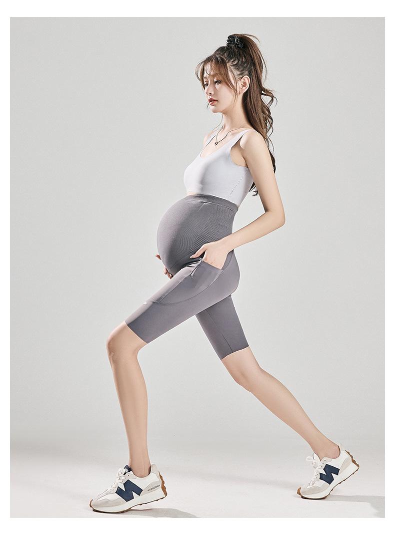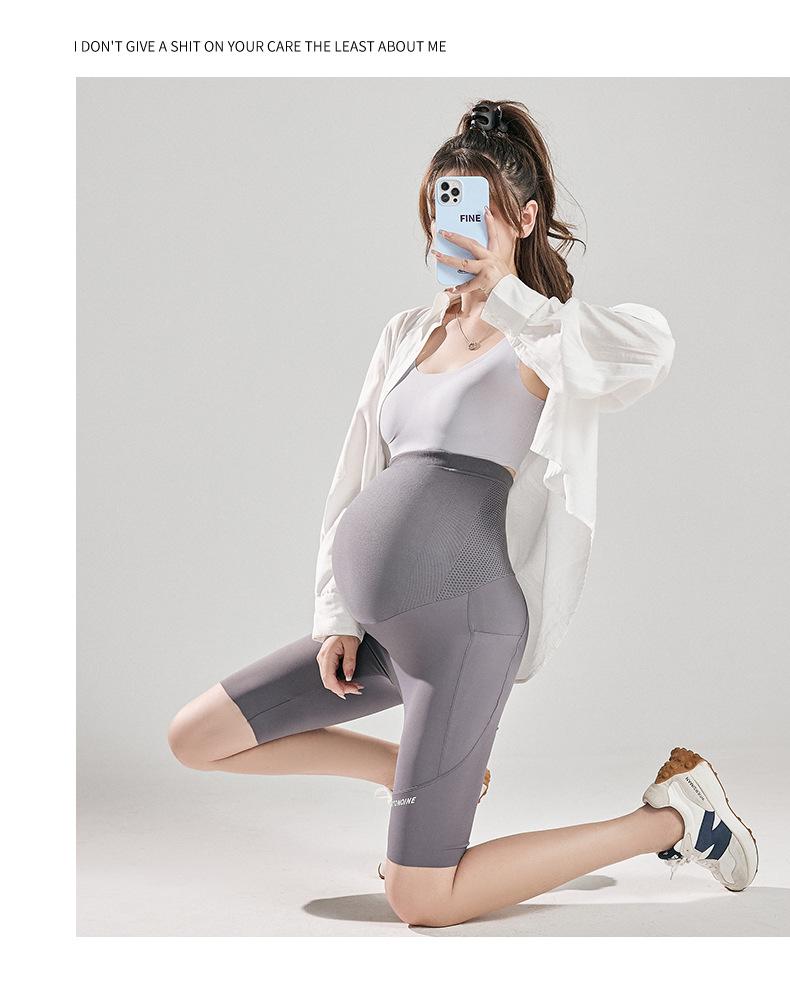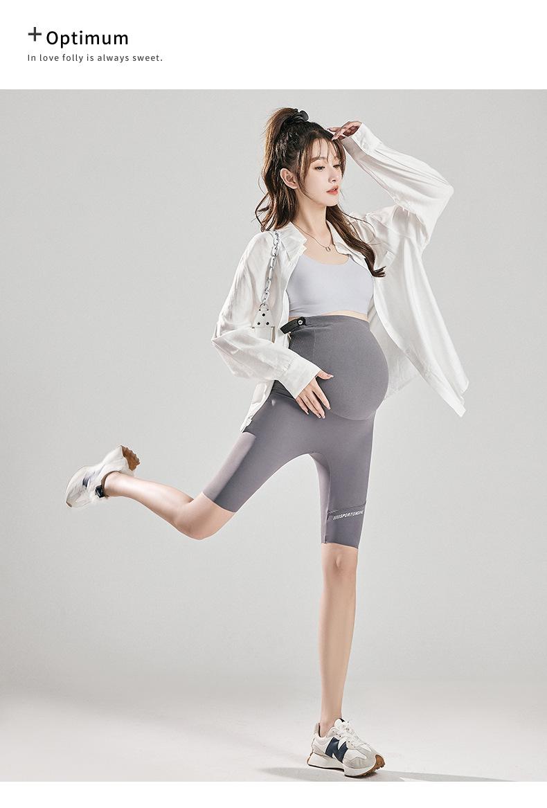 Leggings finos de cinco puntos para embarazadas, pantalones de tiburón, pantalones de seguridad sin costuras para el vientre, pantalones de yoga, ropa de verano