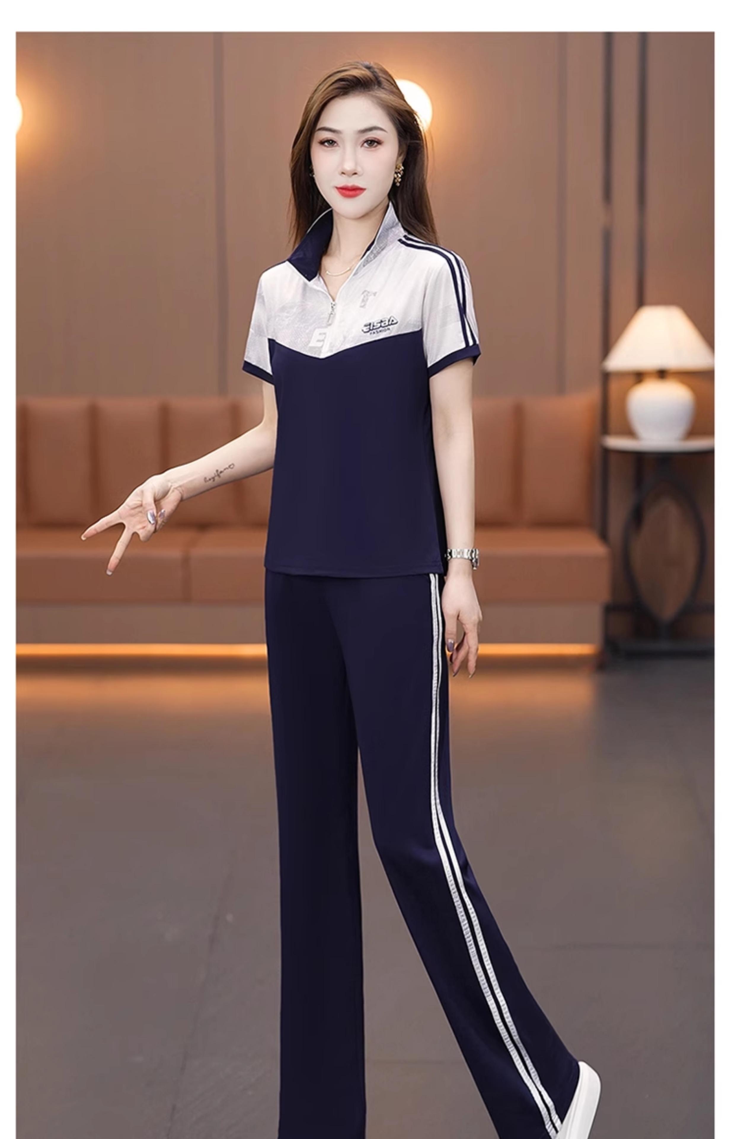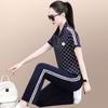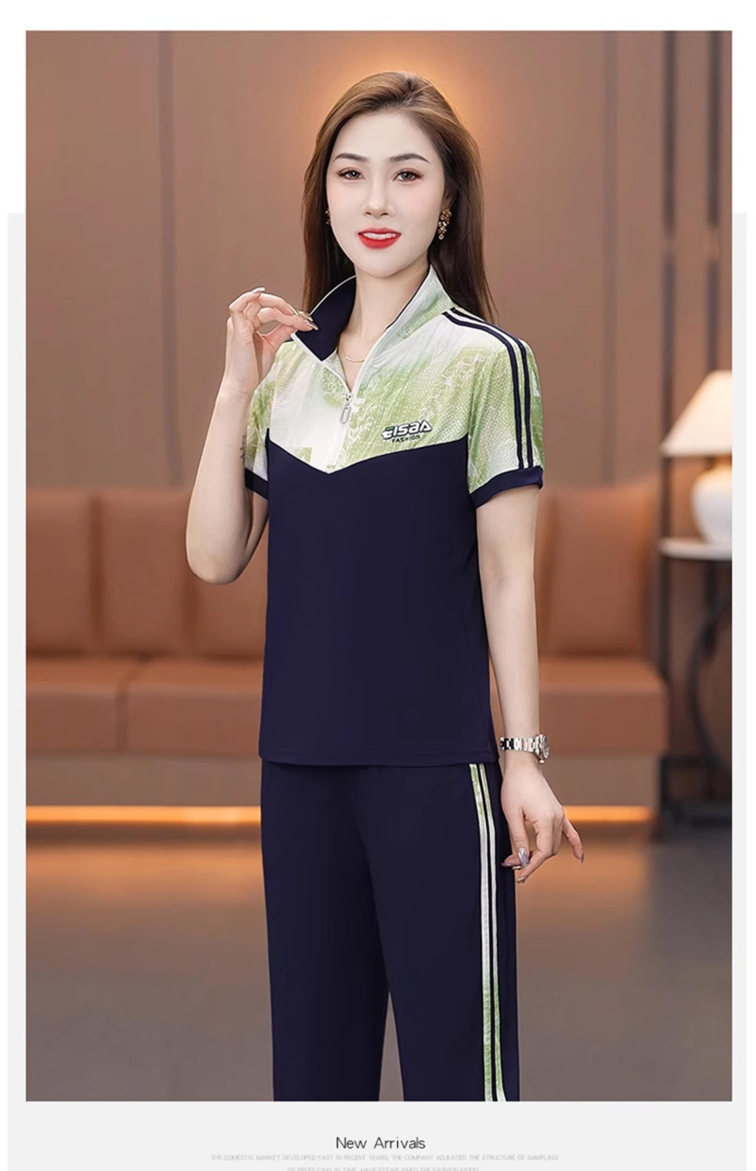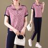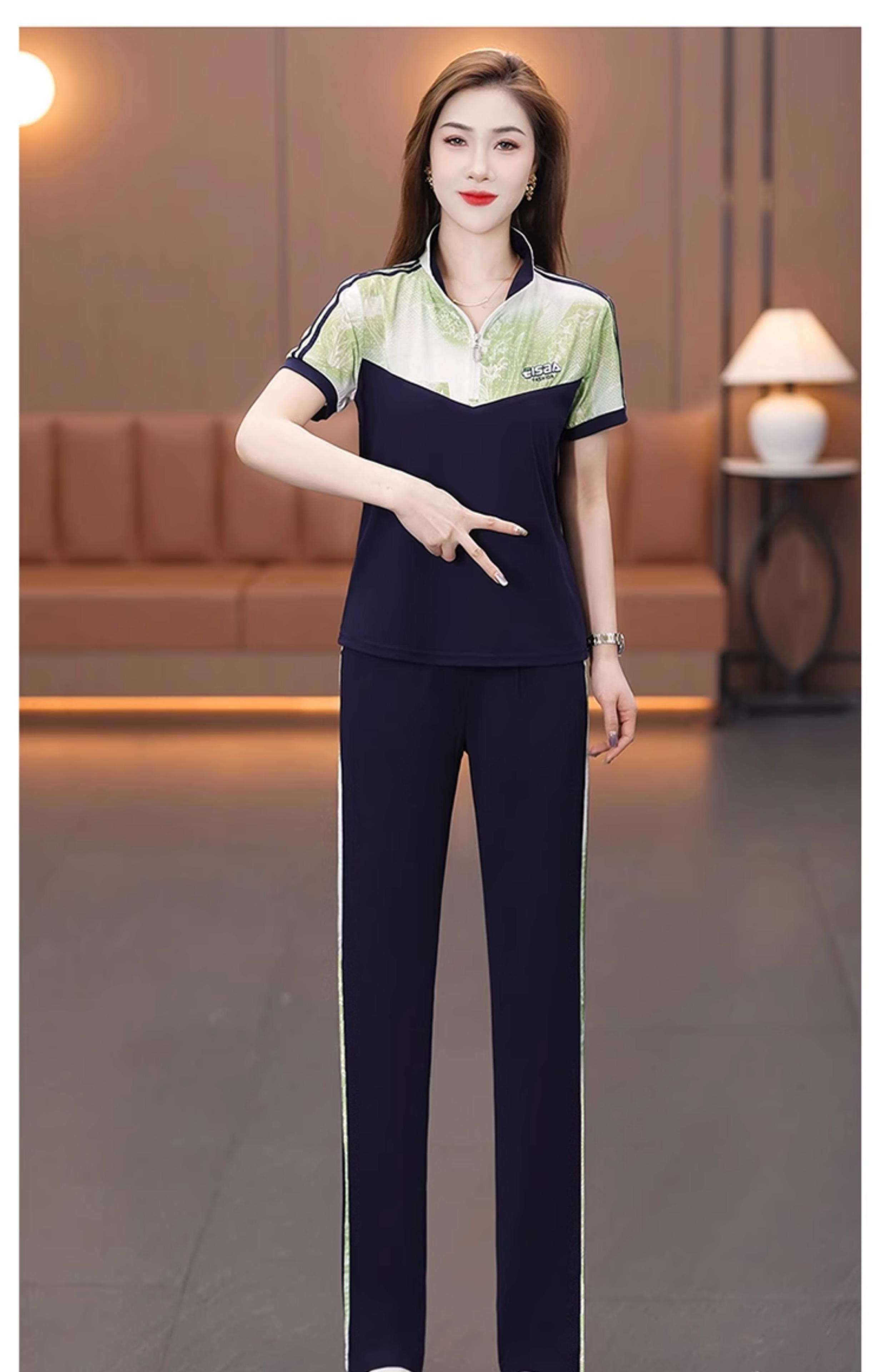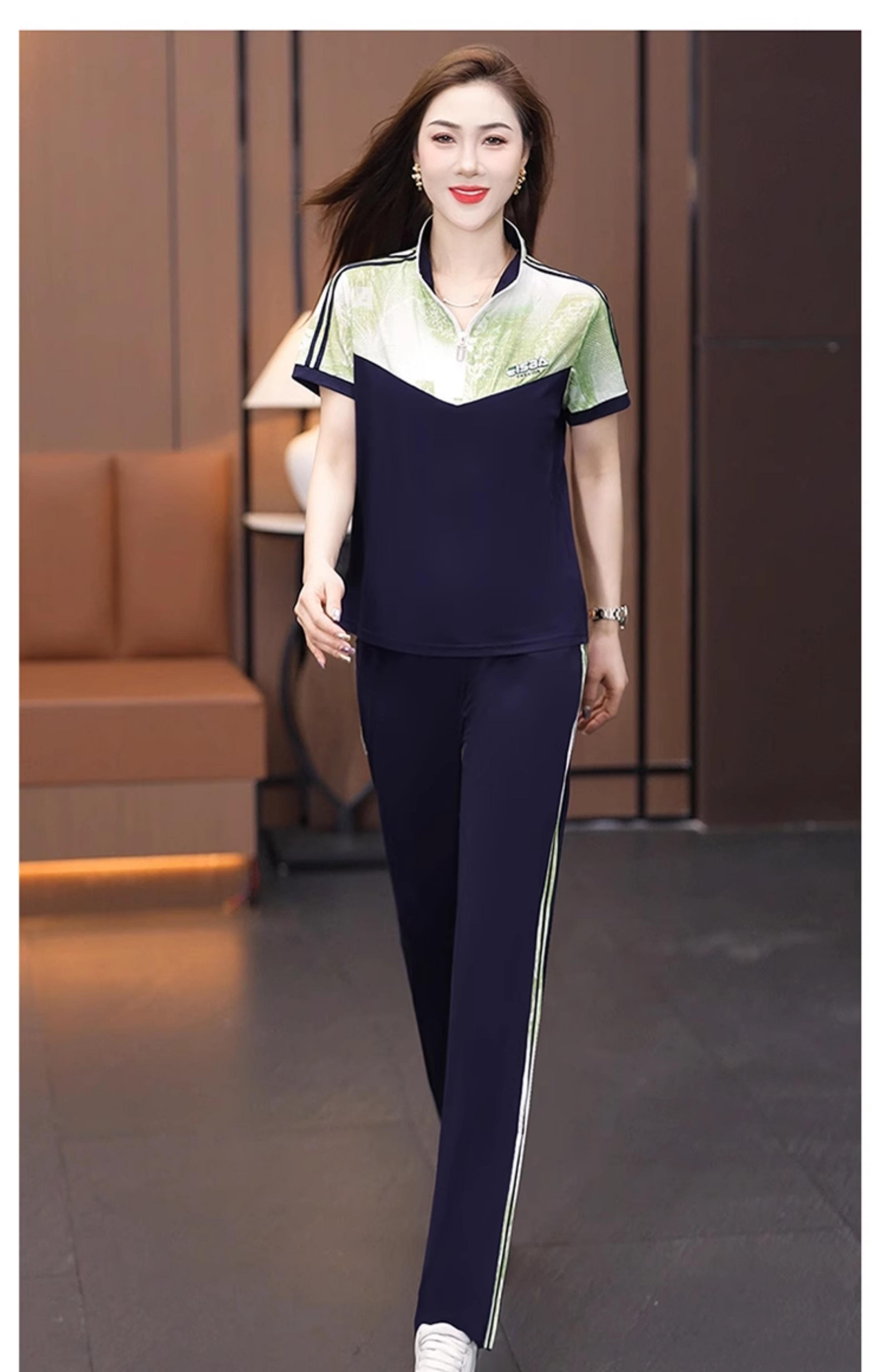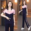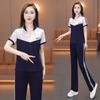 Traje deportivo a juego de colores para mujer verano 2025 nuevo estilo extranjero madre reductor de edad adelgazante moda casual para correr conjunto de dos piezas