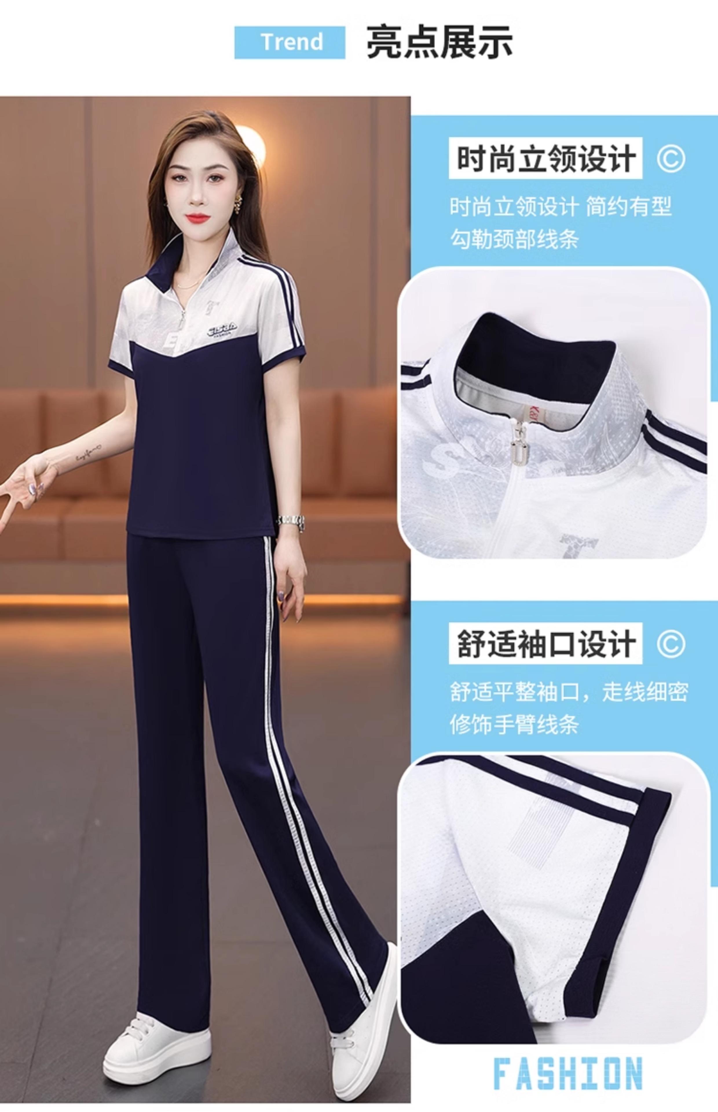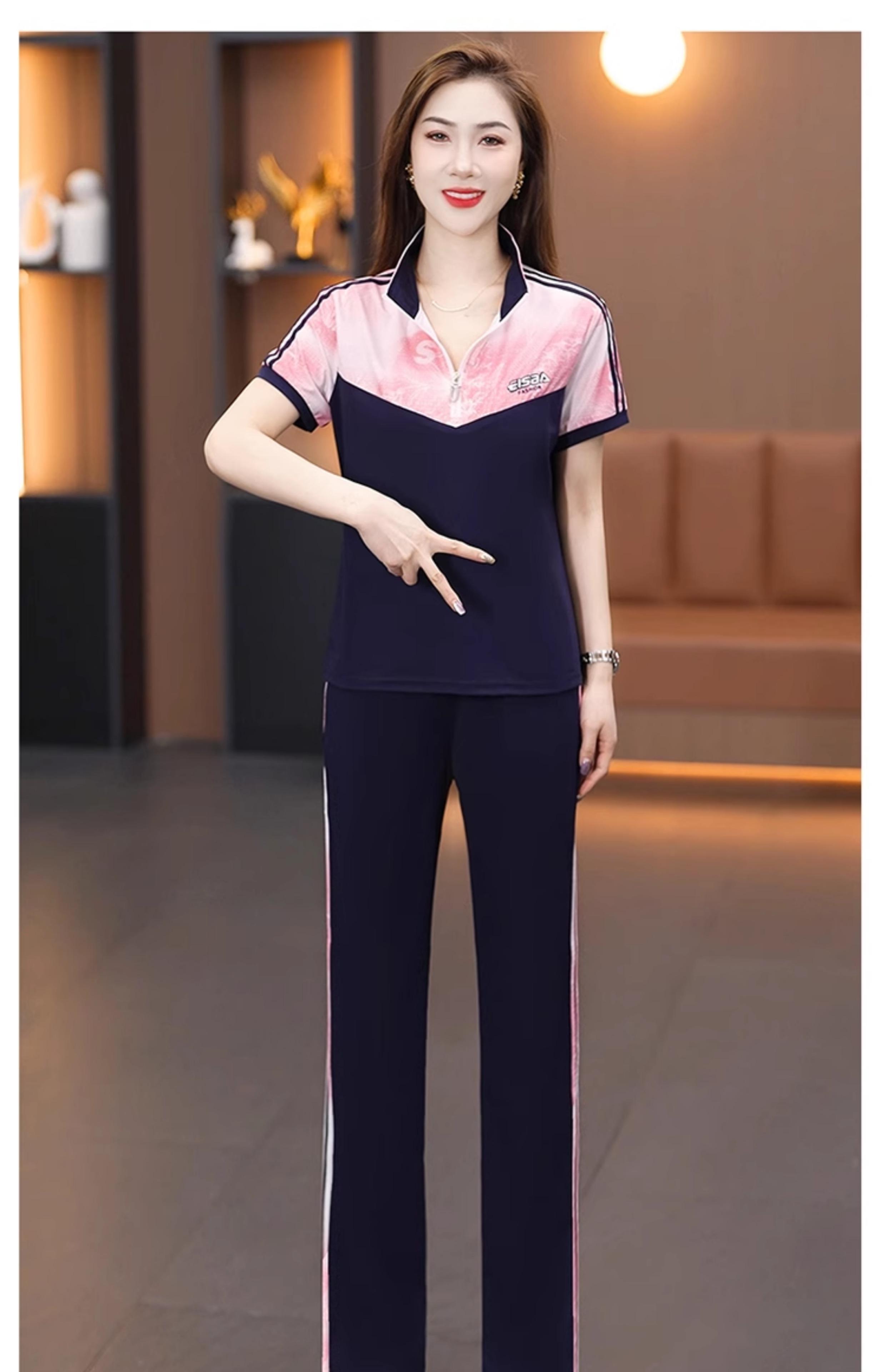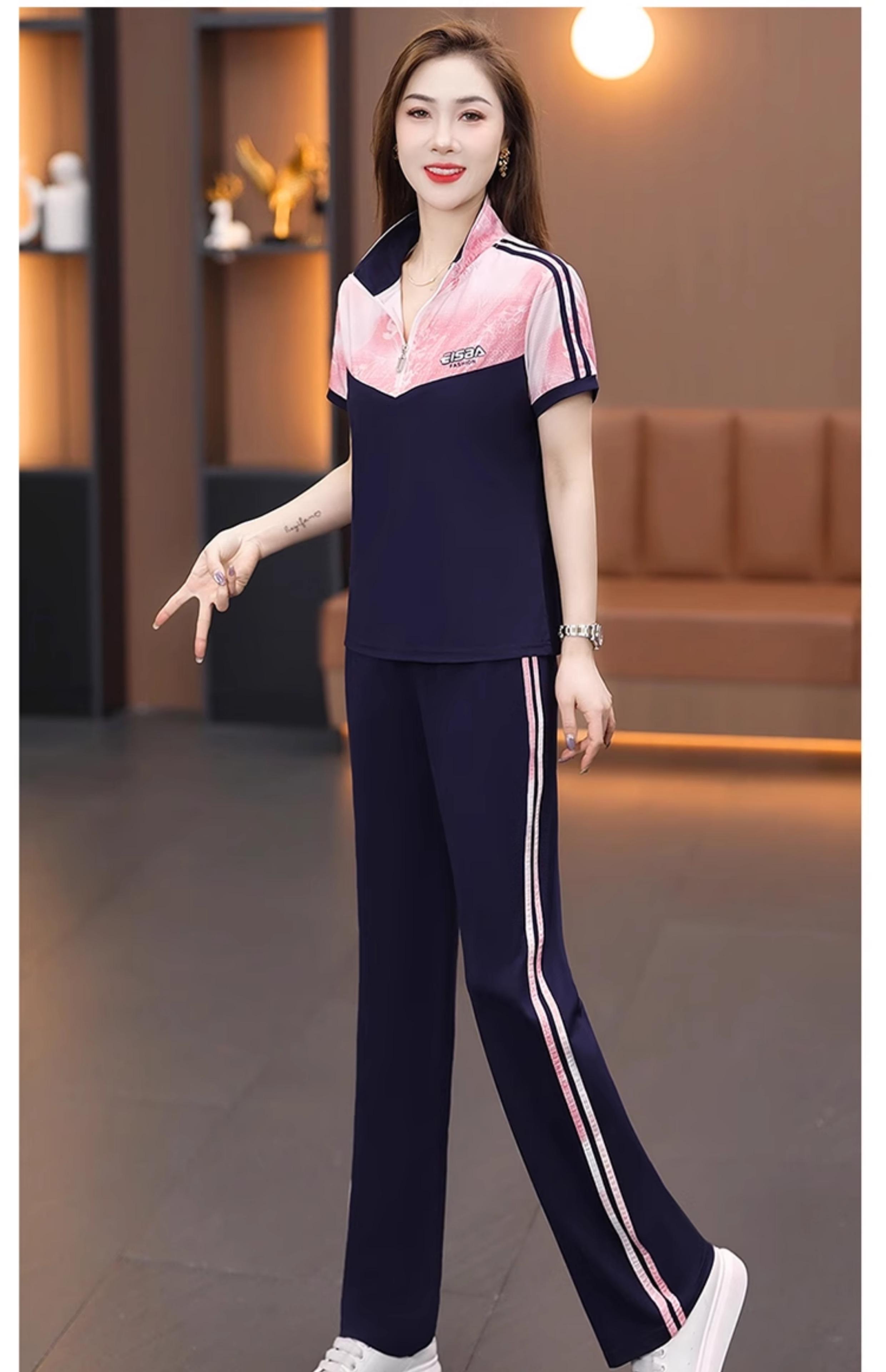 Traje deportivo a juego de colores para mujer verano 2025 nuevo estilo extranjero madre reductor de edad adelgazante moda casual para correr conjunto de dos piezas