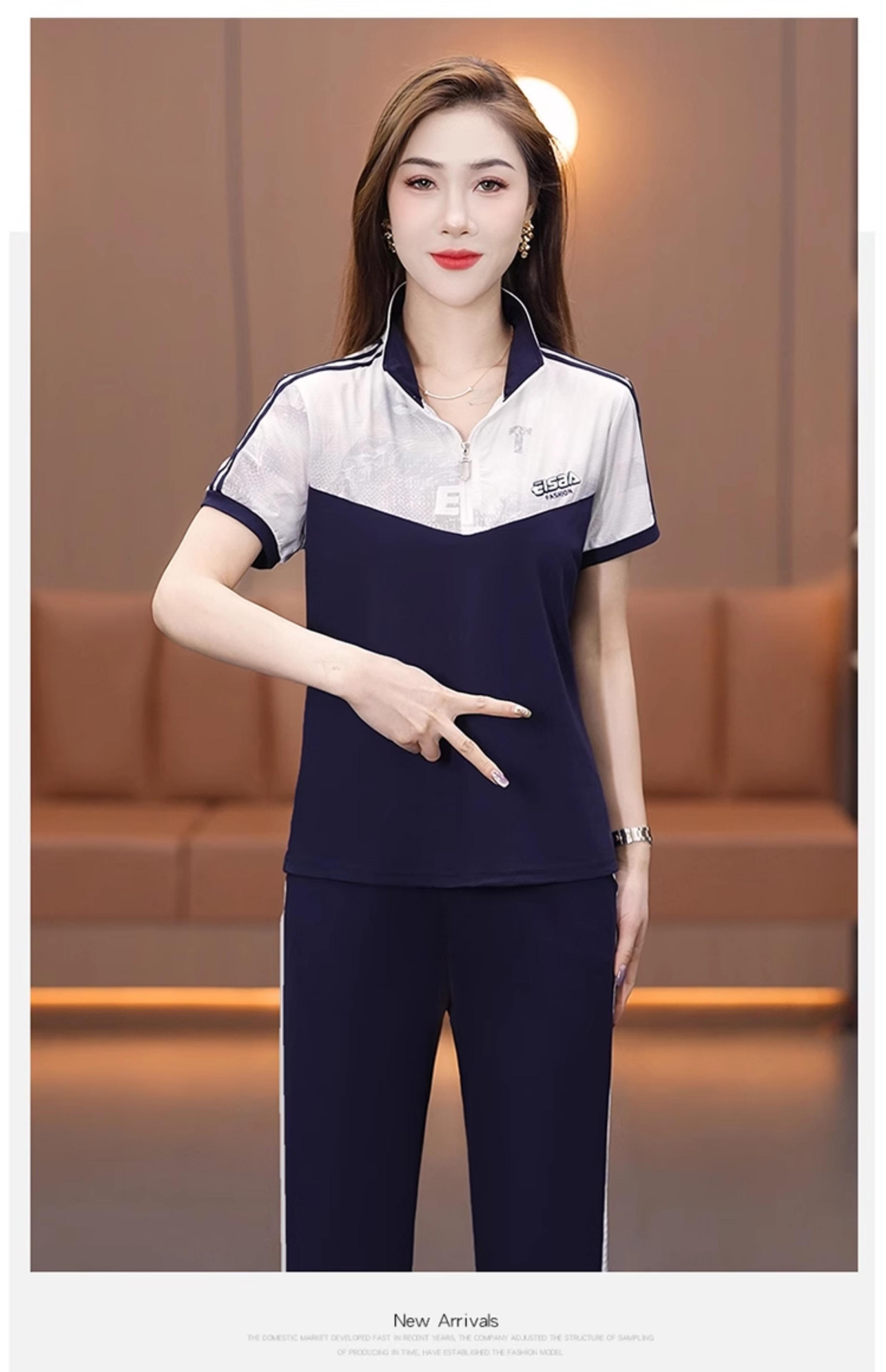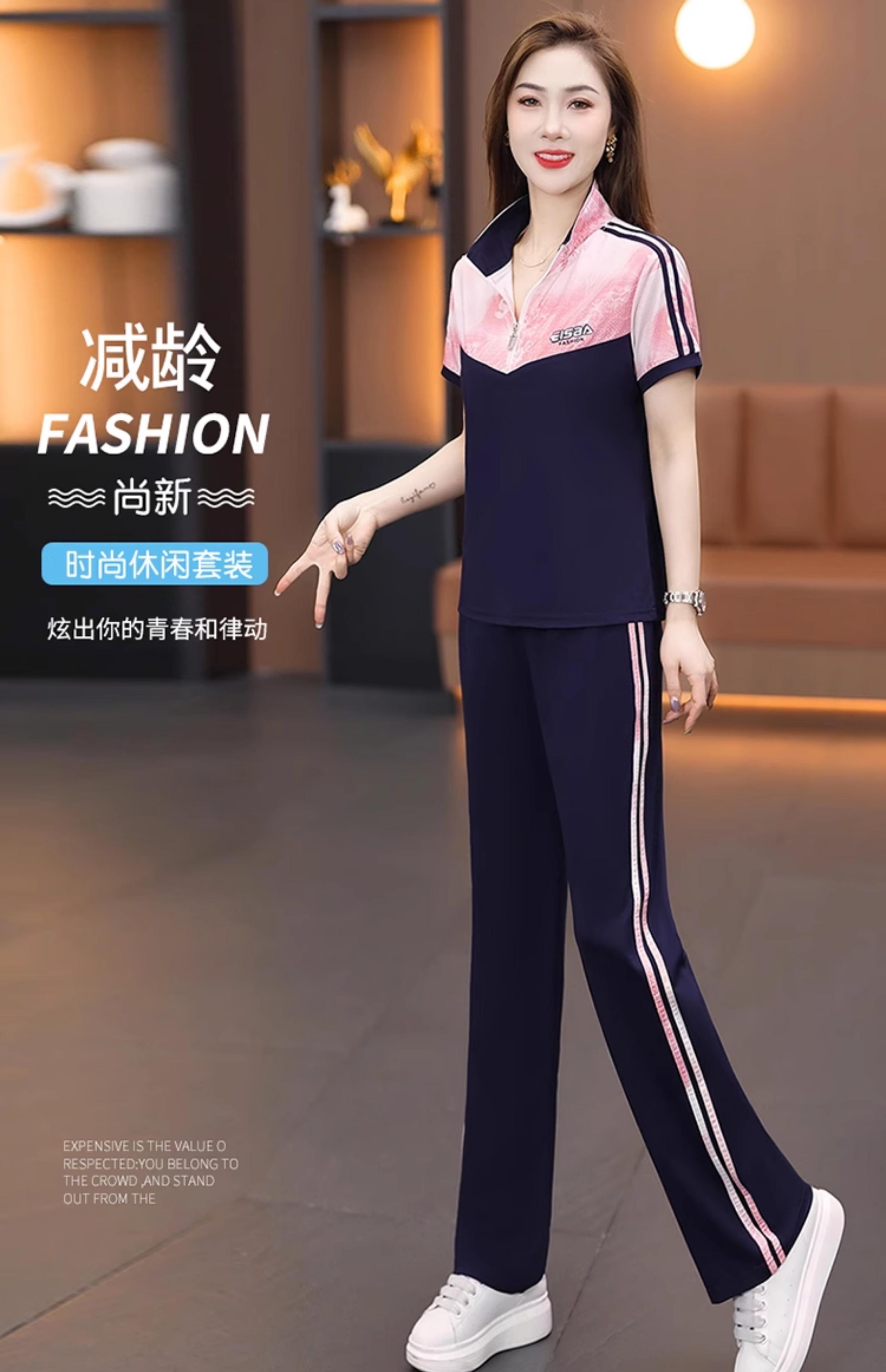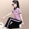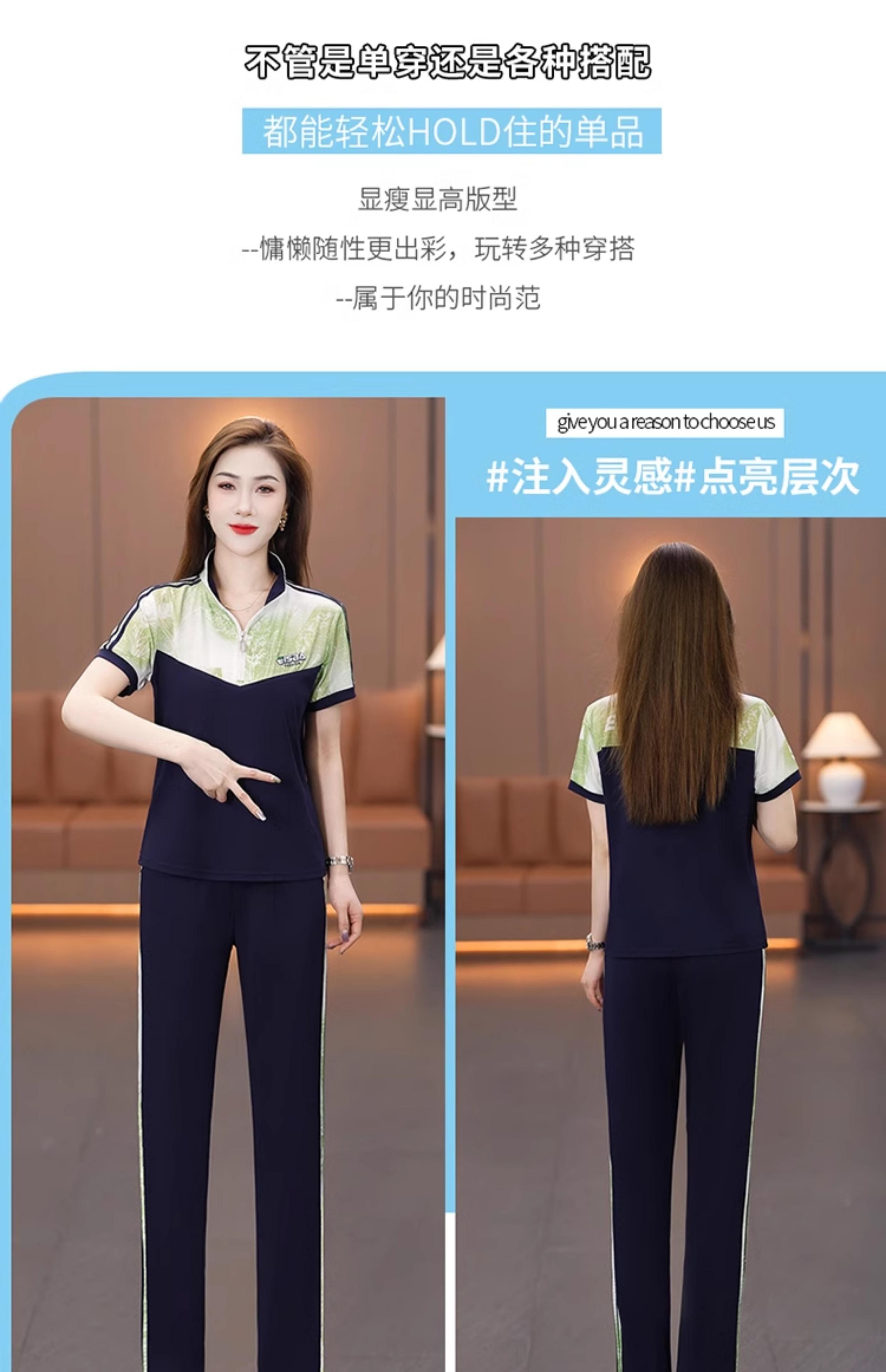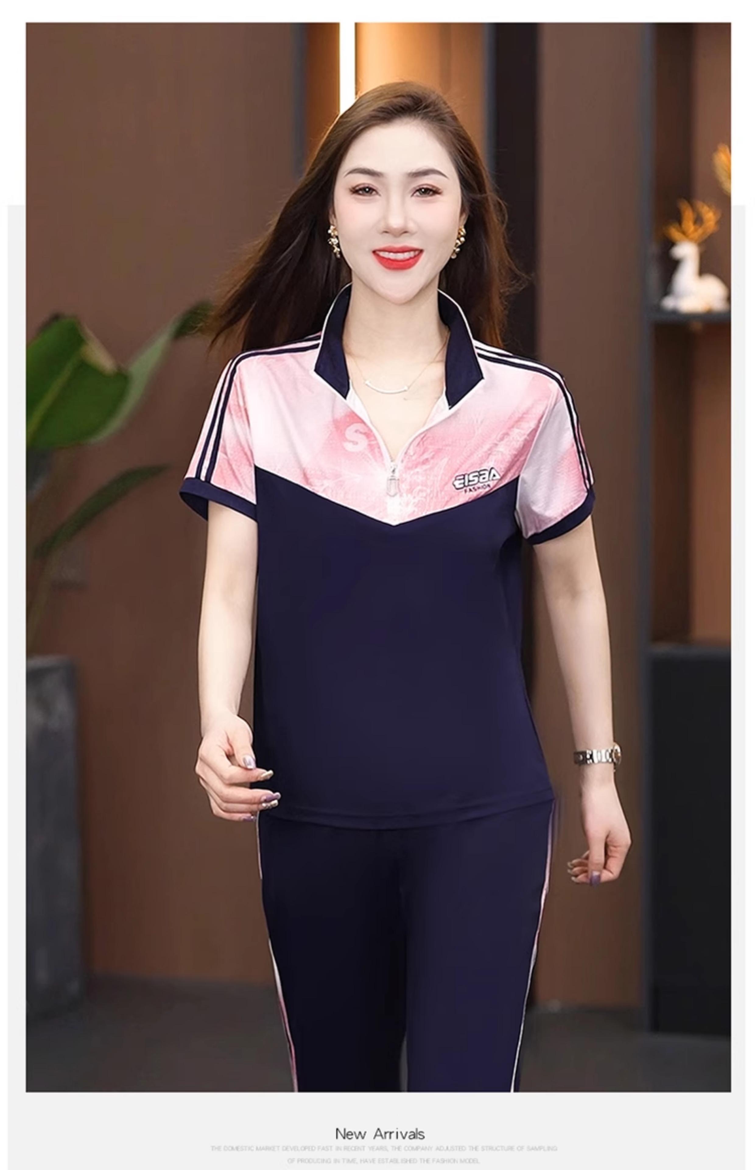 Traje deportivo a juego de colores para mujer verano 2025 nuevo estilo extranjero madre reductor de edad adelgazante moda casual para correr conjunto de dos piezas