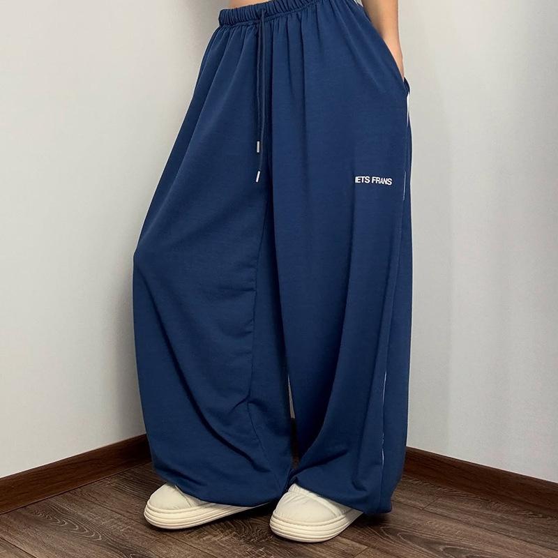 Pantalones Deportivos de Pierna Ancha Estilo Americano para Mujer Otoño Nuevo Versátil Holgados Adelgazantes Cintura Alta Casual Rectos