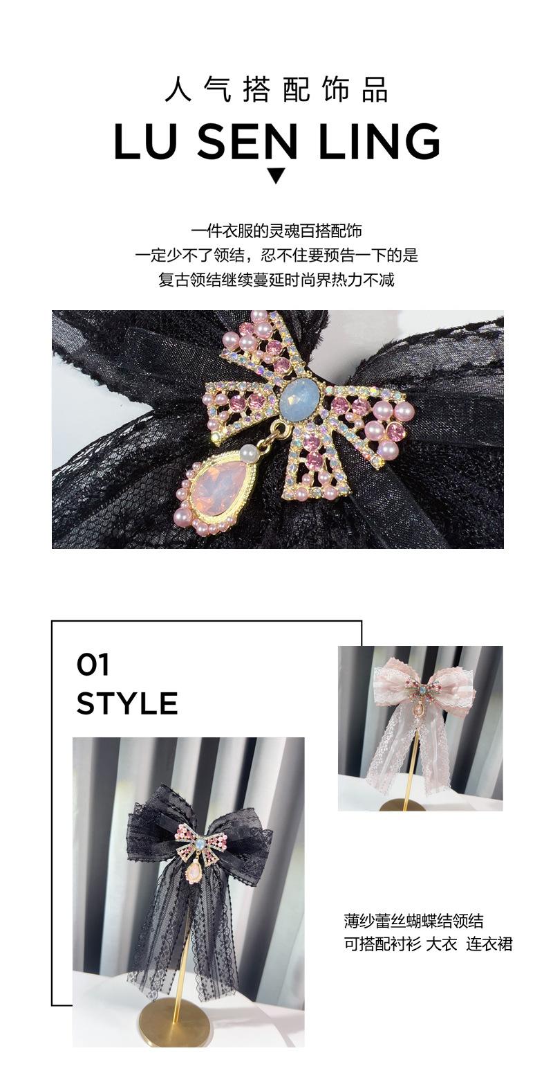 Estilo Coreano Encaje Lazo Accesorios de Ropa Pajarita Flor para Cuello de Mujer Cinta Gratis Negro Cuello Decorativo Broche para Camisa