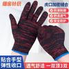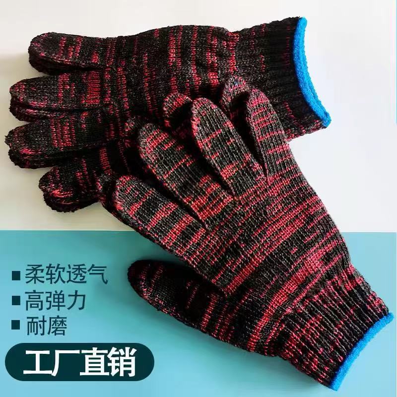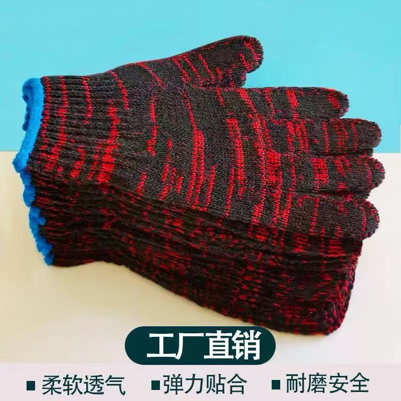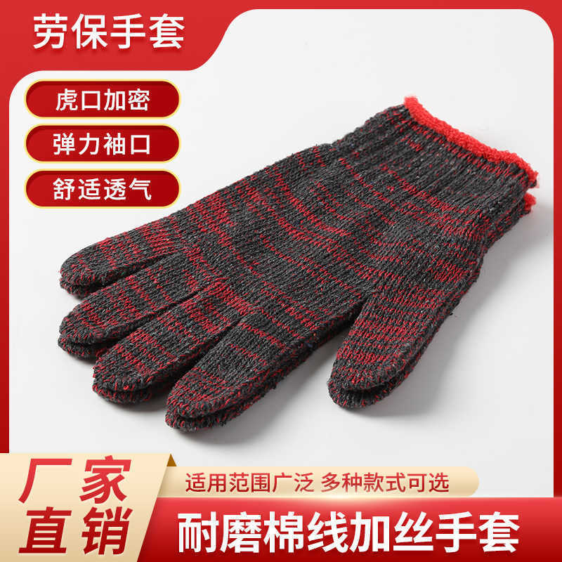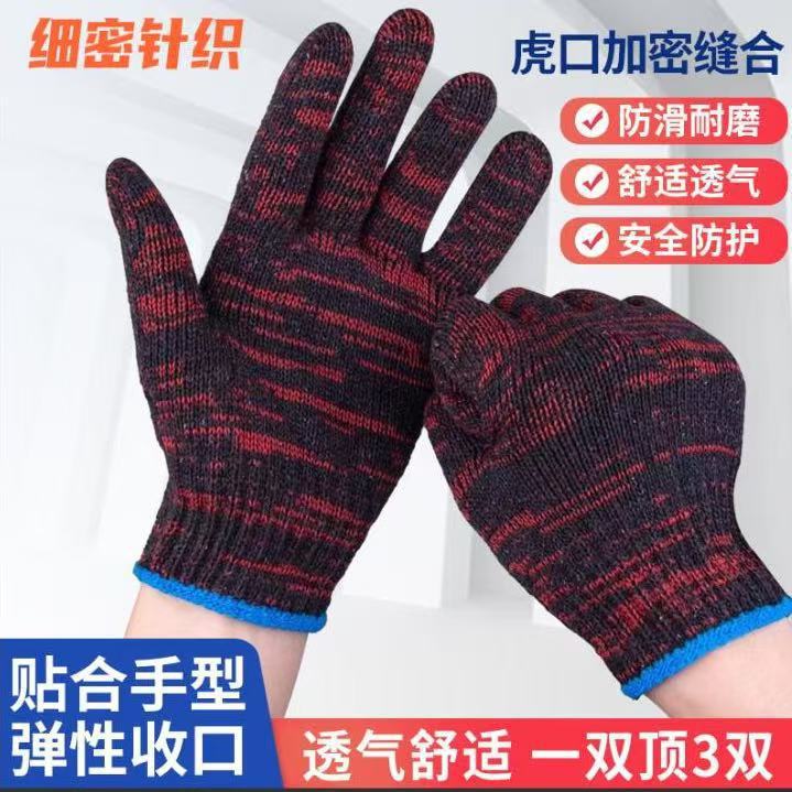 Guantes al por mayor resistentes al desgaste Guantes de protección laboral de flor roja engrosados Algodón tejido Uso para adultos en sitio de trabajo individual