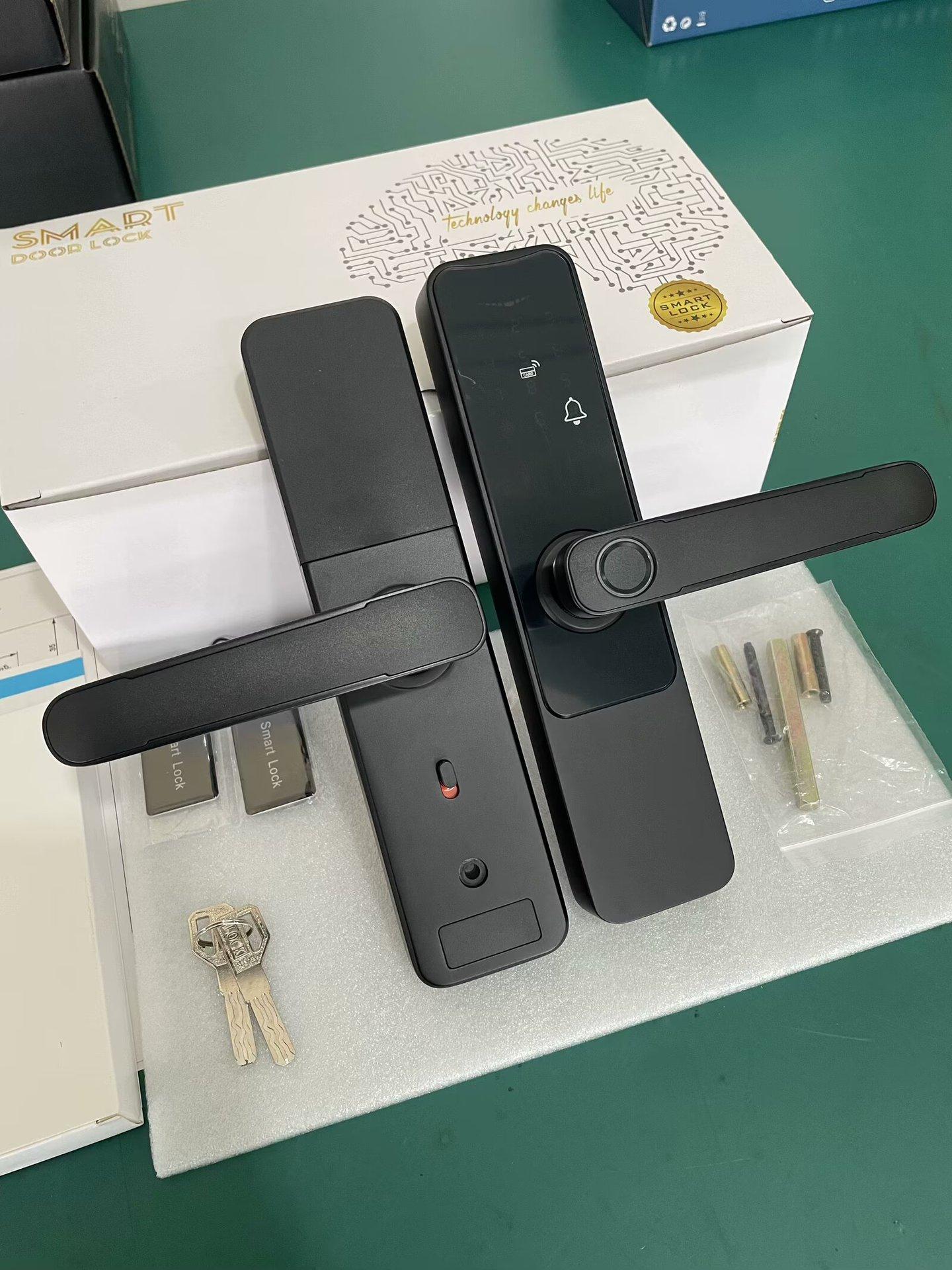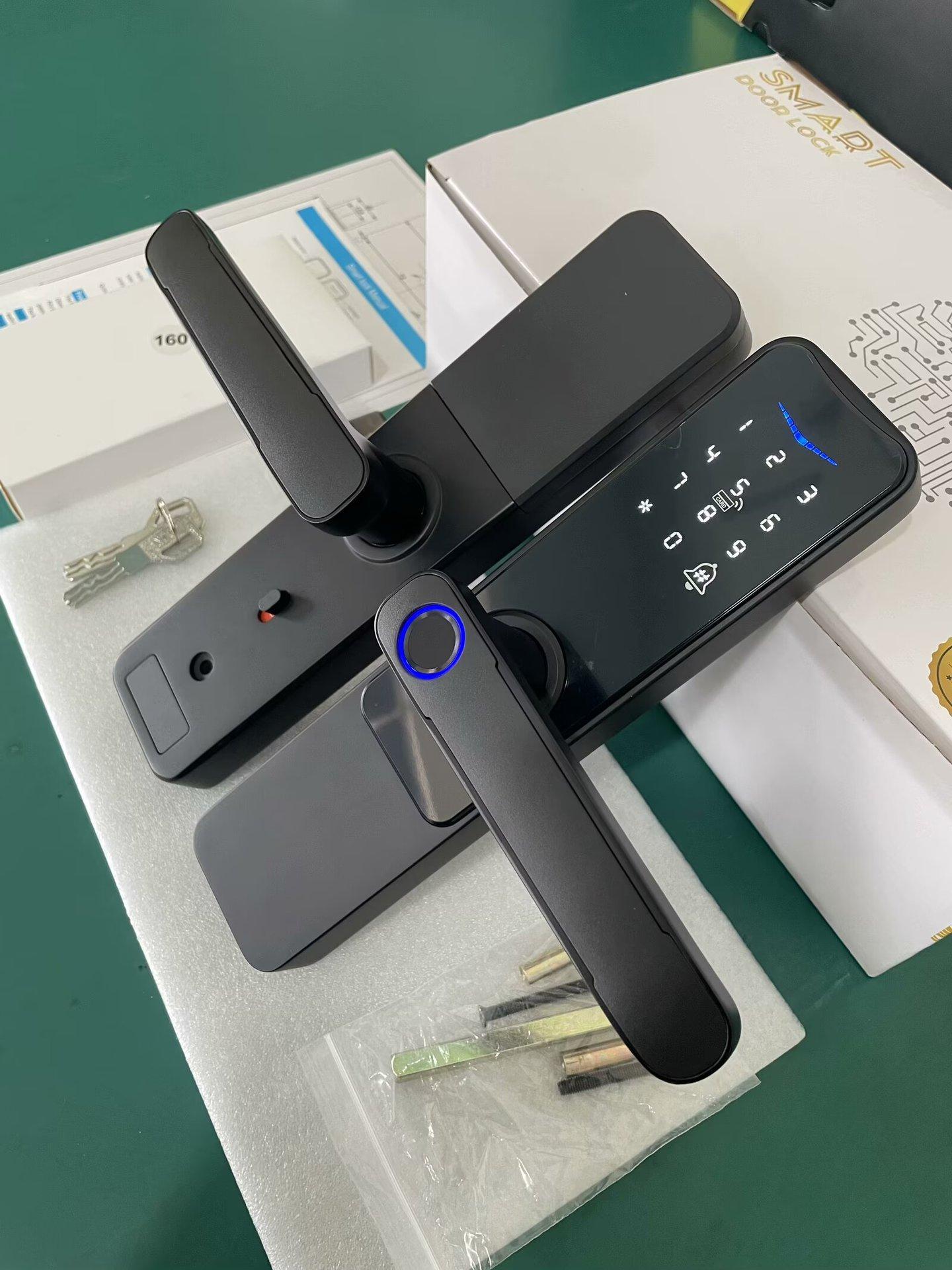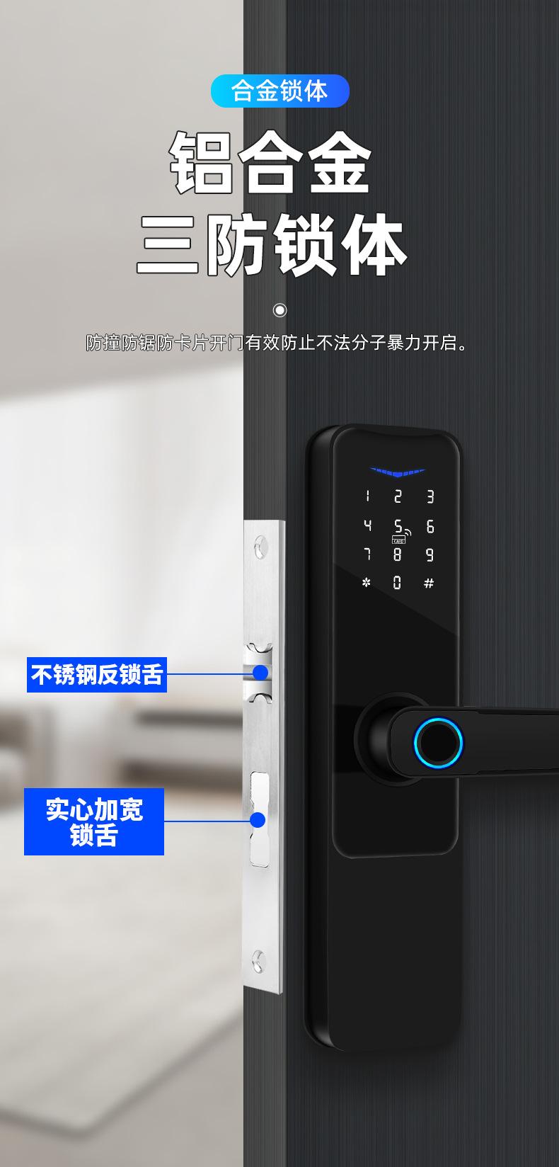Estudiar cerradura de puerta con huella dactilar Tuya inteligente todo-cerradura deslizamiento de tarjeta hotel remoto contraseña portugués cerradura electrónica